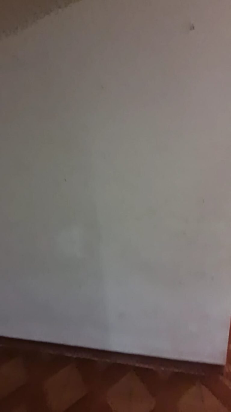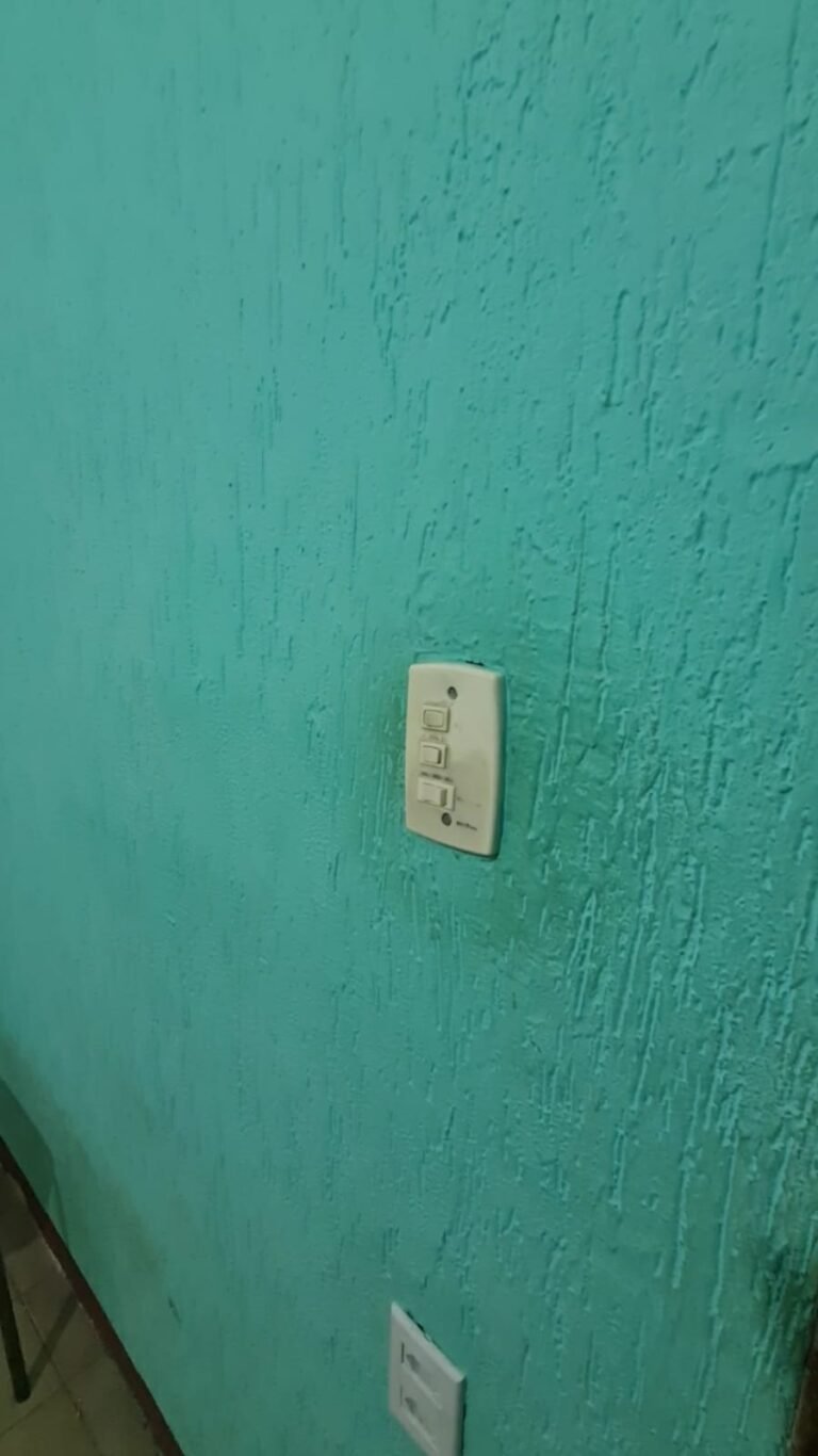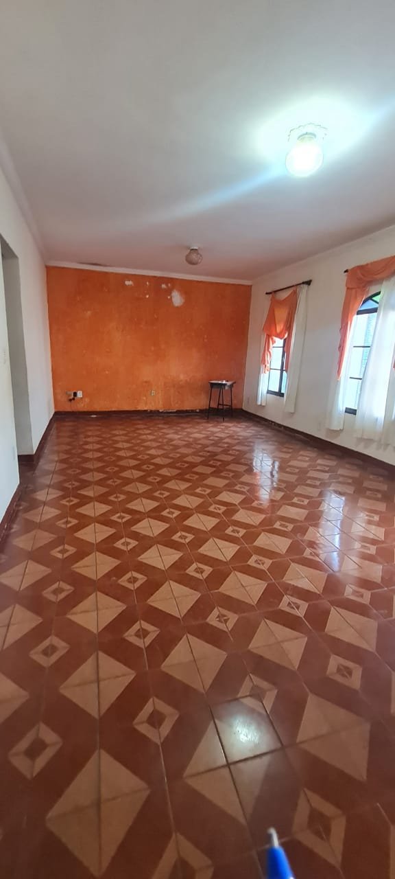 Sala:- Paredes sujas sem pintura, buracos tampados de massa corrida branca, teto sujo, piso com manchas brancas, porta da sala enroscando para fechar, faltando 01 fechamento do varão cortina, rack quebrado, sala suja.