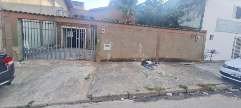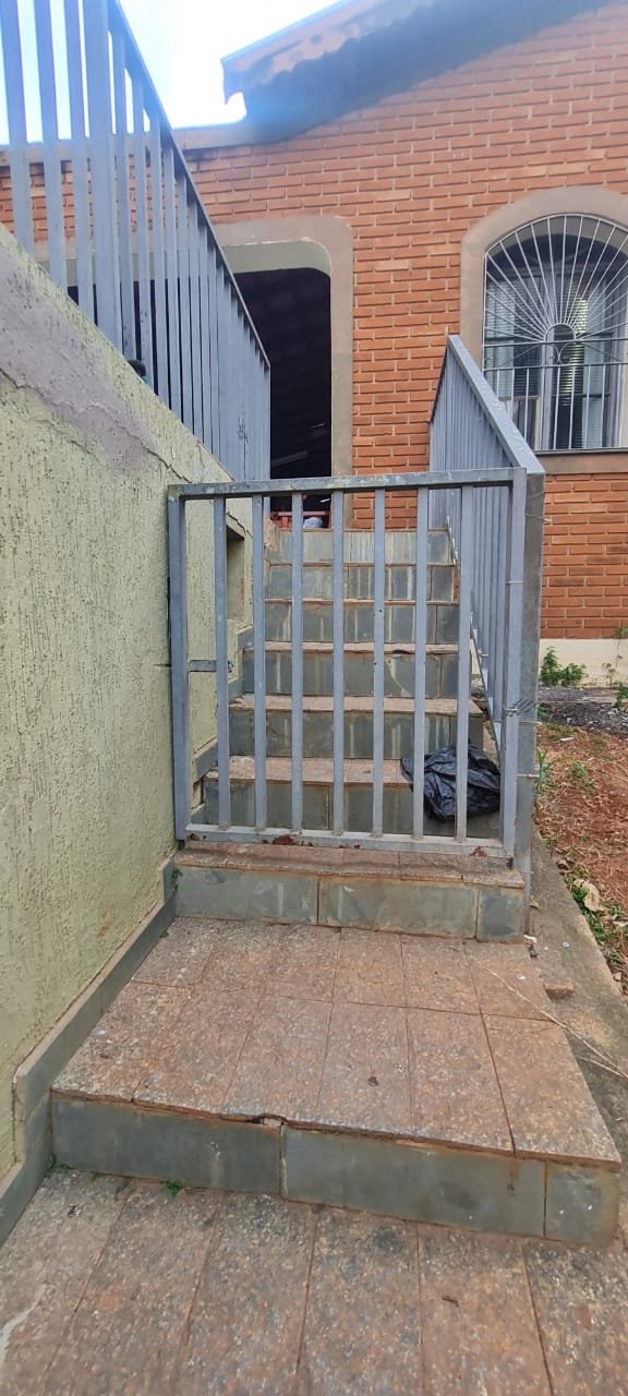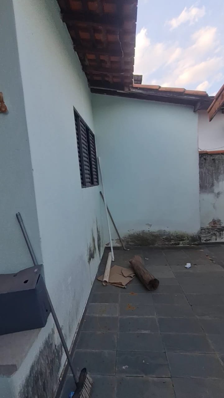 Edícula:- Porta sem a chaves, mureta com mancha de ferrugem, paredes sujas sem pintura, ambiente sujo, 01 torneira de rosca do tanque com reparo quebrado, porta sanfonada quebrada, vaso sanitário sem a tampa, curva do chuveiro trincada, chuveiro vazando, livros e caixas espalhados, faltando 01 espelho de luz, geladeira, 01 botijão de gás.