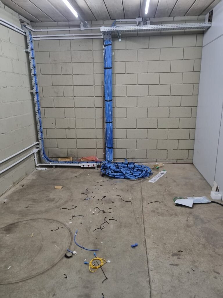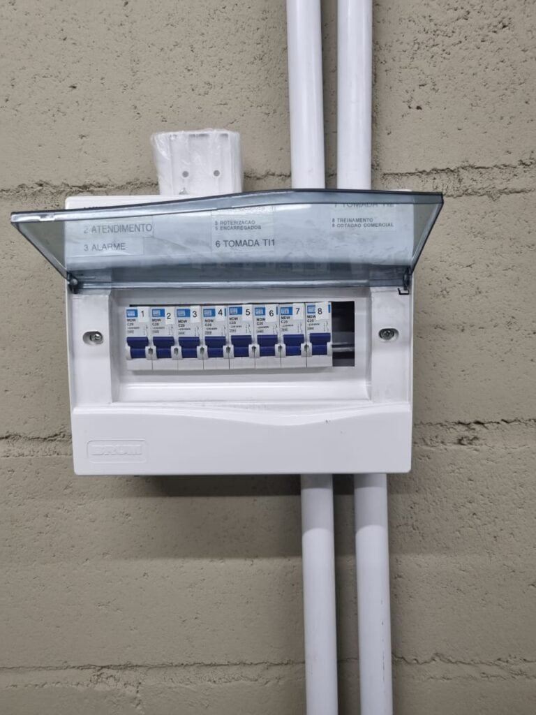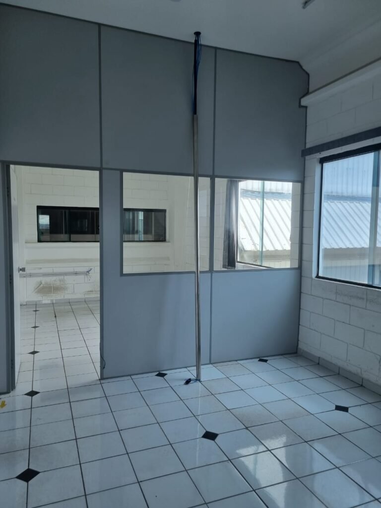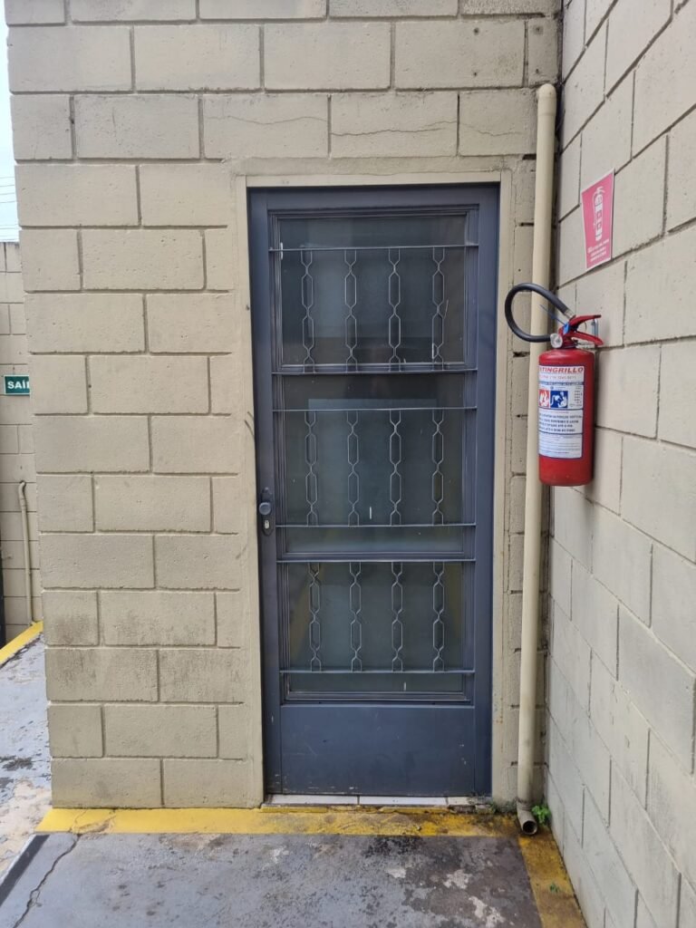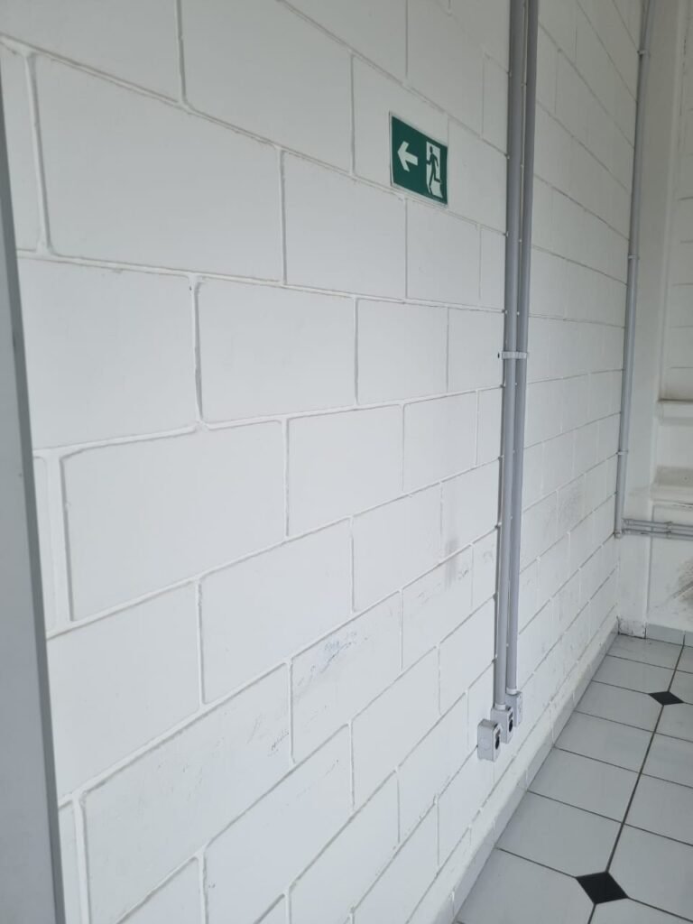 SALA ADMINISTRTIVO:- Piso frio cerâmico, paredes de bloco aparente com pintura na cor branco claro com desgaste e manchas, 02 vitrô de correr com vidros blindex e 02 fechaduras com chaves em ordem, 03 luminárias duplas com 06 lâmpadas LED em ordem, 01 lâmpada de emergência em ordem, teto e gola de gesso com pintura com pintura na cor branco neve, caixa de disjuntores com 19 disjuntores em ordem, porta de madeira de saída para o galpão travada sem chave e maçanetas, porta de madeira saída para a recepção em ordem, maçanetas e fechadura em ordem.
