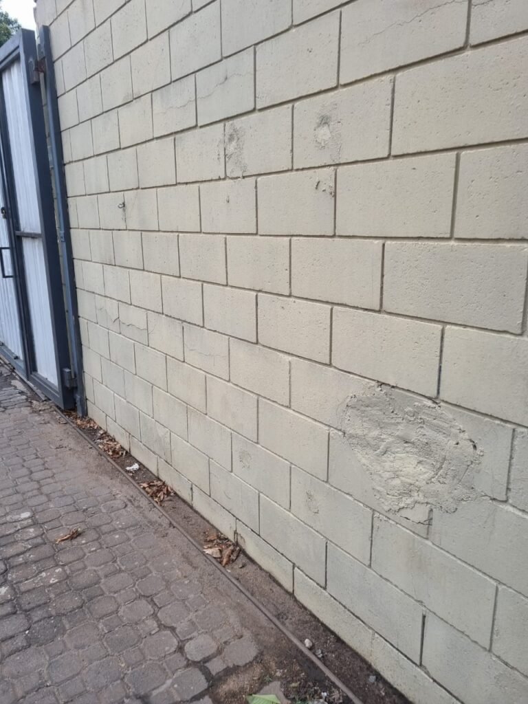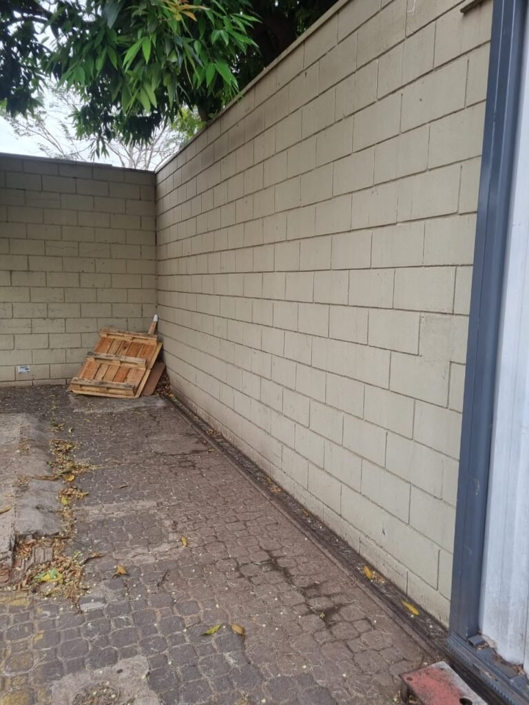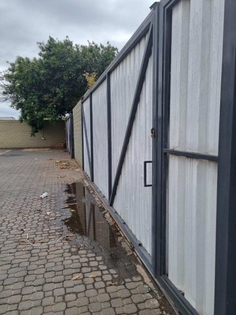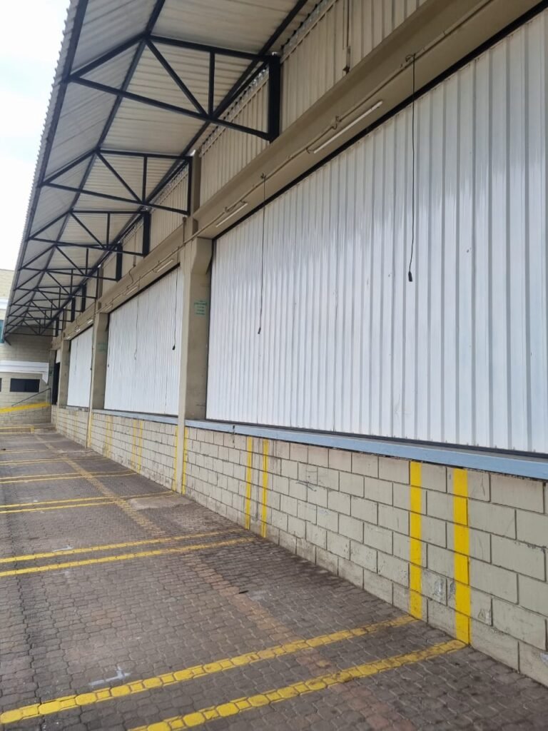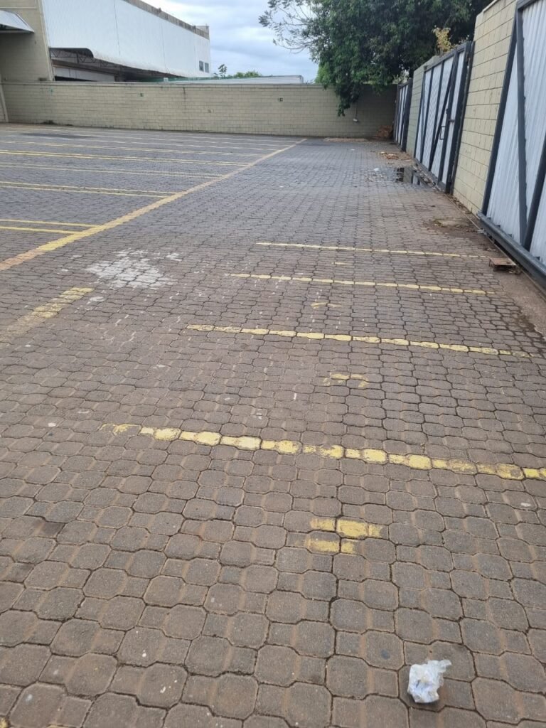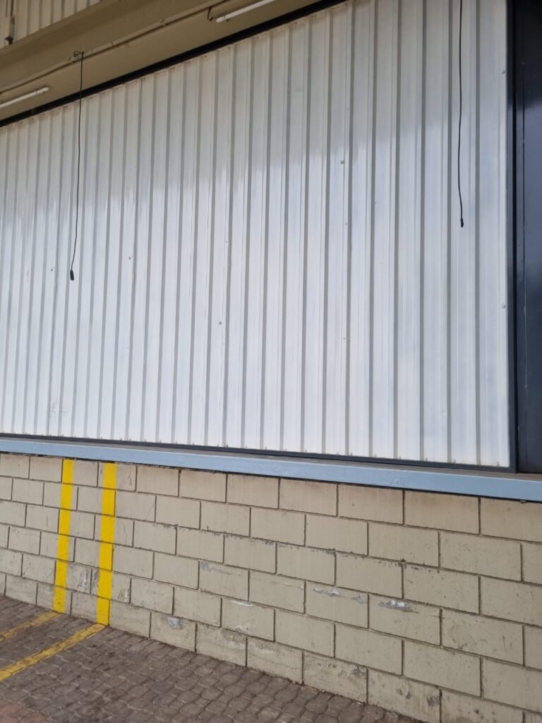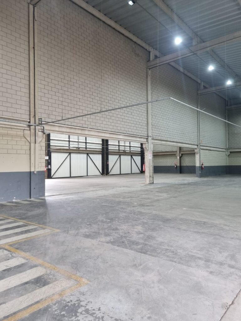 FACHADA:- Calçada piso bloquete Inter travado em ordem, muros de bloco aparente sem pintura, 03 portões deslizante de chapa galvanizada com pintura na cor branco com desgaste, roldanas em ordem, pátio piso de bloquete Inter travado com demarcações de vagas com pintura na cor amarelo com desgaste, parede do prédio administrativo e muros com pintura barrado nas cores bege e branco ambos com mancha e desgaste, 06 refletores com lâmpadas, fachada telhas chapa galvanizadas com pintura na cor branco com desgaste, docas faltando dormentes de madeira para batedores, rampa de alvenaria para acesso de empilhadeiras, escada de alvenaria com 04 degraus, corrimão em ordem.