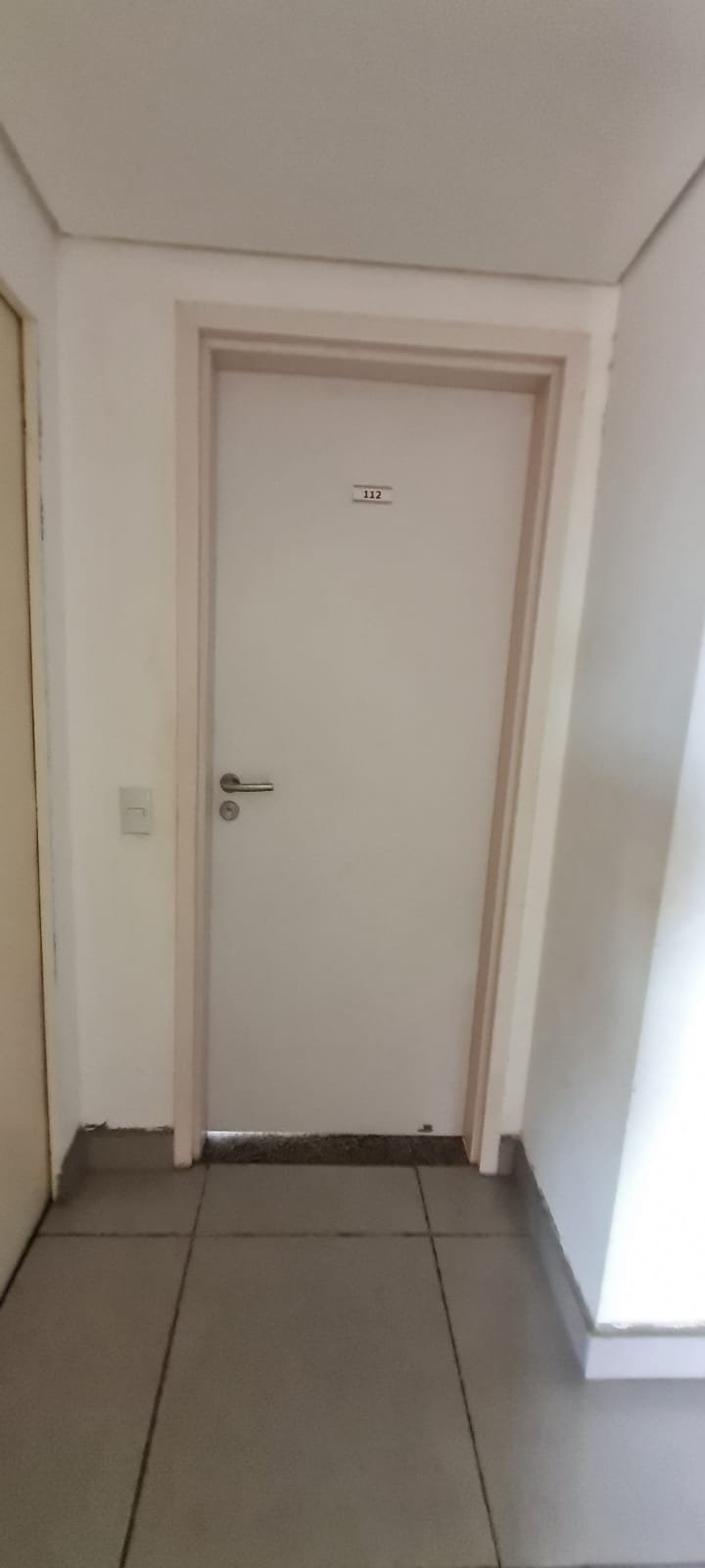 Entrada:- Porta de Madeira com a pintura na cor branca com manchas de sujeiras e com lasco na parte inferior o restante em ordem, guarnição em ambos os lados com a pintura na cor branco com marcas de sujeira o restante em ordem, maçanetas em ordem, fechadura em ordem, dobradiças em ordem, chaves em ordem, soleira em granito cinza Corumbá em ordem, 01 campainha em ordem.