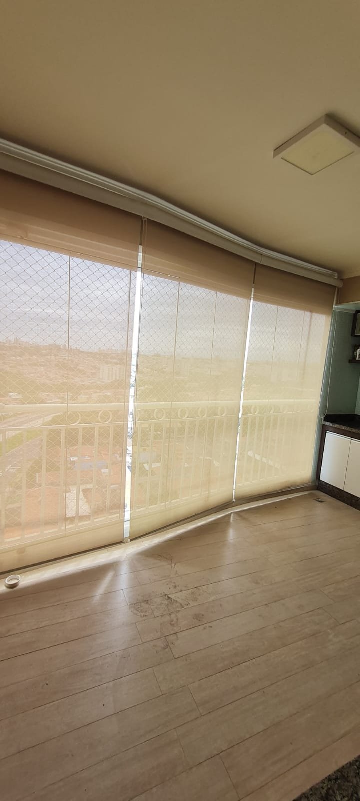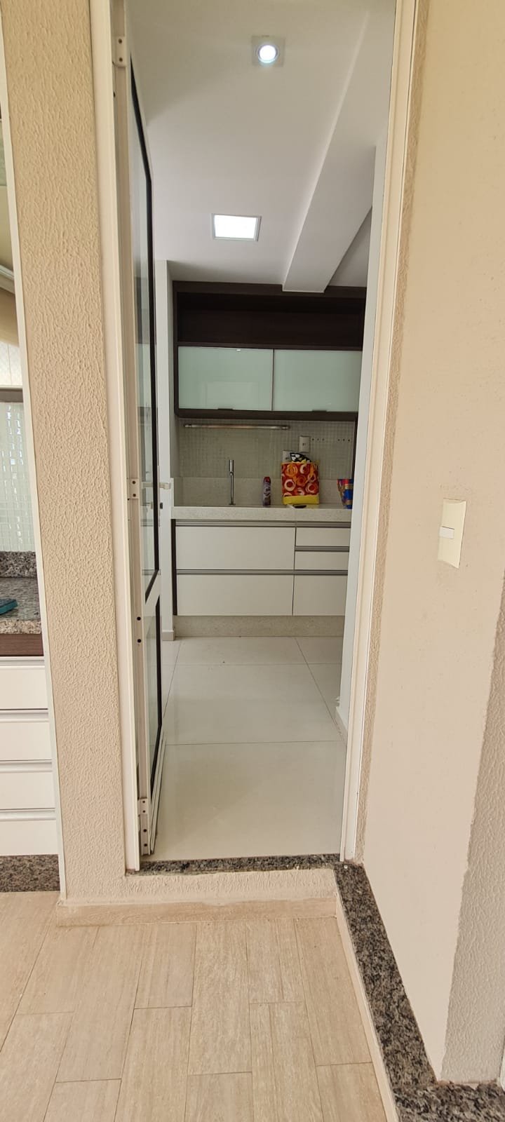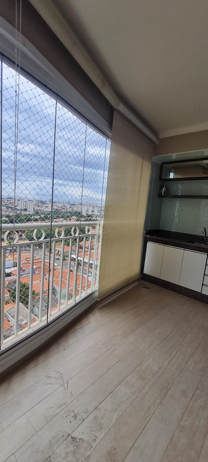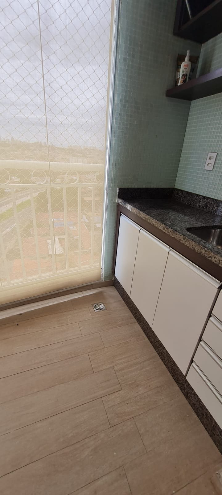 Sacada Gourmet:- Piso porcelanato em ordem, rodapés em ordem, soleira em mármore cinza Corumbá em ordem, paredes recém-pintadas com grafito na cor areia em ordem, teto com a pintura na cor branco neve em ordem, gola de gesso com a pintura na cor branco neve em ordem, um plafon embutido em ordem, uma porta de correr em alumínio escovado com a pintura na cor branco em ordem, contendo 03 folhas de correr de vidro em ordem, um parapeito em ferro com a pintura na cor branco em ordem, rede de proteção em ordem, 09 folhas de vidro de correr enroscando o restante em ordem, com cortina de rolô tela solar em ordem, uma armário embutido em madeira MDF na cor, marrom com duas portas basculante de vidro jateado em ordem, 02 puxadores em ordem, 02 dobradiças em ordem, 02 pistão pneumáticos em ordem, duas prateleiras de vidro em ordem, um nicho em ordem, um gabinete embutido de pia em madeira MDF com a pintura na cor branco em ordem, puxadores embutidos em ordem, contendo uma prateleira em ordem, 04 gavetas de correr em ordem, três portas em ordem 06 dobradiças em ordem, uma pia em mármore cinza Corumbá em ordem, frontão em ordem, rodapé em ordem, torneira em ordem, cuba em ordem, sifão em ordem, ralo em inox desentupido em ordem, parede da pia com revestimento em pastilhas em ordem uma tomada com espelho em ordem.