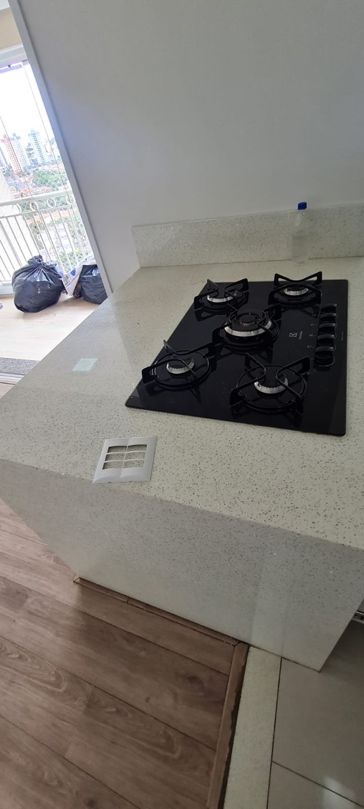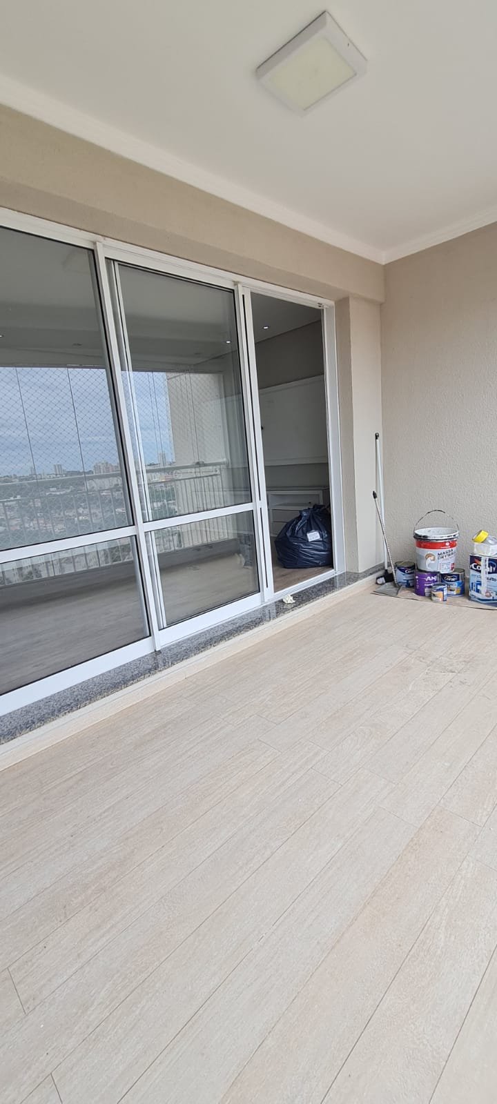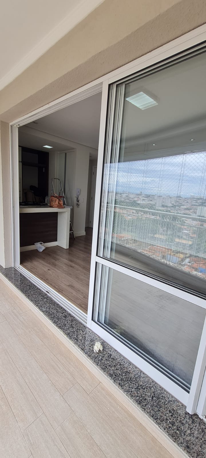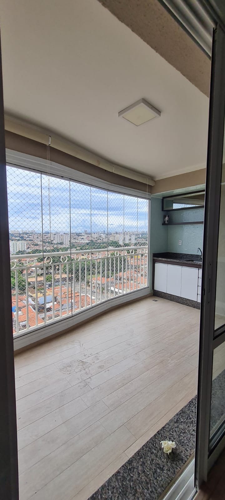 Sacada Gourmet:- Piso porcelanato em ordem, rodapés em ordem, soleira em mármore cinza Corumbá em ordem, paredes recém-pintadas com grafito na cor areia em ordem, teto com a pintura na cor branco neve em ordem, gola de gesso com a pintura na cor branco neve em ordem, um plafon embutido em ordem, uma porta de correr em alumínio escovado com a pintura na cor branco em ordem, contendo 03 folhas de correr de vidro em ordem, um parapeito em ferro com a pintura na cor branco em ordem, rede de proteção em ordem, 09 folhas de vidro de correr enroscando o restante em ordem, com cortina de rolô tela solar em ordem, uma armário embutido em madeira MDF na cor, marrom com duas portas basculante de vidro jateado em ordem, 02 puxadores em ordem, 02 dobradiças em ordem, 02 pistão pneumáticos em ordem, duas prateleiras de vidro em ordem, um nicho em ordem, um gabinete embutido de pia em madeira MDF com a pintura na cor branco em ordem, puxadores embutidos em ordem, contendo uma prateleira em ordem, 04 gavetas de correr em ordem, três portas em ordem 06 dobradiças em ordem, uma pia em mármore cinza Corumbá em ordem, frontão em ordem, rodapé em ordem, torneira em ordem, cuba em ordem, sifão em ordem, ralo em inox desentupido em ordem, parede da pia com revestimento em pastilhas em ordem uma tomada com espelho em ordem.