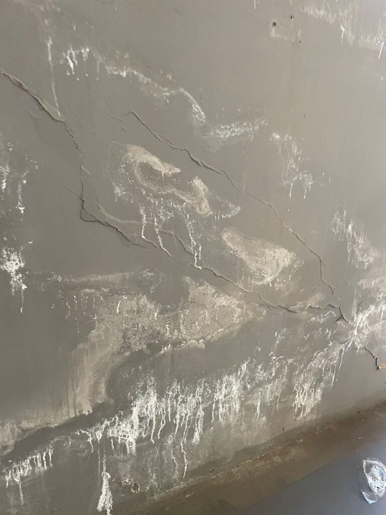 COZINHA:- Piso concreto usinado polido com pintura na cor cinza com manchas e parte sendo piso cerâmico na cor bege em ordem, paredes com pintura na cor branco neve com manchas e com grafite, pia de resina na cor preta com gabinete inacabado, torneira pescoço de ganso e sifão sanfonado, porta de madeira com pintura na cor cinza maçanetas e fechadura com chave yale em ordem, grade de ferro com 02 fechaduras tetra com chaves em ordem, 01 interruptor, 02 luminárias duplas, 04 lâmpadas fluorescentes tubulares em ordem, 04 tomadas em ordem, 02 espelhos de telefone danificados, 01 balcão com pedra cor preta.