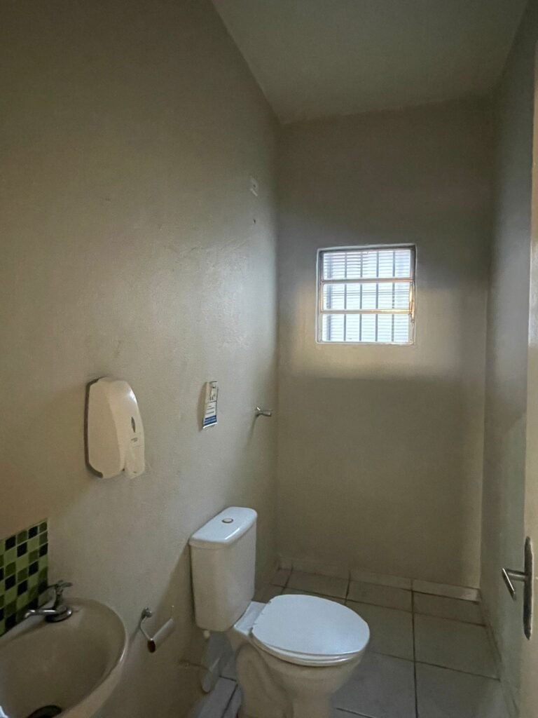 WC/1 ACESSIBILIDADE:- Piso frio cerâmica cor branco, ralo em ordem, parede com pintura na cor verde com desgaste e manchas, rodapé com piso frio cerâmico branco sendo 02 deles com trincos, conjunto vaso sanitário e caixa acoplada de descarga e tampa de plástico na cor branca em ordem, 01 pedra de mármore retangular preta na divisão do piso do banheiro, 01 pia cerâmica branca sifão sanfonado em ordem, 01 vitrô em ordem, porta de madeira branca em ordem, maçanetas em ordem, fechaduras em ordem, teto branco em ordem, 01 interruptor em ordem, 01 prego na parede, 01 suporte de papel higiênico danificado, 01 registro para chuveiro, 01 lâmpada bulbo danificada.