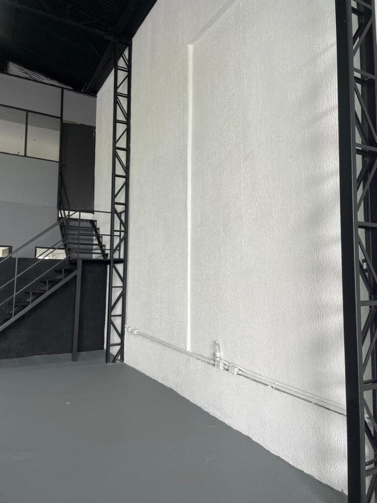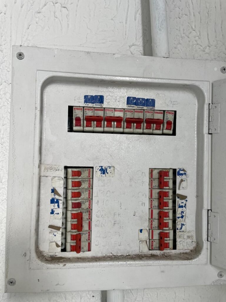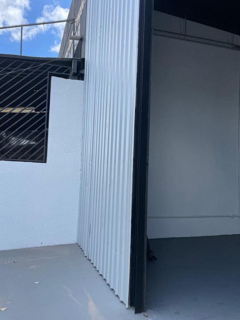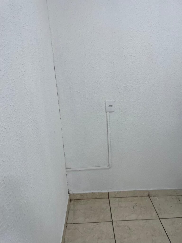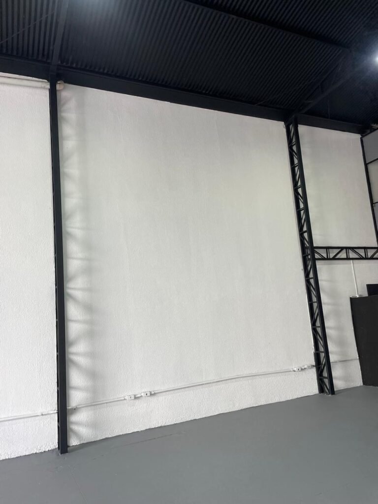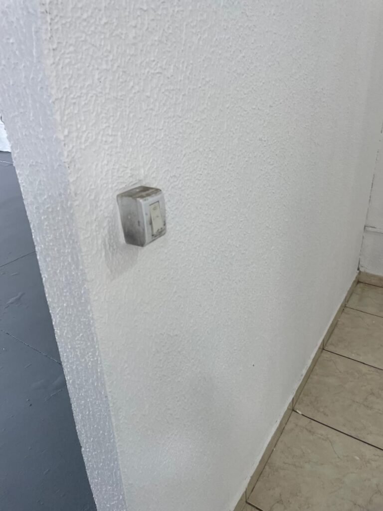 GALPÃO-: Piso de concreto usinado e polido com pintura acrílica premium na cor cinza nova e em ordem, paredes laterais com textura e pintura na cor branco neve nova e em ordem, telhado de estrutura metálica com pintura nova na cor preto nova e em ordem, com telhas galvanizadas com pintura na cor preto nova e em ordem, 01 caixa de disjuntores gerais sendo eles, 01 disjuntor trifásico 63A, 07 disjuntores bifásico 20A, 06 disjuntores monofásico 16A, 02 disjuntores bifásico 32A. 06 holofotes 300w IP66 com Led em ordem, 02 interruptores em ordem, interação elétrica por conduletes externos com 20 tomadas, 02 tomadas sem espelho.