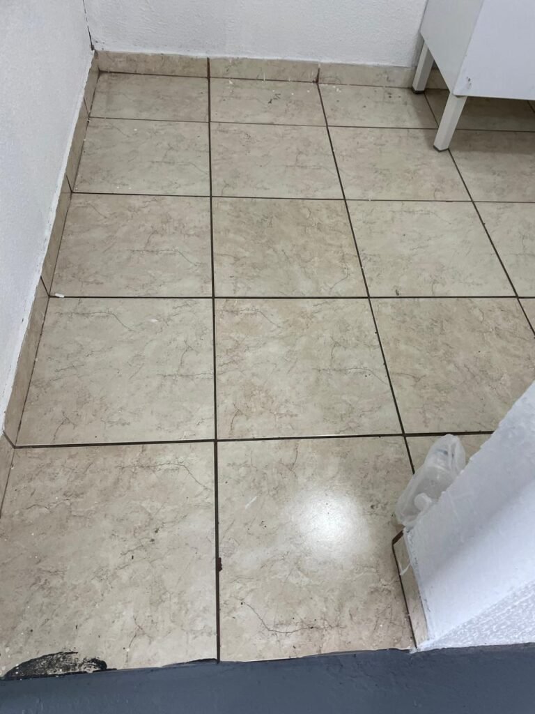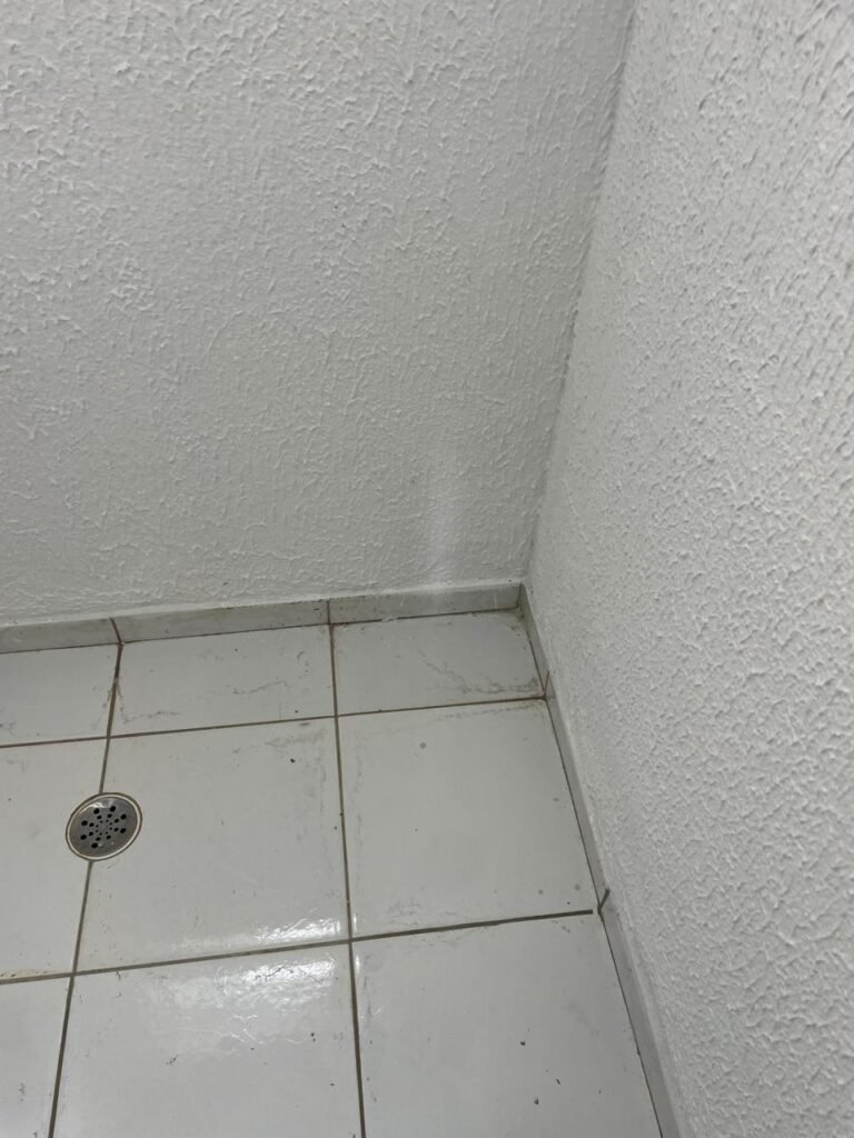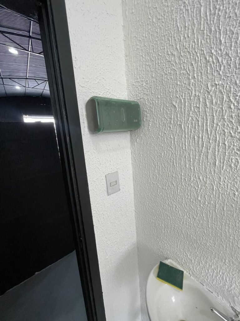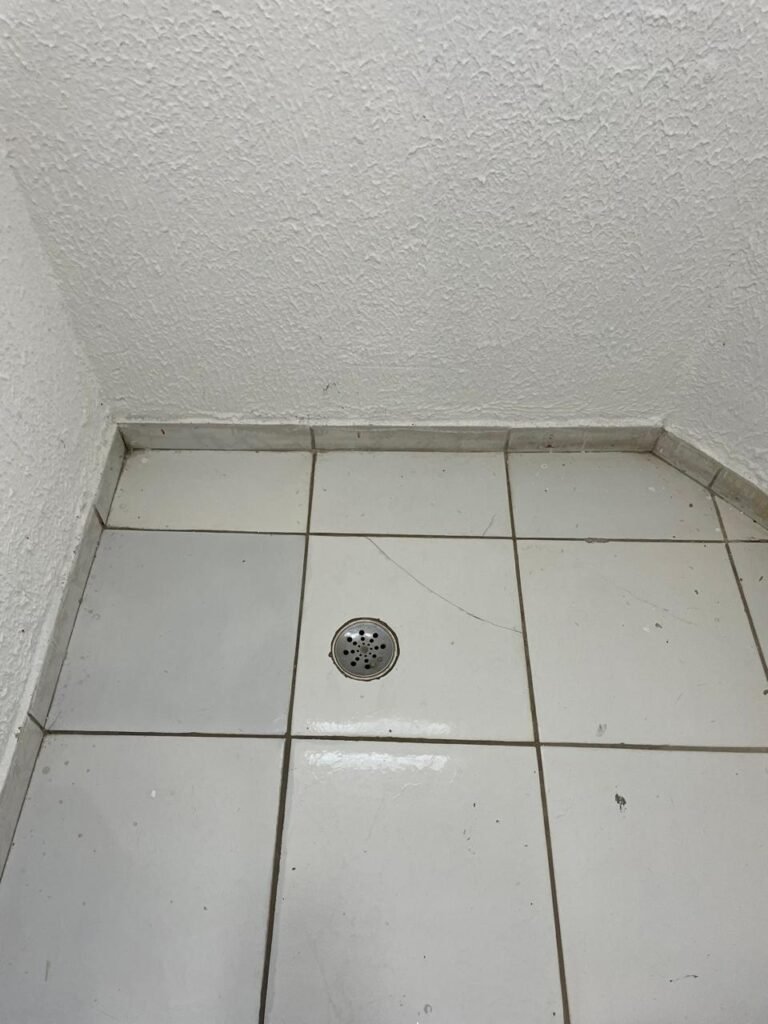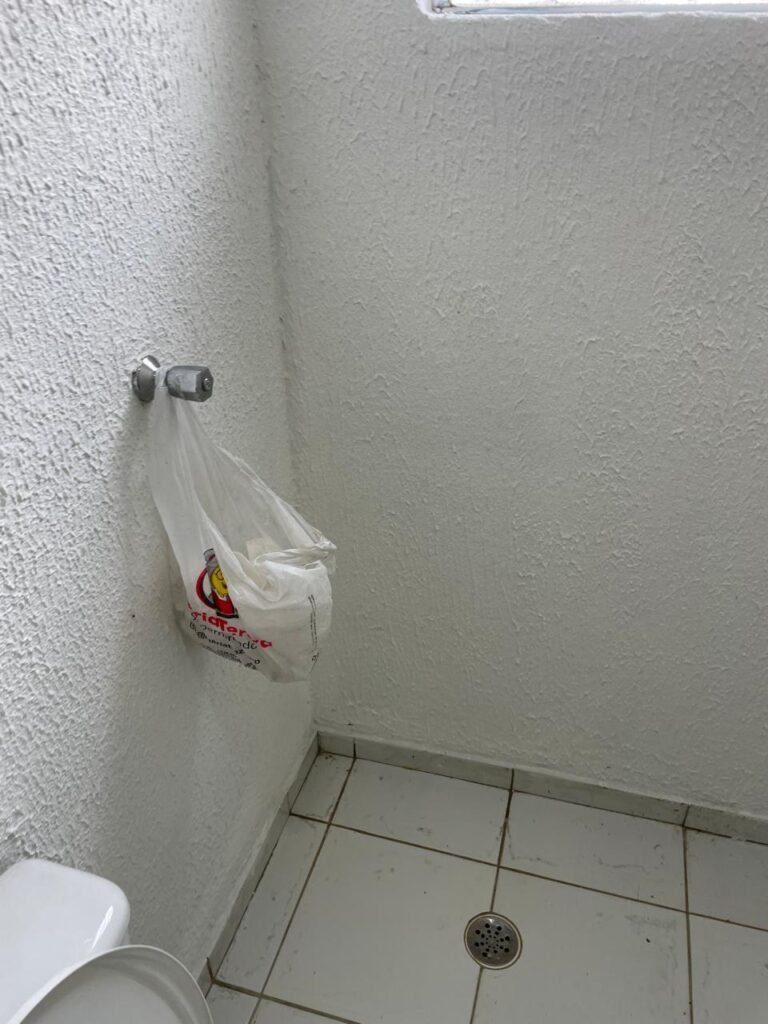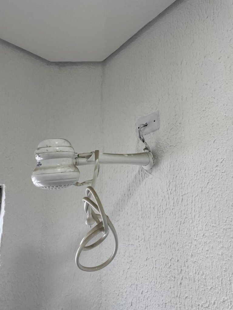 WC/3 FEMININO-: Piso frio cerâmica cor branco sendo 02 deles com trincos, ralo em ordem, parede com pintura na cor branca em ordem, 03 parafusos na parede, teto de gesso com pintura na cor branco neve nova e em ordem, conjunto vaso sanitário e caixa acoplada de descarga e tampa de plástico na cor branca em ordem, 01 pia cerâmica branca sifão sanfonado em ordem, 01 vitrô em ordem, porta de madeira com pintura na cor preto nova e em ordem, maçanetas em ordem com acabamento solto, fechaduras em ordem, 01 interruptor em ordem, 01 luminária plafon de sobrepor com Led em ordem, 01 suporte de papel higiênico em ordem, 01 suporte para sabonete liquido, 01 suporte de papel de mão, 01 canopla em inox, 01 chuveiro Lorenzetti.