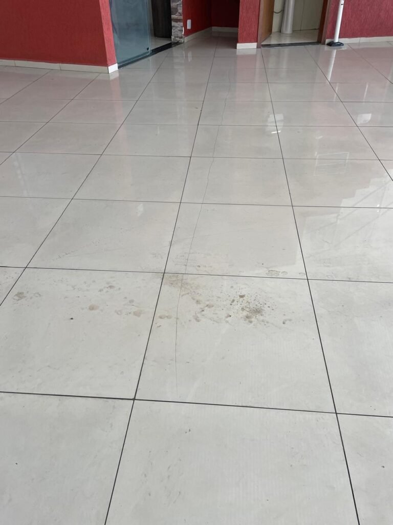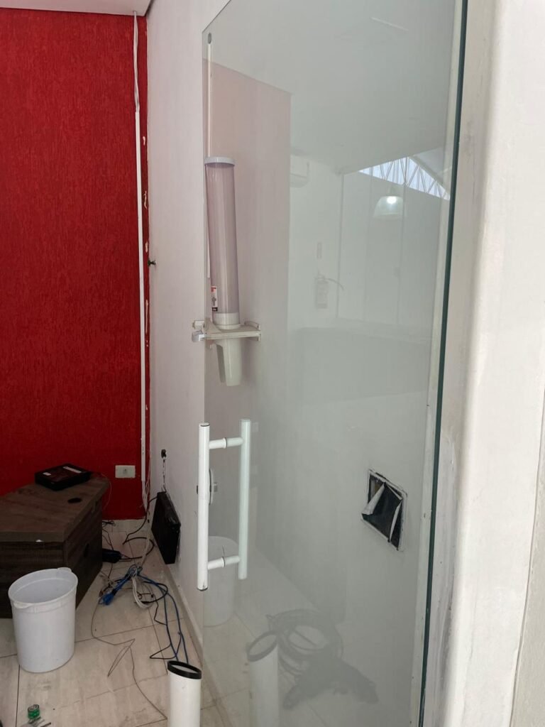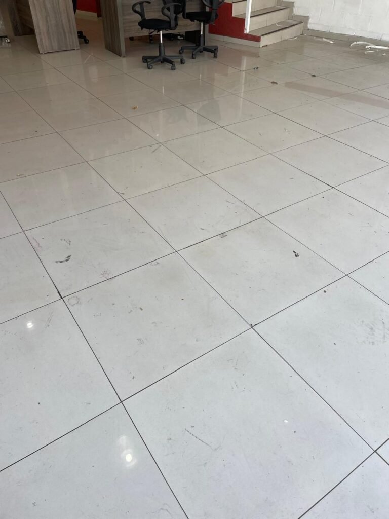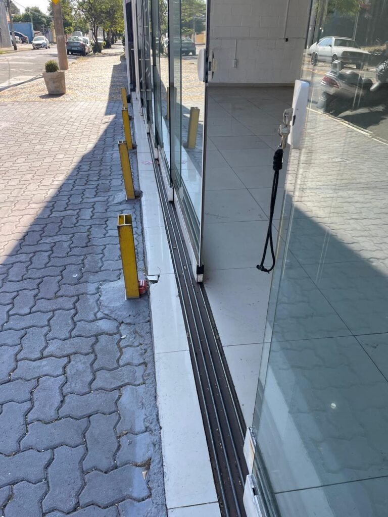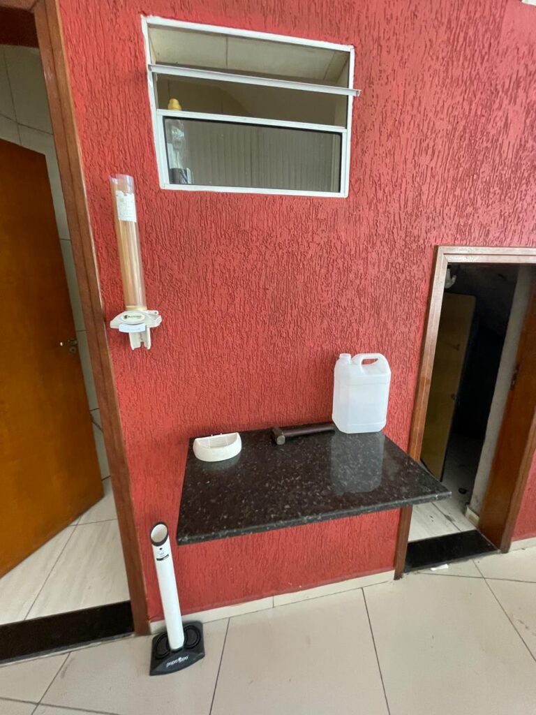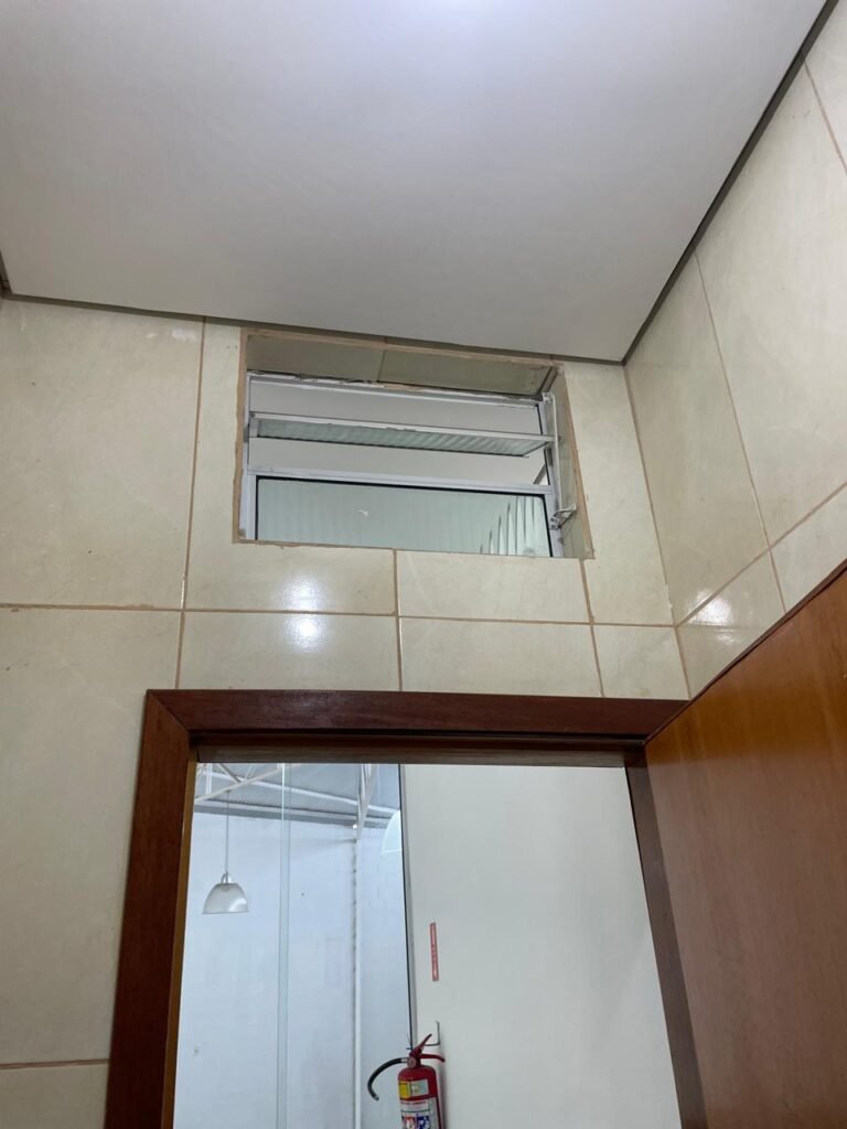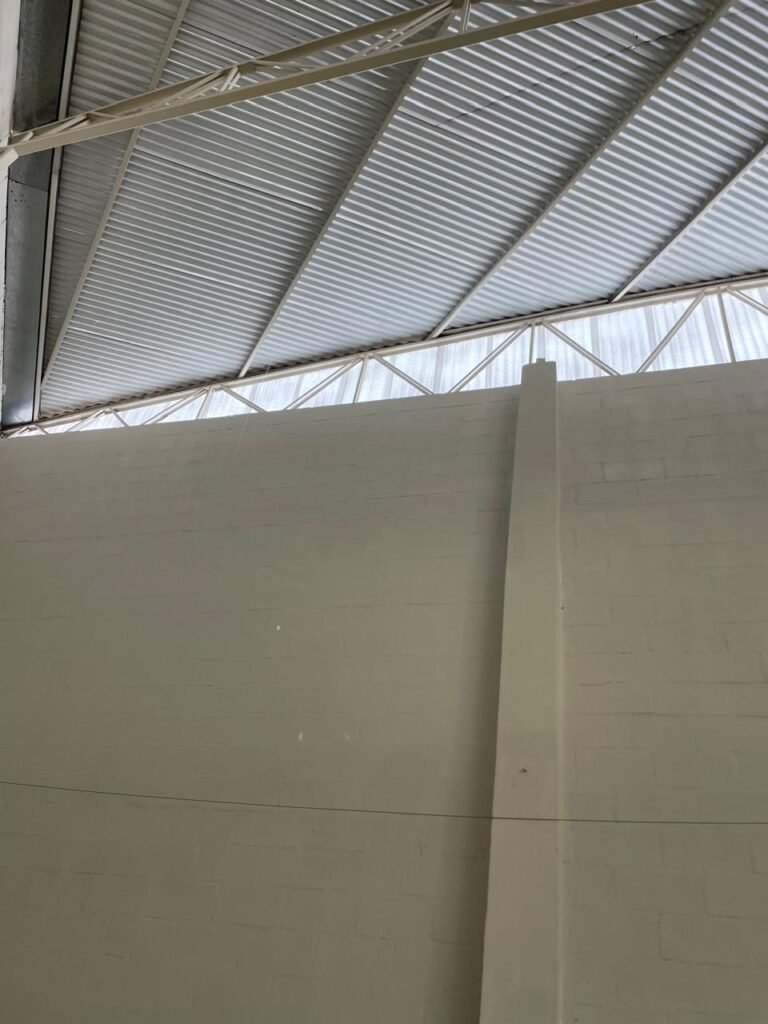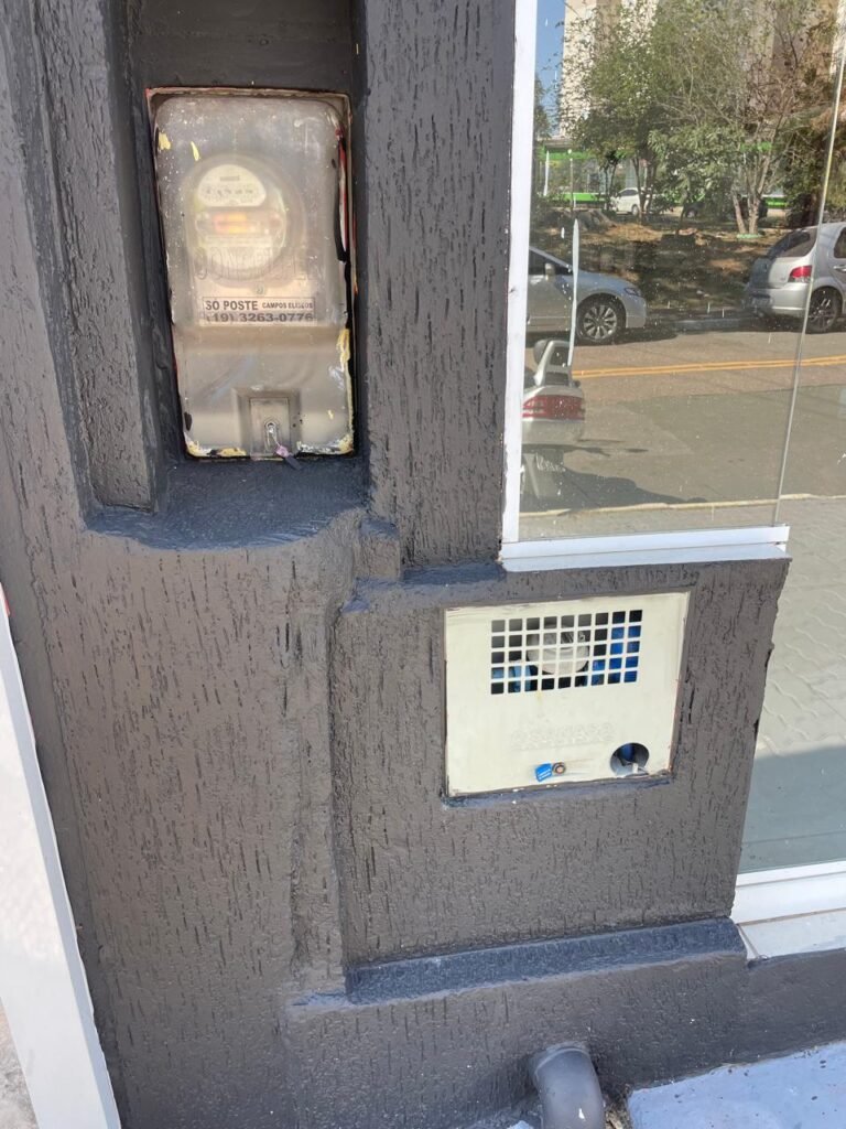 GALPÃO-: 07 Portas deslizantes em vidro temperado e estrutura de ferro em ordem, ambas com roldanas em ordem, 01 trinco para cadeado com cadeado em ordem, porta principal com 01 fechadura 3F em ordem e com chave, piso e rodapé revestidos de pisos de porcelanato com desgastes naturais, pontos com trincas pela extensão e restante em ordem, 02 tampas de inspeção de encanamento em ordem, paredes em blocos de concreto com pintura na cor branco neve com desgastes naturais, descasques pela extensão e restante em ordem, 01 poste interno com 01 disjuntor Jng C63 em ordem, 01 quadro de distribuição marca Tigre com tampa em ordem, disjuntores sendo eles: 04 SD C20 1P, 01 SD C20 2P, 02 SD C40 2P, 01 SD C63 2P (Todos Steck), 03 FD 3 C20 (Todos Fame), 01 C20 Jng 1P (Jng). 12 espelhos de luz sendo eles: 01 espelho com 01 interruptor, 07 espelhos com 01 tomada, 02 espelhos com 04 tomadas, 01 espelho com 01 interruptor, 01 espelho com 01 interruptor e 01 tomada. 03 luminárias de emergências danificadas, 05 câmeras de vigilância não testadas, 04 extintores de incêndio (02 carga de pó químico e 02 com carga de água, 01 de pó químico está vencido, restante em ordem. 01 parede de alvenaria com grafiato e pintura na cor preto com letreiro nas cores amarelo e branco, 03 ventiladores de teto (01 marca Lorensid e 02 Mondial) sendo que 01 deles está com base virada para baixo e 01 está fazendo barulho, 02 interruptores de ventilador em ordem marca AjSantos, 02 réguas de energia com 04 tomadas em ordem, 02 mesas de MDF com pequenos pontos saindo lascas, 01 gaveta em cada, com puxadores e corrediças em ordem, 02 portas canetas de MDF em ordem, 01 bancada com estrutura de ferro em ordem e 01 pedra de granito cor preto em ordem, 02 porta-copos marca Multi copo com partes trincadas e restante em ordem, 02 lixos de copos marca papacopo em ordem, 01 filtro de água marca Consul Facilite em ordem, pia com granito cor preto em ordem, 01 cuba de cerâmica cor branco com desgastes naturais, marca Incepa em ordem, 01 torneira de inox com acabamento solto e restante em ordem, 01 sifão sanfonado em ordem, 01 espelho de reflexo com moldura de madeira em ordem, telhado com estrutura de ferro com pintura na cor branco em ordem, telhas galvanizadas com pintura na cor branco em ordem, parte da parede revestida em telhas translúcidas sendo que 01 delas está solta. 08 luminárias pendentes com 01 lâmpada LED em cada sendo que 01 delas está queimada, 01 bocal com 01 lâmpada LED em ordem.