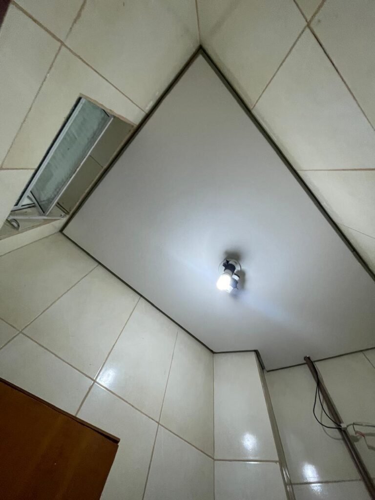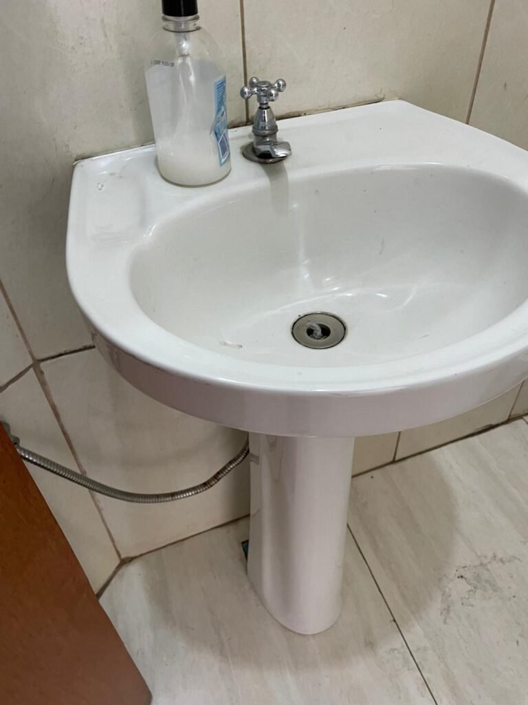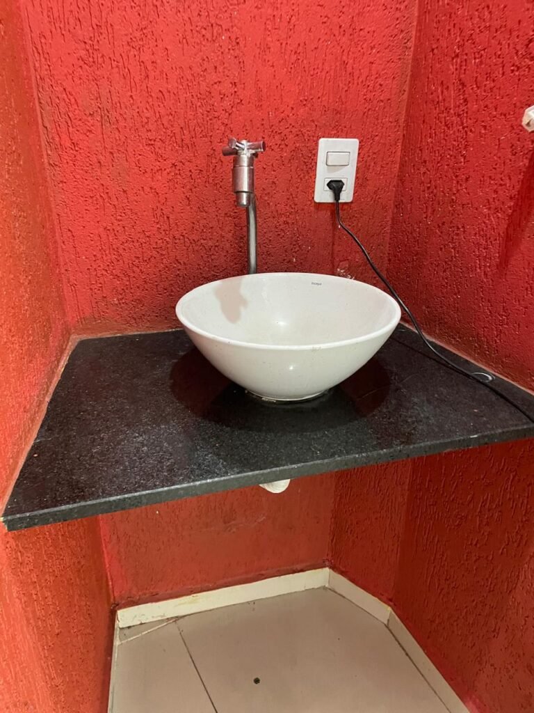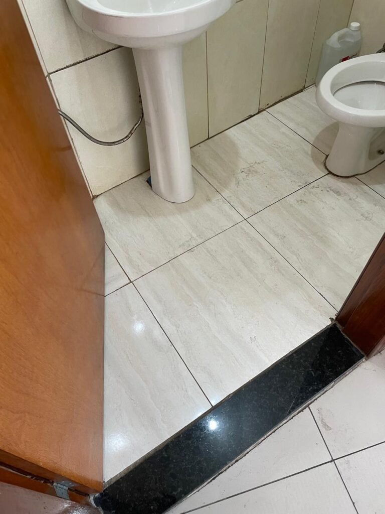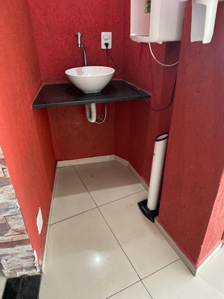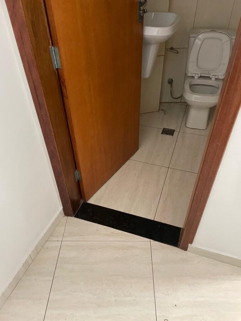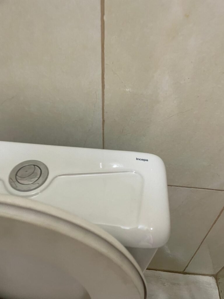 WC-: 01 Porta de madeira envernizada em ordem, com maçanetas em ordem, com 01 fechadura marca Aliança em ordem e com chave embutida, 01 soleira de granito cor preto em ordem, piso e vestido de pisos frios cerâmicos com desgastes naturais e restante em ordem, 01 ralo de inox com tampa aberta, 01 conjunto lavatório de cerâmica cor branco em ordem, marca Logasa, 01 torneira em inox marca Talita em ordem, 01 sifão em ordem, conjunto sanitário de cerâmica cor branco em ordem, vaso marca Logasa, caixa acoplada marca Incepa, com tampa e assento em ordem, com válvula de descarga embutida em ordem, 01 lixo de plástico marca Rainha em ordem, 01 espelho de reflexo com moldura de plástico em ordem, 01 suporte de papel de mão marca Clen Velox Premisse em ordem, paredes revestidas de pisos frios cerâmicos em ordem, 01 vitrô basculante com esquadrias de alumínio na cor branco em ordem, com fechadura danificada e 02 folhas de vidros canelados em ordem, 01 espelho de luz com 01 interruptor em ordem, teto com forro de gesso e pintura na cor branco neve nova e em ordem, 01 bocal duplo com apenas 01 lâmpada LED em ordem.