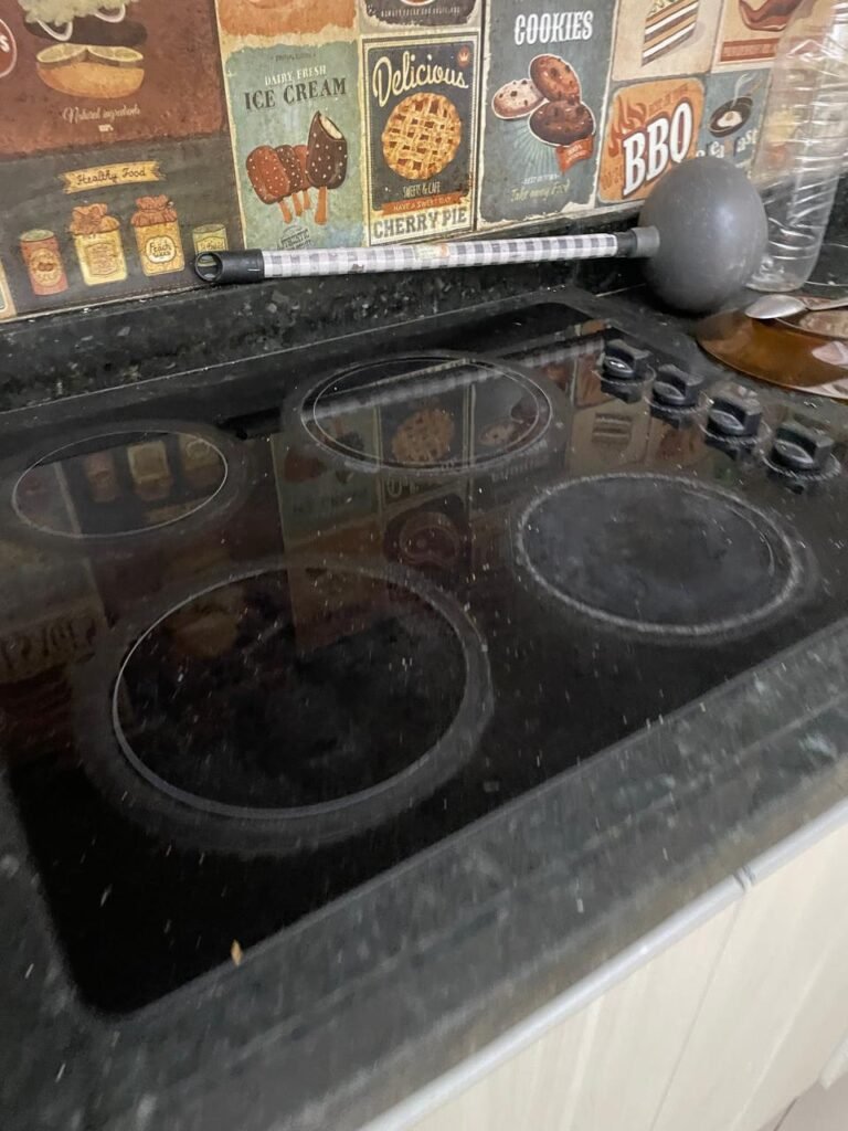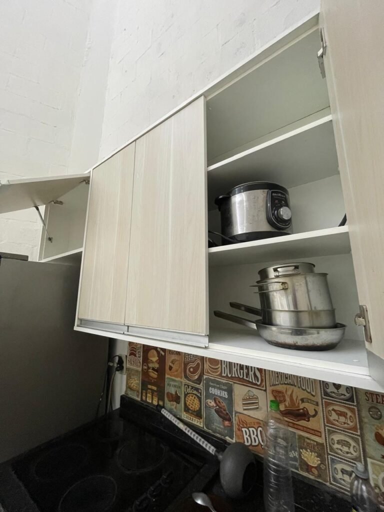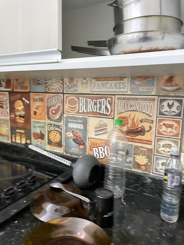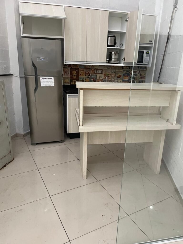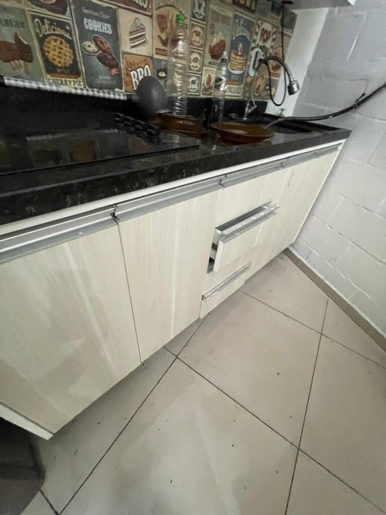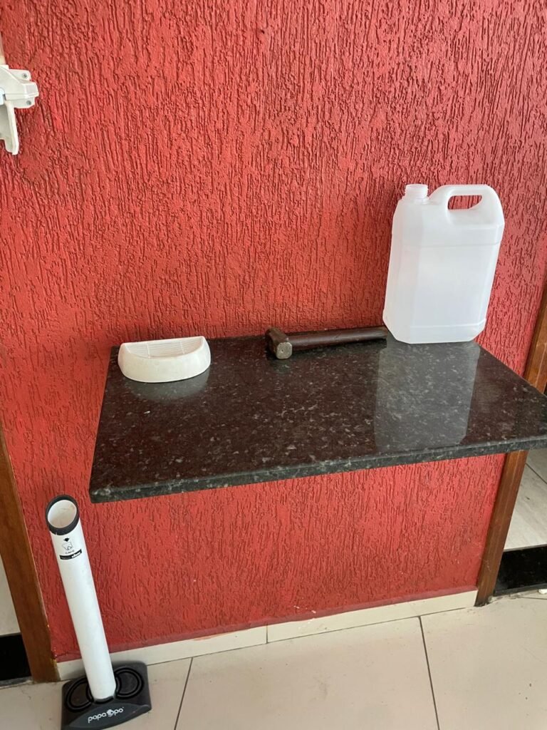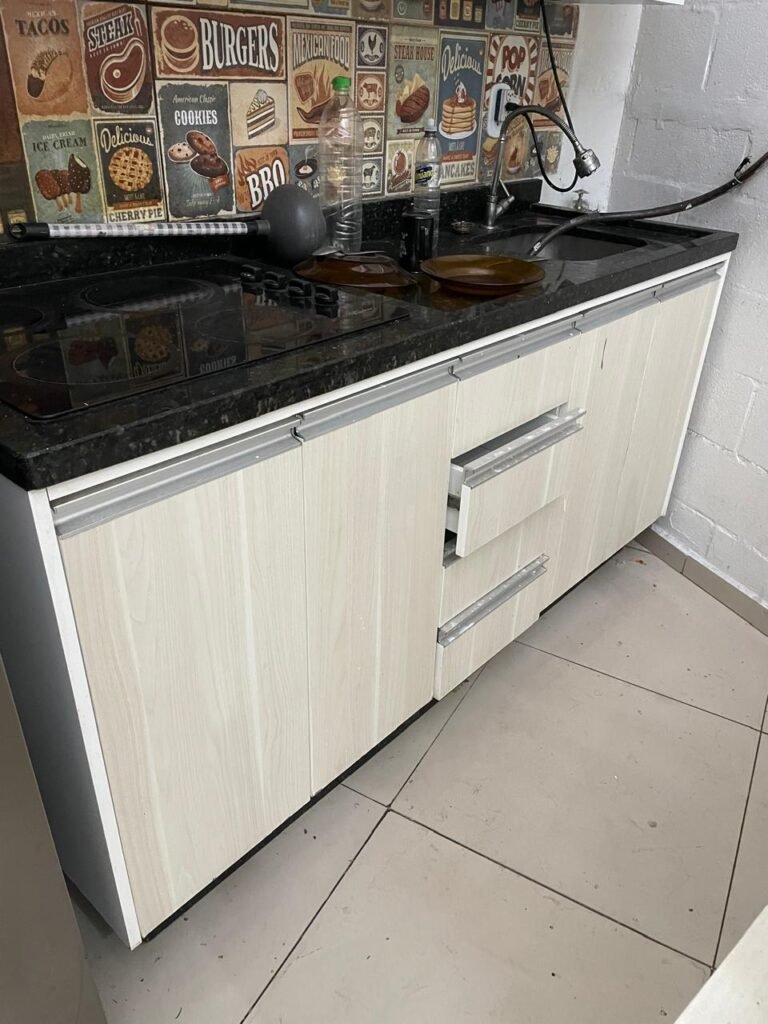 COZINHA-: 02 vidros temperados fixos em ordem, apenas 01 porta deslizante de vidro temperado (outra parte está faltando), piso e rodapé revestido de pisos frios cerâmicos com desgastes naturais e partes trincadas restante em ordem, 01 tampa de inspeção de ferro em ordem, paredes em blocos aparentes com pintura na cor branco neve com desgastes naturais e com manchas pela extensão, 02 interruptores de ventiladores em ordem, 01 ventilador sem funcionamento marca Mundial, 05 espelhos de luz sendo eles: 02 espelhos com 01 tomada, 02 espelhos com 02 tomadas, 01 espelho com 01 interruptor e 0 em tomada. Gabinete parte inferior da pia em MDF com pequenas partes estufadas, 04 portas em ordem, 05 gavetas em ordem, 08 puxadores em inox em ordem, corrediças e dobradiças em ordem, pia de granito cor preto em ordem, 01 cooktop marca Fischer em ordem, 01 torneira de inox bica móvel com desgastes naturais, porém em ordem, Cuba em inox em ordem, parte da parede com revestimento de pastilhas cerâmicas, 01 gabinete superior com 05 portas em ordem, 05 puxadores em inox em ordem, pistões pseudomáticos em ordem, dobradiças em ordem, 01 panela Britânia elétrica em ordem, 07 panelas de inox em ordem, 01 AirFryer em ordem, torneira dupla de inox em ordem, 02 condensadores marca Midea em ordem, 01 refletor com LED em ordem, 01 mesa de MDF com desgastes naturais em ordem, 02 bancos de MDF com estufados e desgastes naturais, 01 bancada de MDF com desgastes naturais e com manchas de ferrugem.
