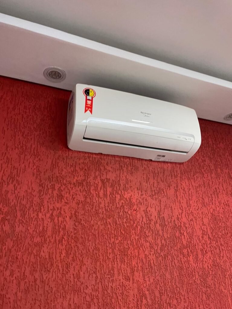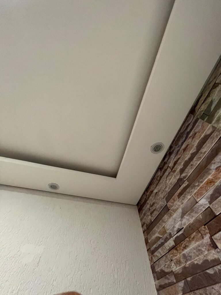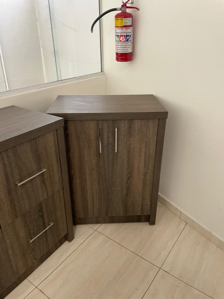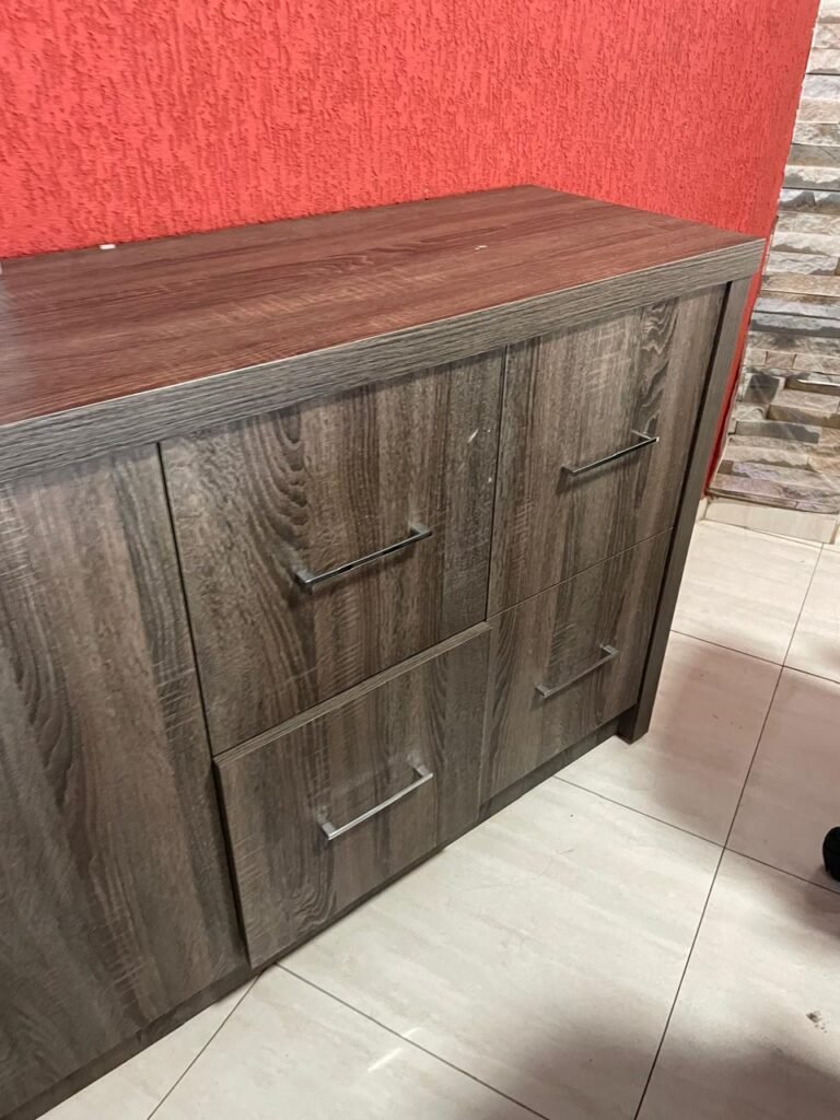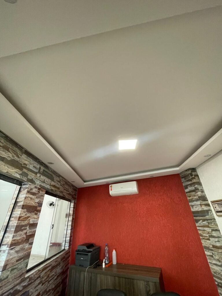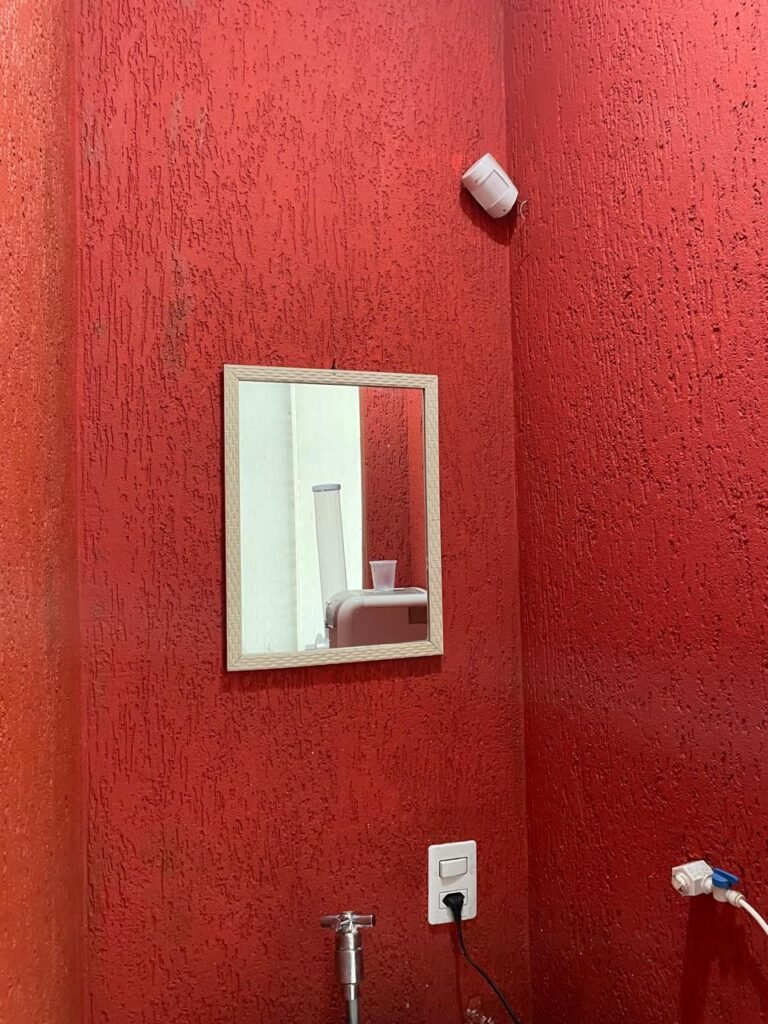 COMODO-: 01 porta social de vidro temperado em ordem, 02 puxadores em ordem, 01 fechadura marca Franzmar em ordem, 02 vidros temperados fixos em ordem, piso e rodapé revestido de pisos frios cerâmicos com desgastes naturais, algumas partes trincadas pela extensão e restante em ordem, paredes com pintura na cor branco neve com desgastes naturais, descasques por toda extensão e restante em ordem, 01 parede com grafiato e pintura na cor vermelha com desgastes naturais e restante em ordem, 04 janelas deslizantes sendo elas: todas com 04 vidros temperados em ordem, 01 fechadura em cada em ordem. 01 sensor de presença não testado, 01 câmera de vigilância não testada, 11 espelhos de luz, 01 com 03 interruptores e 10 com 01 tomada, 01 mesa de MDF com 02 gabinetes acoplados, saindo lascas e restante em ordem, 08 gavetas em ordem, 08 puxadores em inox em ordem, 01 gaveta com 01 fechadura e 02 Chaves em ordem, corrediças em ordem. 01 bancada de MDF em ordem, 01 gabinete de MDF em ordem com 02 portas 04 gavetas, 06 puxadores em inox em ordem, dobradiças e corrediças em ordem, 01 armário de MDF em ordem com 02 portas, 02 puxadores de inox e dobradiças em ordem. 01 porta-copos multicopo em ordem, 01 modem padrão Vivo em ordem, 01 DVR marca LuxVision não testado, 01 ar condicionado marca Springer em ordem e com 01 controle remoto em ordem, 01 extintor de incêndio com carga de pó químico Abc com validade em dia, teto com rebaixamento de gesso e pintura na cor branco neve em ordem, 01 luminária plafon embutida com LED em ordem, 06 spots com LED danificado.