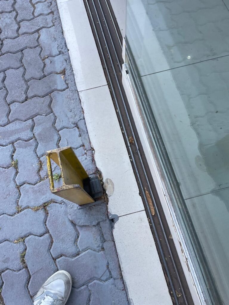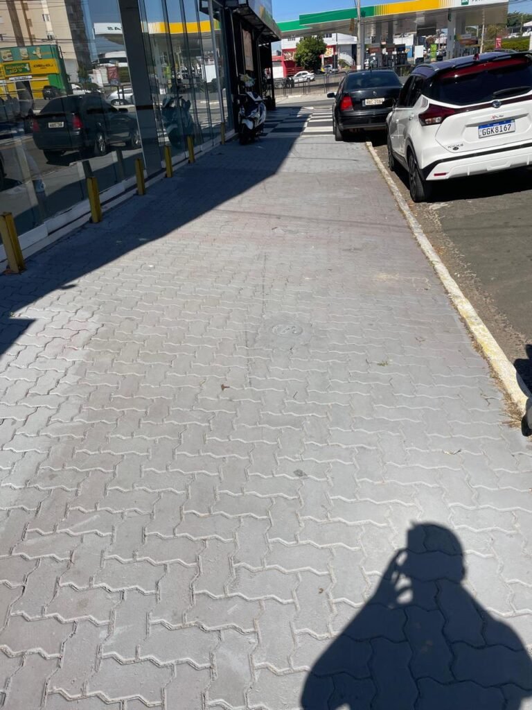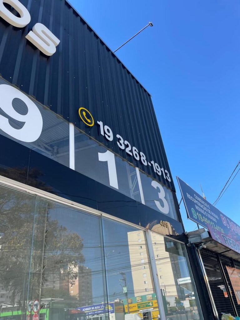 FACHADA-: Calçada de bloquetes intertravados com pintura na cor cinza, com desgastes naturais, marcas de pneus e restante em ordem, 07 pontos para vigas de ferro, porém apenas 06 vigas estão em ordem, todas com pintura na cor amarela com desgastes naturais, parte da fachada em alvenaria com grafiato e pintura na cor preto, cavalete em ordem, quadro do medidor elétrico com tampa e lacre em ordem, quadro com hidrômetro padrão sanasa com tampa e lacre em ordem, fachada do imóvel com portas de vidro deslizante em ordem, 08 vitrôs fixos com vidro temperado em ordem, restante com fechamento em telhas galvanizadas com pintura na cor preto e com acabamentos do ex inquilino, dígitos em Acm “4-0-9” em ordem, 02 câmeras de vigilância não testadas.