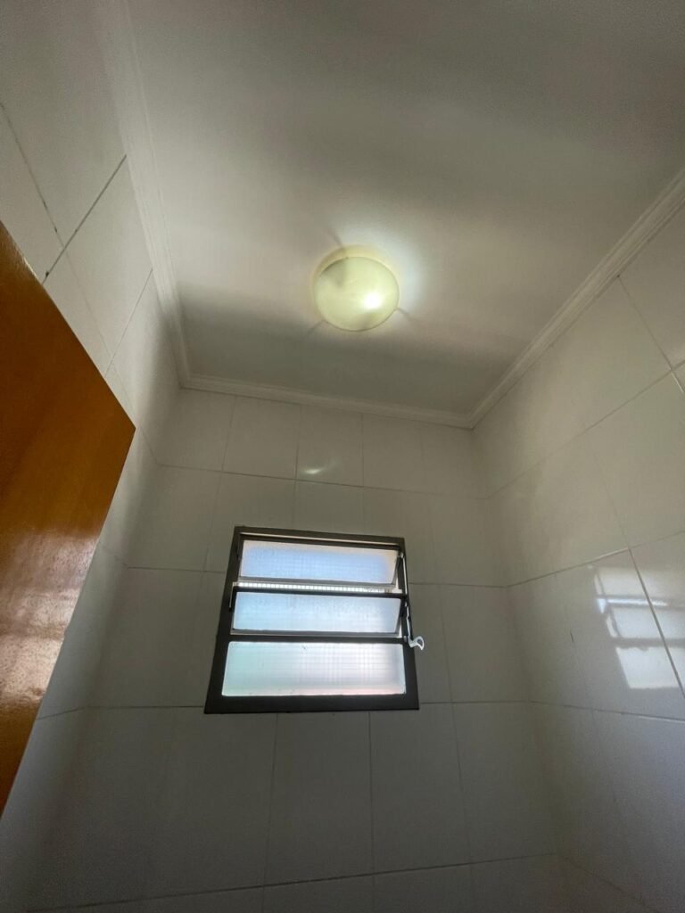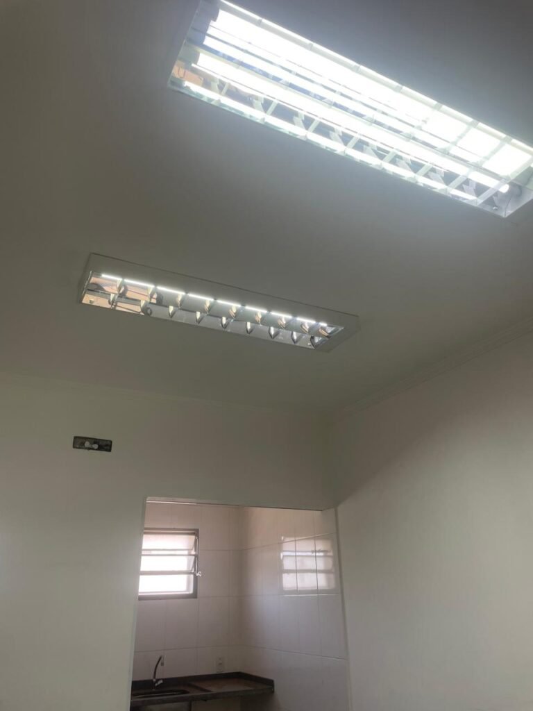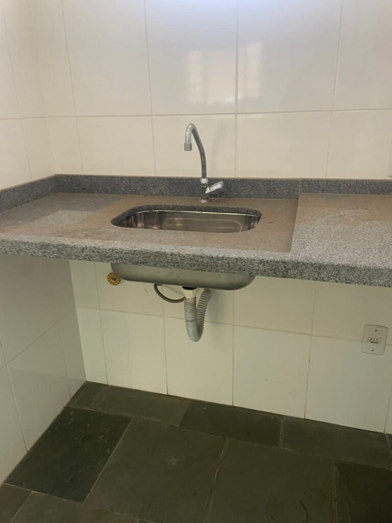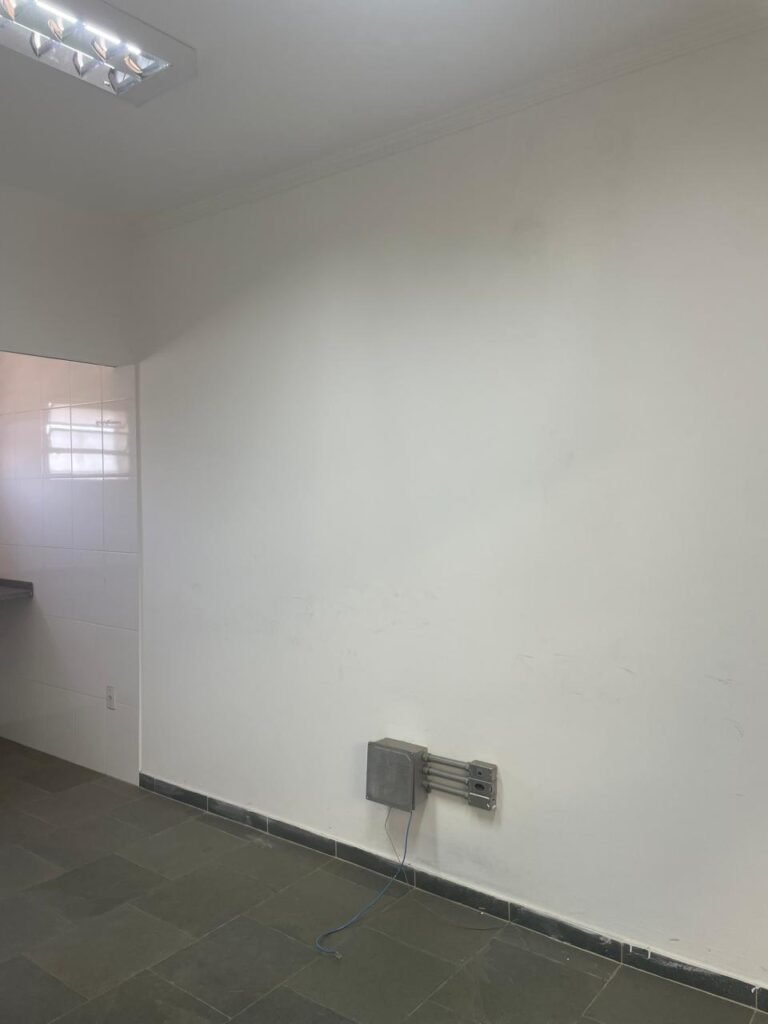 SALA SUPERIOR-: 01 porta social de madeira envernizada em ordem, com maçanetas de inox em ordem, com fechadura simples marcar Pado com chave em ordem, piso e rodapé revestido em ardósia com desgastes naturais restante em ordem, paredes com pintura na cor branco neve com manchas de sujeira e desgastes naturais, parte com paredes invertidas de azulejo na cor branco em ordem, 07 espelhos de luz marca Tramontina sendo eles: 02 espelhos com 01 interruptor e 05 espelhos com 01 tomada, 02 quadros de distribuição de energia (01 deles com cabo de internet à vista) e com 01 condulete para entrada de fio de dados, 01 condulete com 01 tomada e 01 condulete cego. Pia de granito cinza ocre em ordem, Cuba em inox em ordem, torneira em inox em ordem, 01 sifão sanfonado em ordem, 01 com a moto de registro Deca em ordem, 01.para ar condicionado em ordem, 01 janela deslizante marca Lucasa, com esquadrias de ferro com pintura na cor cinza com desgastes naturais, com 01 fechadura em ordem, com 20 vidros foscos com manchas de tinta e restante ordem, com gradil de ferro de proteção em ordem, 01 vitrô basculante com esquadrias de ferro com pintura na cor cinza com desgastes naturais, 01 fechadura em ordem e 03 vidros foscos com manchas de tinta e restante em ordem, 02 luminárias duplas jateadas ambas com 02 lâmpadas tubulares com LED em ordem, 01 luminária prato com 01 lâmpada de LED em ordem, teto com gola de gesso em ordem e com pintura na cor branco neve em ordem.
