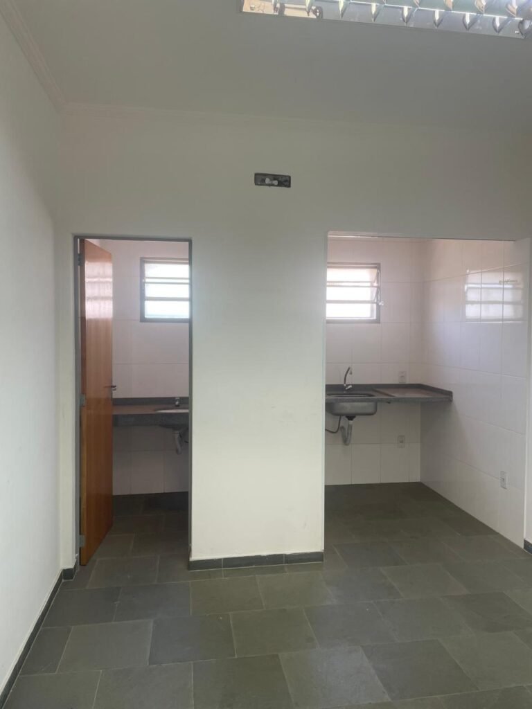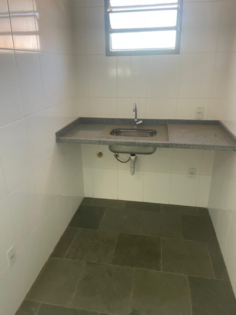 COZINHA-: 02 Portas social de madeira envernizada em ordem, com maçanetas em inox em ordem, fechadura simples marca Pado em ordem (01 delas com chave em ordem), piso e rodapés em ardósia em ordem, paredes com pintura na cor branco neve, com pequenos desgastes na região da pia, pequenas manchas e restante em ordem, 01 pia de granito cinza ocre em ordem, 01 cuba de inox em ordem, 01 torneira em inox em ordem, 01 sifão sanfonado em ordem, 01 torneira de Jardim em ordem, 01 vitrô basculante com esquadrias com pintura na cor cinza com desgastes naturais, 02 fechaduras em ordem, 12 vidros foscos com manchas de tinta e restante em ordem, 01 interfone padrão Intelbras IPR 8000 em ordem, 05 espelhos de luz marca Tramontina, sendo eles: 02 espelhos com 01 interruptor e 03 espelhos com 01 tomada. 01 quadro de distribuição de energia com 03 conduletes sendo eles: 01 condulete com entrada para fio de dados, 01 condulete com 01 tomada e 01 condulete cego. 01 luminária jateada dupla, com 02 lâmpadas tubulares de LED, 01 lâmpada em ordem e 01 lâmpada com parte queimada. 01 luminárias prato com led em ordem, teto com gola de gesso em ordem e pintura na cor branco neve em ordem.