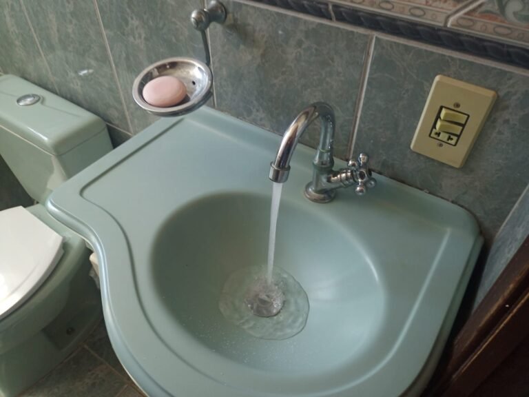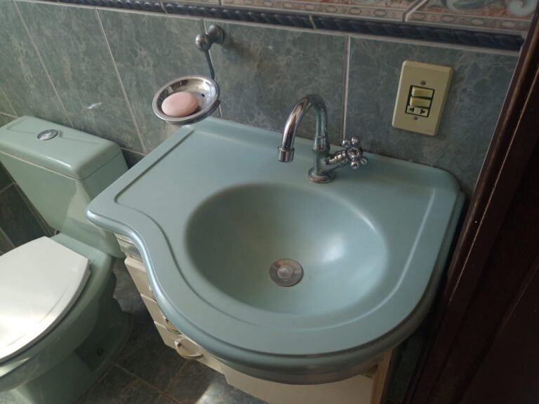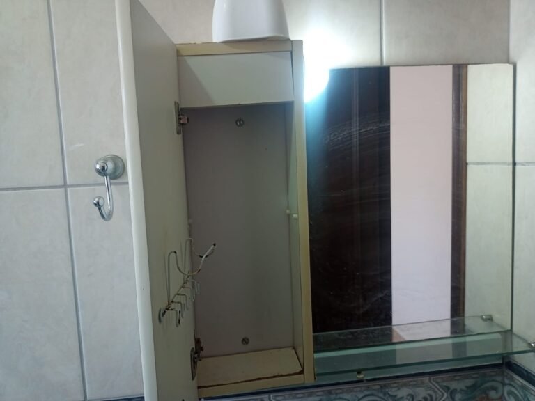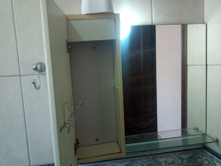 BANHEIRO:- 01 Porta camarão de madeira em ordem, 01 gabinete de madeira com 03 gavetas e 01 porta em ordem, 01 pia em ordem, 01 torneira de inox em ordem, 01 saboneteira de inox em ordem, 01 espelho de luz com 02 interruptores e 01 tomada em ordem, 01 ralo de inox em ordem, 01 conjunto sanitário na cor verde claro em ordem, 01 tampa de vaso sanitário na cor branca em ordem, 01 porta papel higiênico em ordem, 01 chuveiro Lorenzetti Maxi Ducha em ordem e com chuveirinho, 02 registro de inox em ordem, 01 vitro basculante com 04 vidros em ordem, 01 porta sabonete em ordem, 02 lâmpadas em ordem, pisos em ordem, paredes revestidas de frios cerâmicos em ordem.