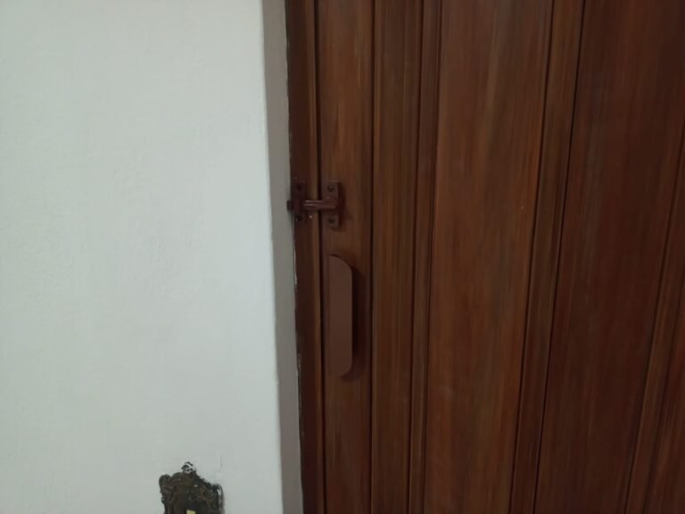 SALA:- 01 Porta de porta de madeira em ordem, 01 maçaneta em ordem e com chaves, pisos e rodapés revestidos de frio cerâmicos em ordem, paredes e teto com pinturas novas e em ordem 01 quadro de disjuntor em ordem, 03 tomadas em ordem, 01 espelho com entrada para cabos de dados em ordem, 02 espelhos de luz com 01 interruptor em ordem em cada um deles, 01 interfone não testado, 01 lâmpada com bocal em ordem.