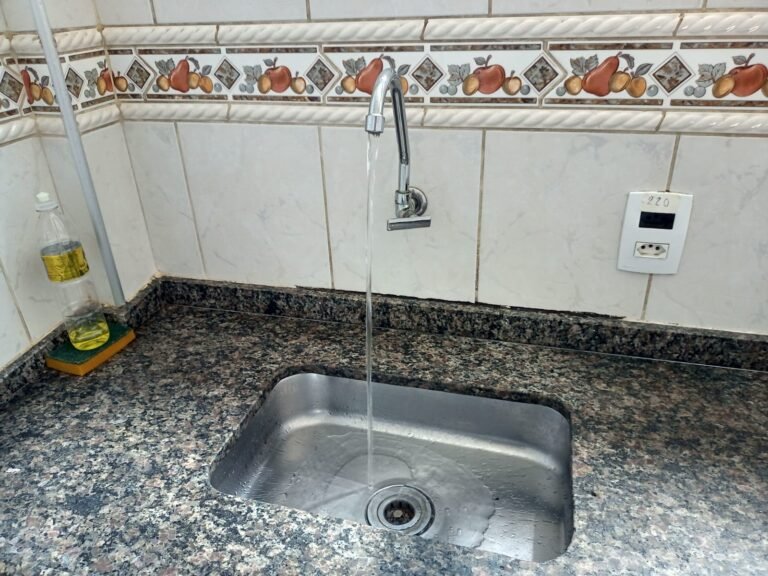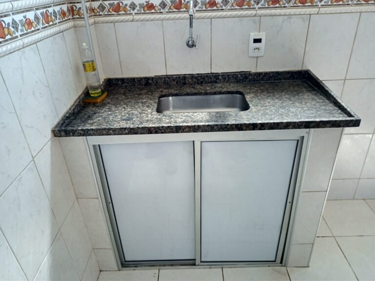COZINHA:- 01 Porta sanfonada marrom em ordem, paredes e pisos revestidos de frios cerâmico em ordem, 01 vitro com 02 folhas com vidros canelados em ordem e travas em ordem, 01 torneira inox em ordem, 01 pia de granito em ordem, 01 cuba de inox em ordem, 06 tomadas em ordem, janela basculante com 05 folhas de vidros canelados em ordem, 01 torneira de jardim inox em ordem, 02 portas do armário abaixo da pia em ordem, 02 bocais com lâmpadas em ordem, 02 varões em ordem.