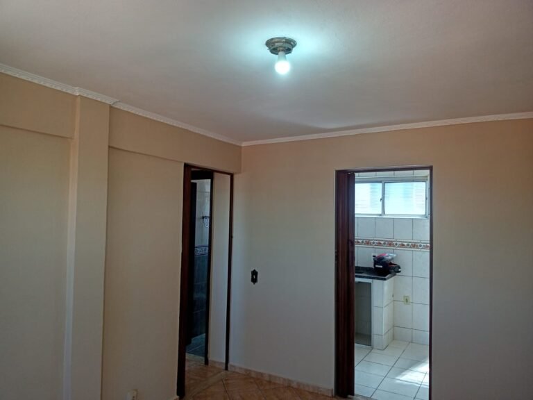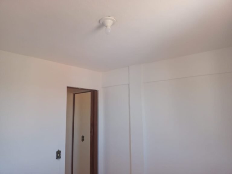 QUARTO 02:- 01 Porta sanfonada marrom em ordem, paredes e teto com pintura na cor branco em ordem, pisos e rodapés revestidos de pisos frios cerâmicos em ordem, 01 espelho de luz com 01 interruptor em ordem, 02 tomadas em ordem, 01 lâmpada com bocal em ordem, 01 janela com 06 vidros em ordem, fechadura da janela em ordem.
