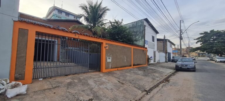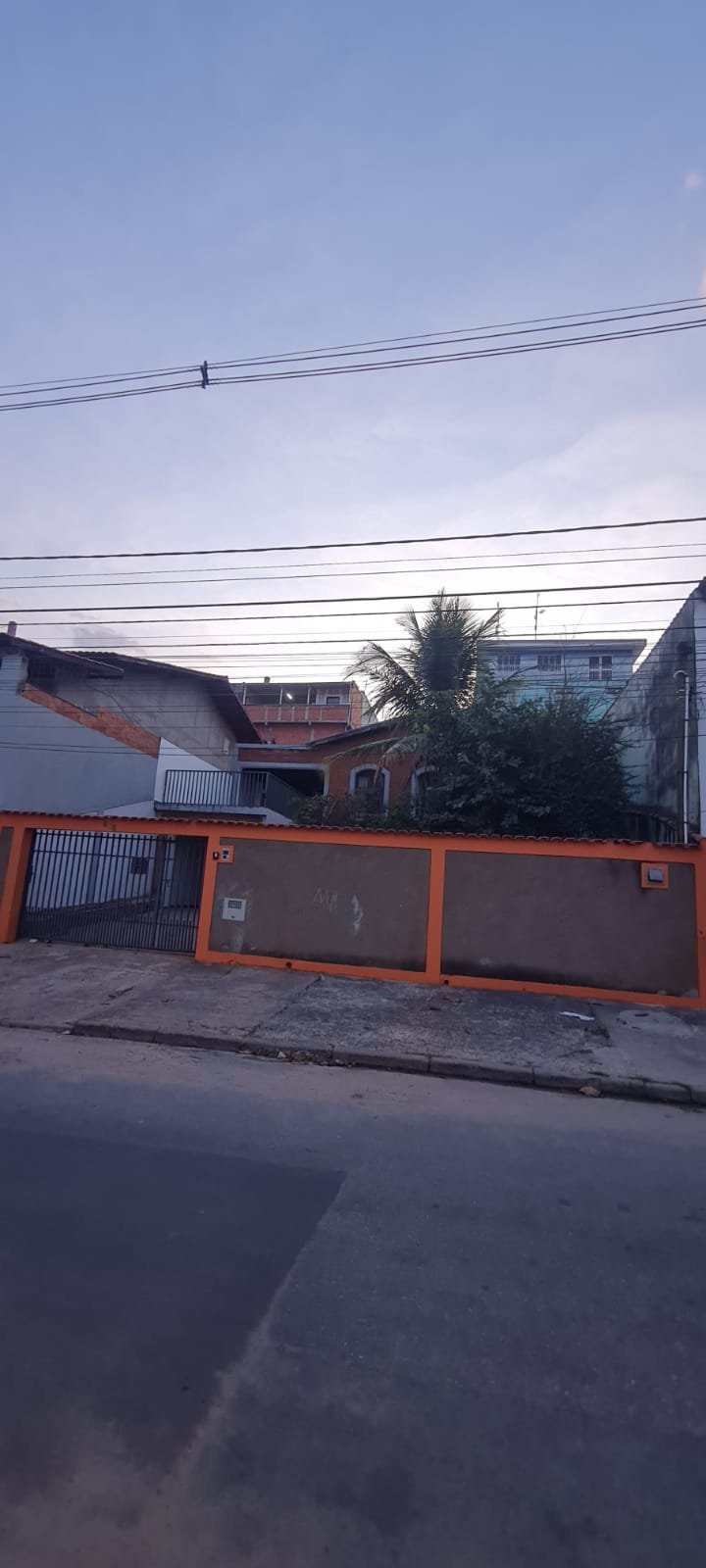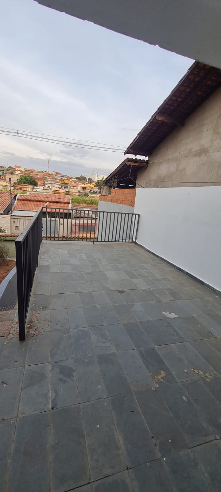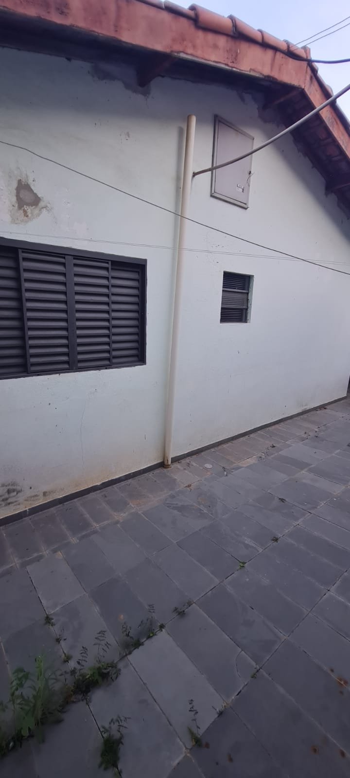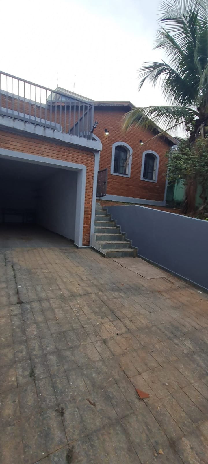 FACHADA:- Calçada com concreto com pequenos buracos, bueiro Sanasa com rachaduras o restante em ordem, muro com filetes recém-pintados de laranja em ordem, pintura na cor marrom com manchas e desgaste, restante em ordem, 01 interfone quebrado, 01 parelho de interfone em ordem, detalhes de telhas sendo 07 telhas romanas quebradas o restante em ordem, 01 portão de grade com a manutenção em ordem, portão social com fechadura cadeado em ordem, todos os portões com pintura na cor cinza com desgaste natural o restante em ordem, piso de ardósia na garagem e entrada da casa com desgaste natural do tempo o restante em ordem, paredes com a pintura na cor cinza recém-pintados em ordem, garagem para 02 veículos pequenos coberta parede na cor branco com sinais de desgaste restante em ordem, 01 lâmpada de led em ordem, escada de acesso piso área de lazer em ardósia em ordem, jardim em ordem, paredes frontal da casa de tijolo a vista com desgaste natural do tempo o restante em ordem, 03 janelas com grades em ordem, 02 arandelas de ferro com vidros e com lâmpadas de led em ordem,