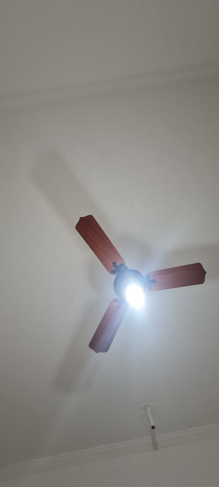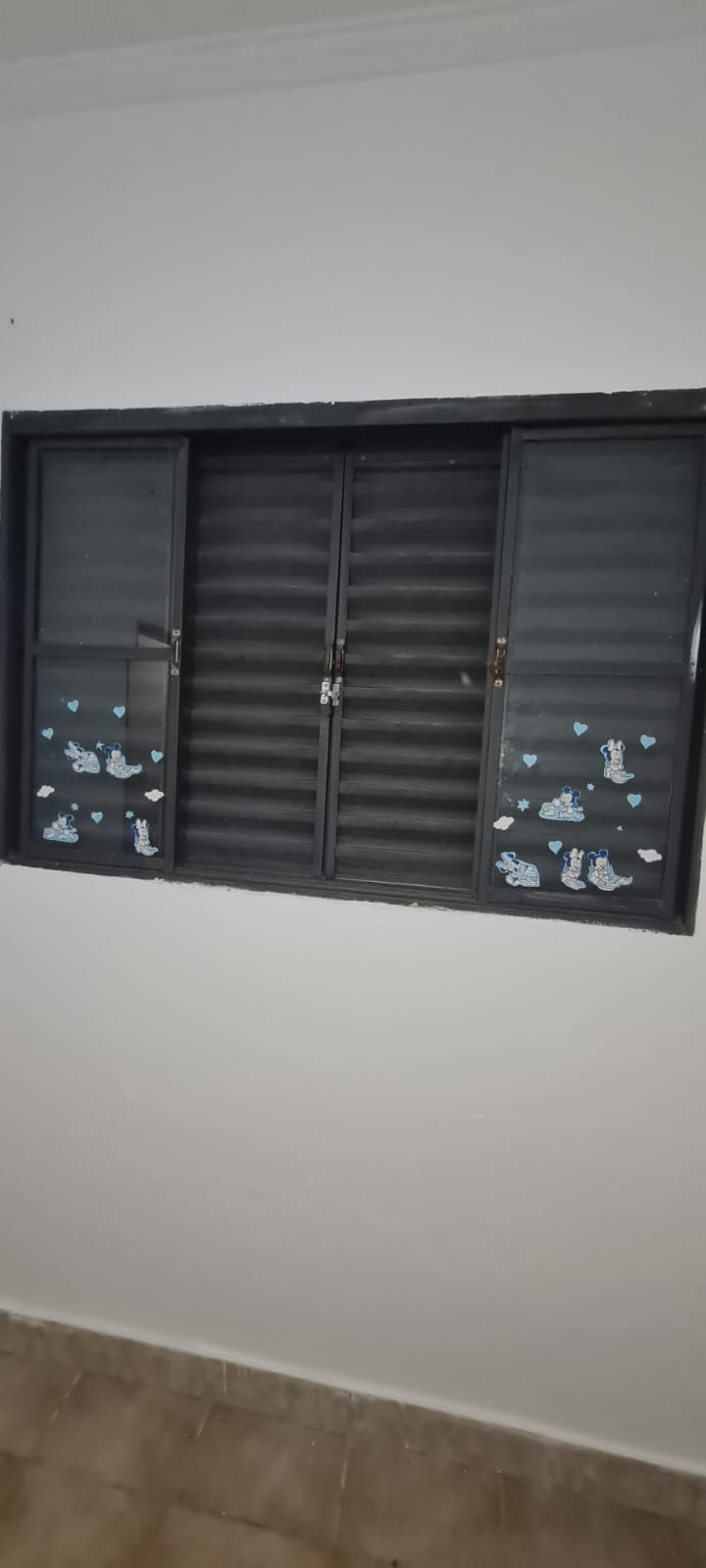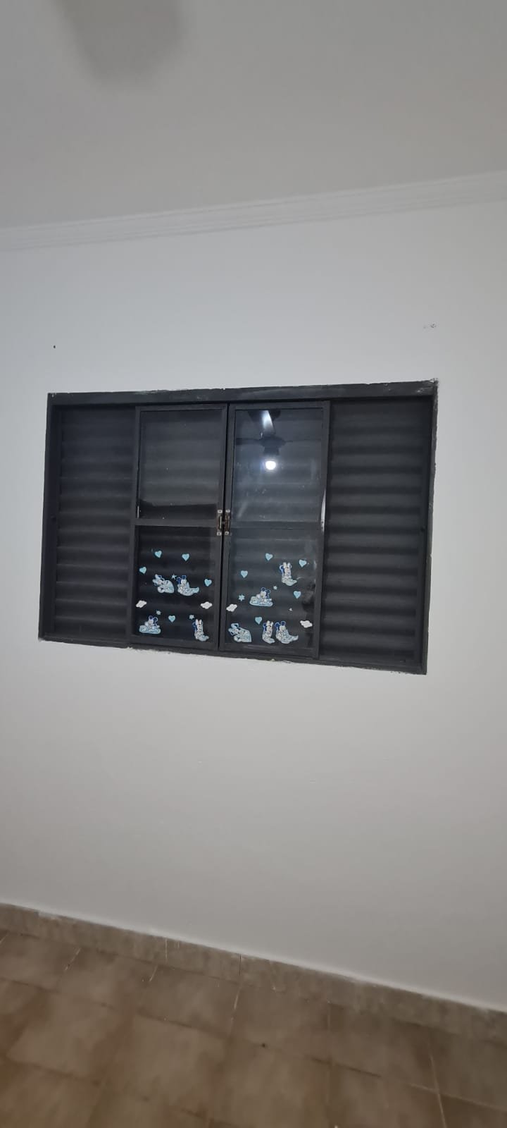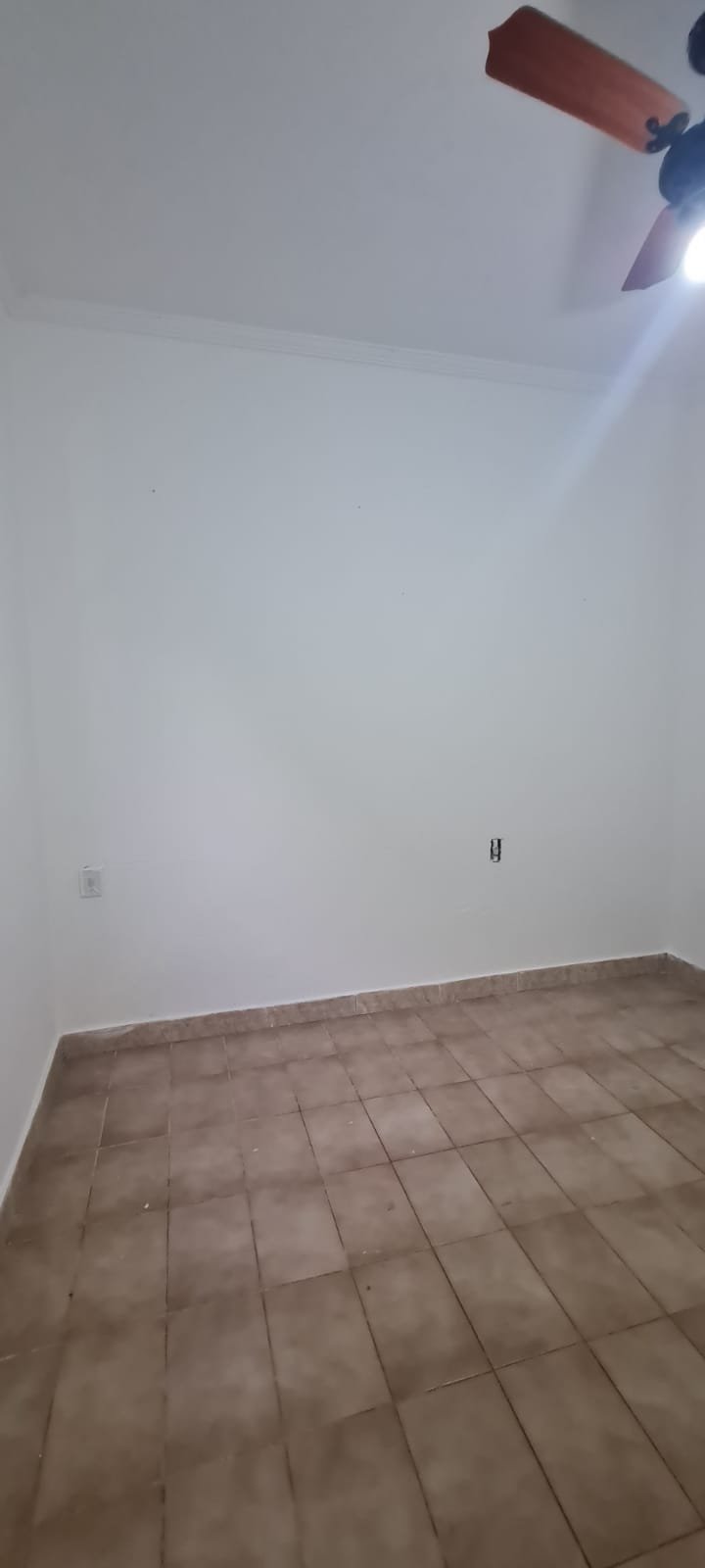 2-QUARTO:- Porta de madeira na cor branco recém pintado em ordem, porta de madeira com maçanetas, dobradiças em ordem, parede na cor branco recém pintado em ordem, teto pintado na cor branca em ordem, 03 tomadas em ordem, ventilador de teto não esta funcionando o restante em ordem, 01 lâmpada led em ordem, 01 interruptor para ventilador e luz em ordem, janela de ferro na cor cinza e grade em ordem, vidro canelado em ordem, piso cerâmico na cor bege em ordem.