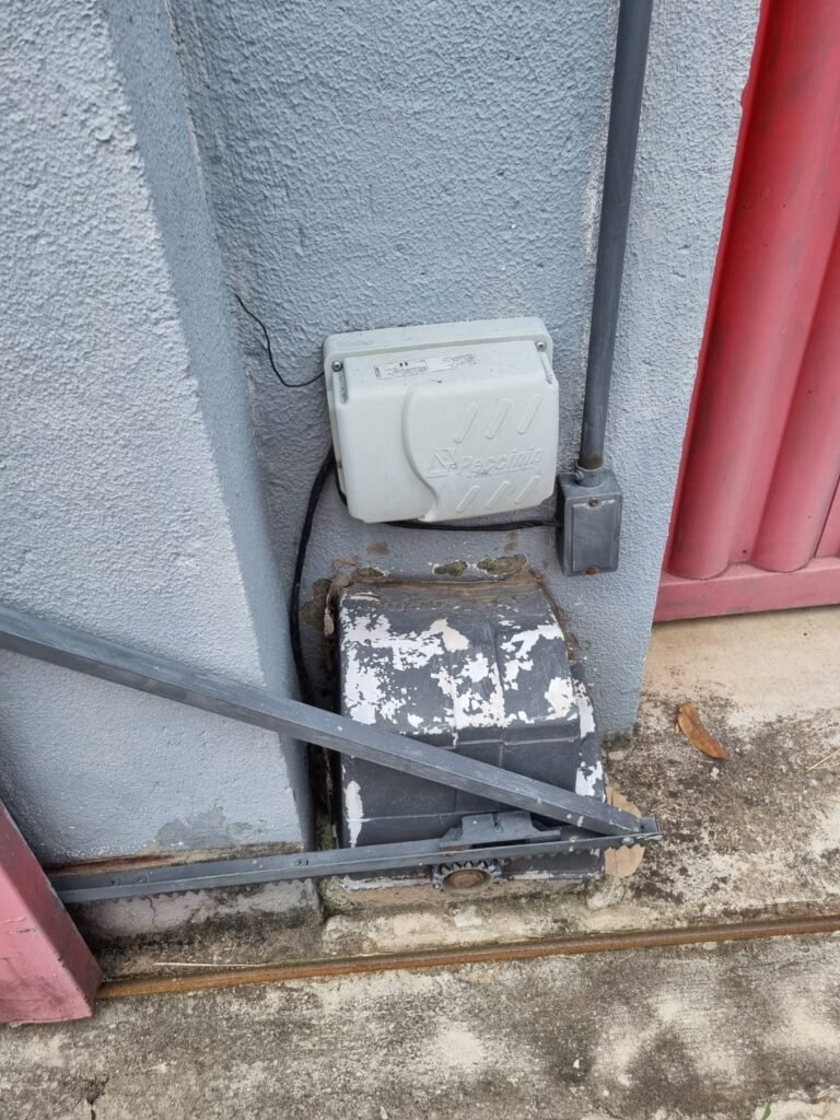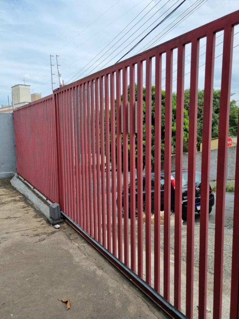 FACHADA:- Calçada rampa de acesso concreto desempenado em ordem, interfone Intelbras, cerca elétrica nos muros da frente e dos fundos, alarme em todas as portas com sensores, portão deslizante e grade de ferro tubular com pintura na cor vermelho em ordem, estacionamento interno com piso concreto desempenado em ordem, fachada do galpão com pintura na cor cinza em ordem, portão de chapa dobrada com pintura na cor vermelho em ordem, padrão de força CPFL em ordem, padrão de água Sanasa em ordem, 02 câmeras em ordem, 02 holofotes led em ordem, 02 portões automatizados 01 com motor PPA e outro com motor Peccinin ambos em ordem, controles remotos em ordem.