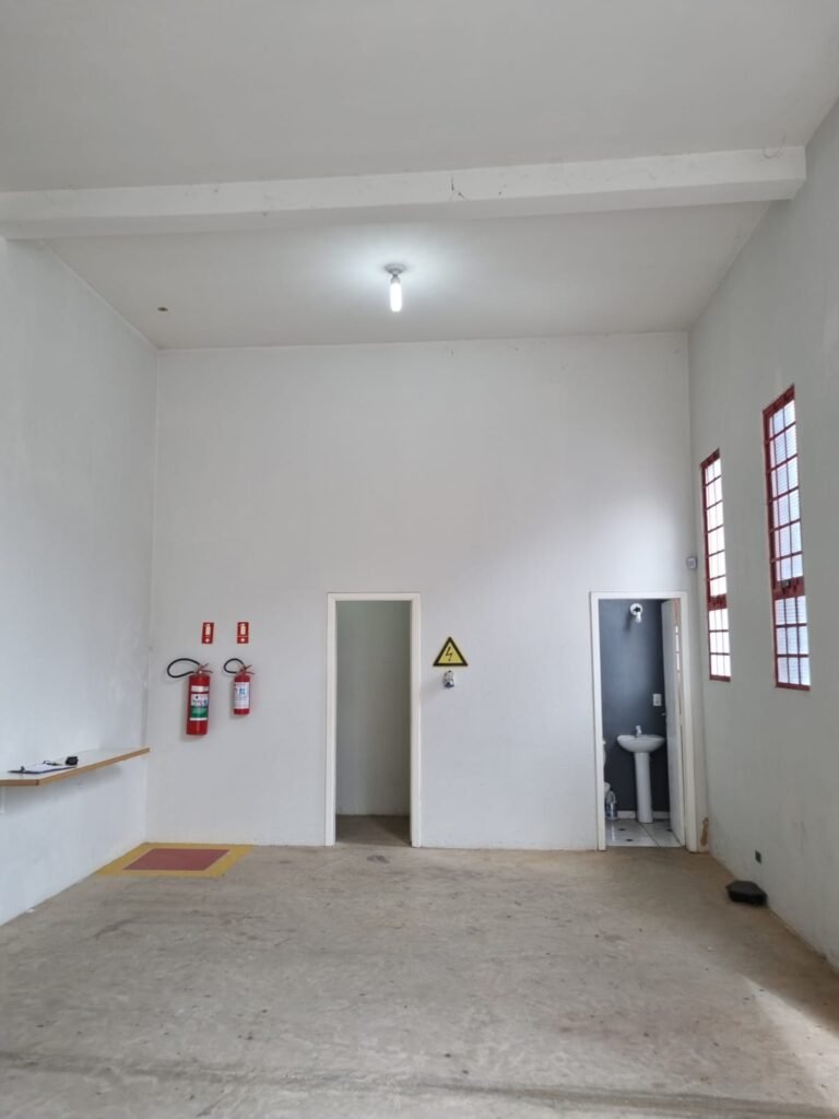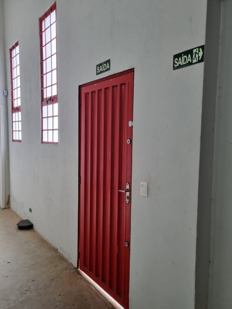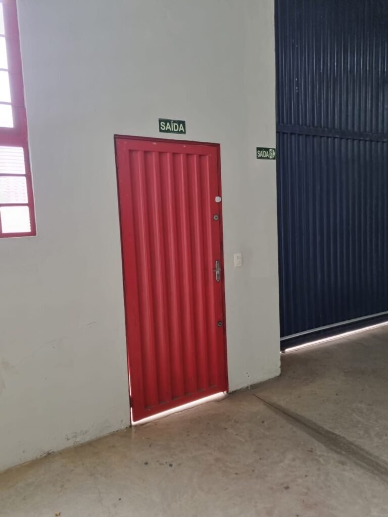 GALPÃO:- Piso concreto usinado polido em ordem, paredes com reboco e pintura látex na cor branco gelo em ordem, telhado estrutura de ferro com pintura na cor azul em ordem, telhas galvanizadas em ordem, 06 lustres em ordem, 07 lâmpadas fluorescentes em ordem, 03 soquetes em ordem, 03 interruptores em ordem, 10 tomadas em ordem, 08 espelhos de luz em ordem, 01 tomada stek em ordem, 02 vitrôs basculantes em ordem, 20 vidros em ordem, porta social chapa dobrada com pintura na cor vermelha em ordem, portão deslizante chapa dobrada com pintura interna na cor cinza e pintura externa na cor vermelha em ordem, roldanas em ordem, sinalização de emergência em ordem, 03 câmeras intelbras em ordem, porta fundos chapa dobrada na cor vermelha sem chaves tetra restante em ordem, 03 extintores em ordem sendo 02 pó químico 4 kg 20 b:c e 01 água 10 litros 2-a em ordem.