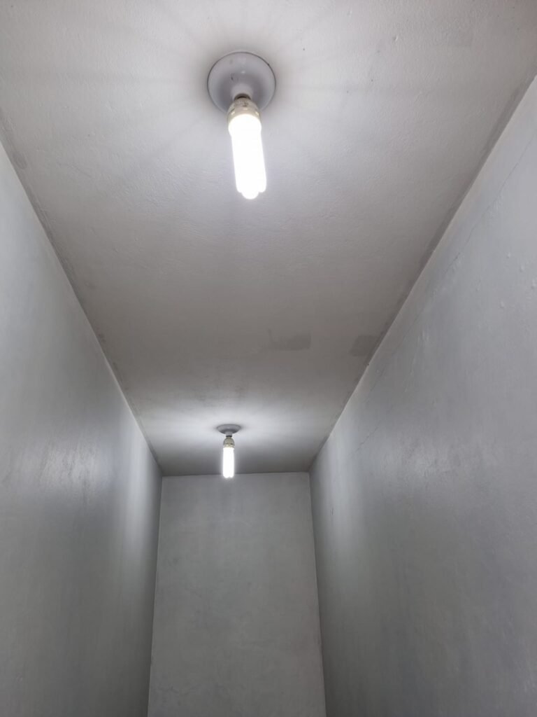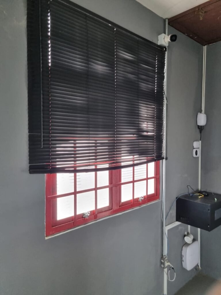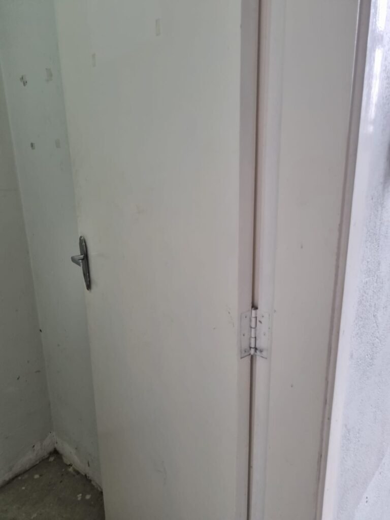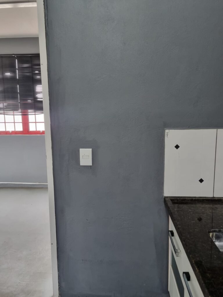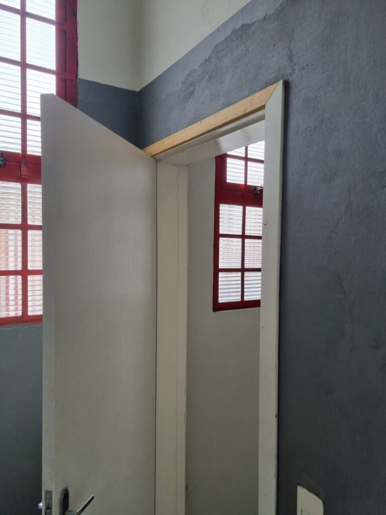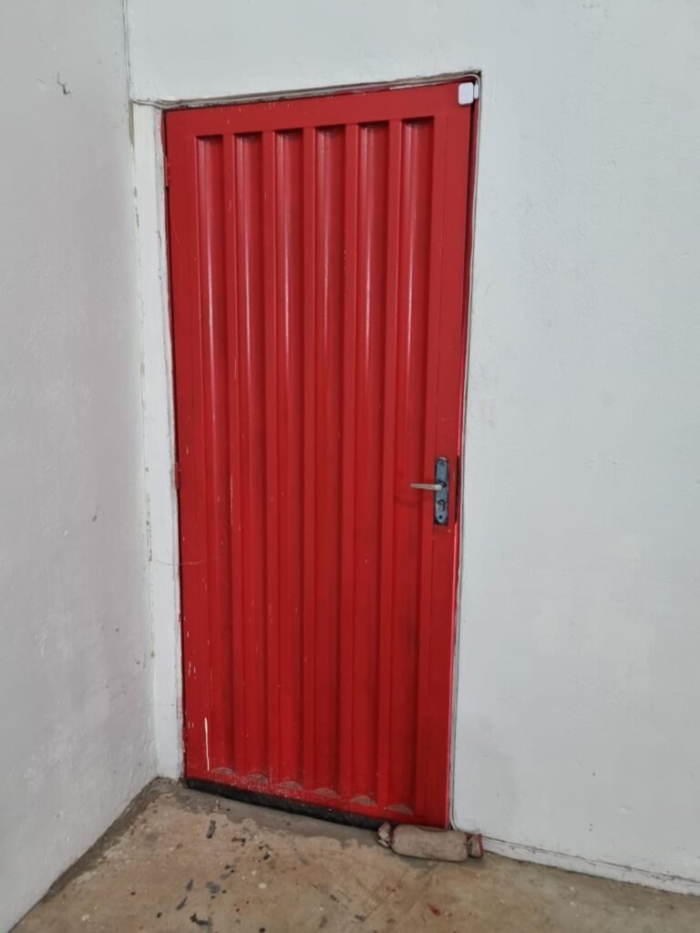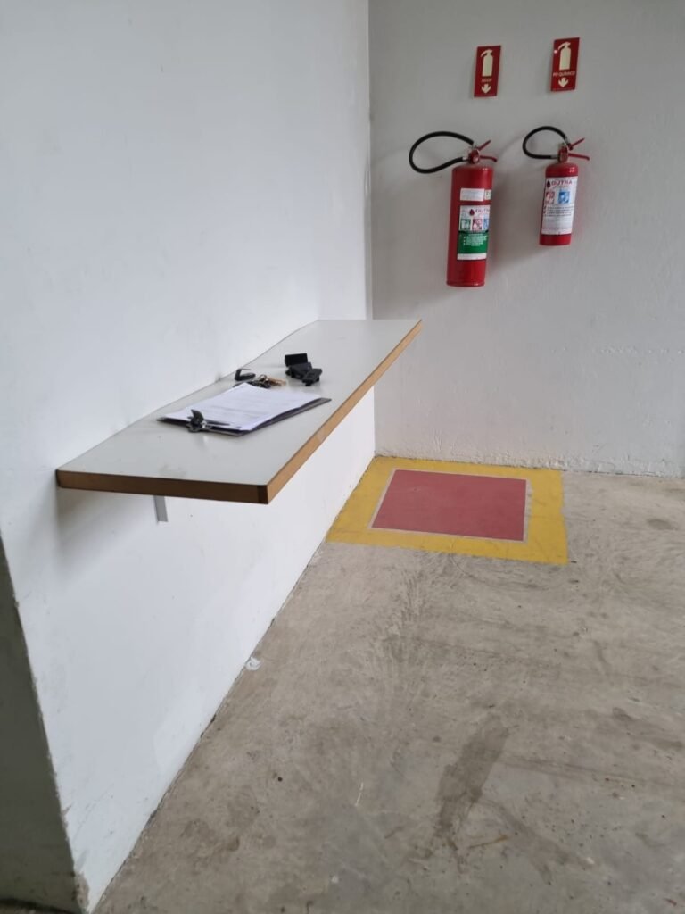 ADM:- Piso concreto desempenado com pintura nova com tinta piso da cor cinza em ordem, paredes com pintura na cor cinza em ordem, teto com pintura na cor branco em ordem, 04 soquetes com 04 lâmpadas LED bulbo em ordem, 04 vitrô basculante com pintura na cor vermelho em ordem, 04 puxadores em ordem, 02 vitrô de correr com pintura na cor vermelho em ordem, travas em ordem, 53 vidros em ordem, porta de madeira com pintura na cor branco em ordem, 02 maçanetas em ordem, fechadura yale sem chave, 05 persianas horizontais em ordem, 11 espelhos de luz em ordem, 02 interruptores em ordem, 18 tomadas em ordem, caixa de disjuntores com 05 disjuntores alumbra sendo (01) C16/1, (02) C52/2, (01) C40/2 e (01) C63/2, 01 sensor de presença, 01 câmera intelbras, 01 central de alarme, 01 DVR MHD2 MOB.