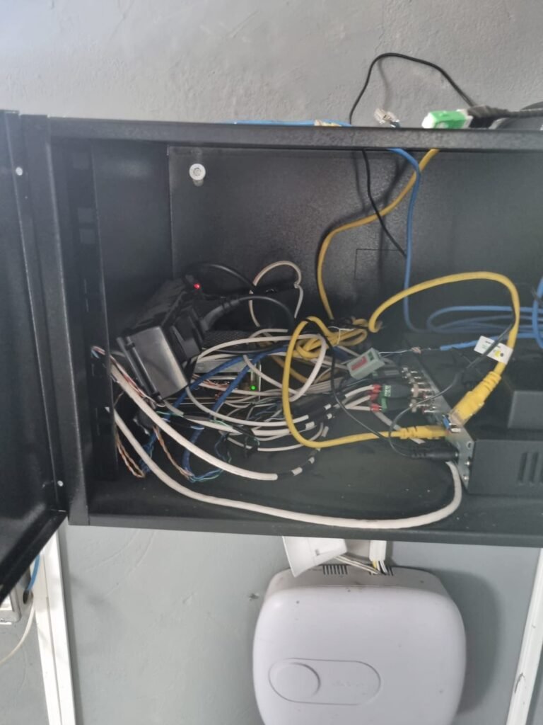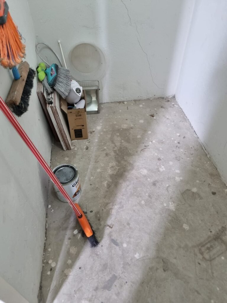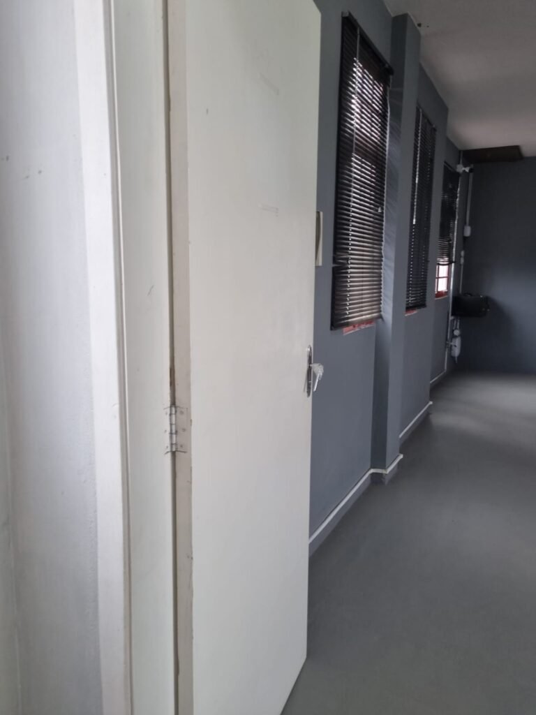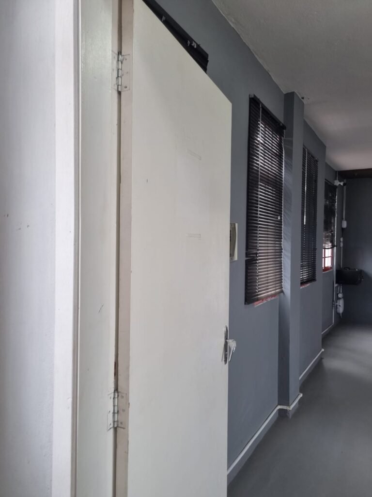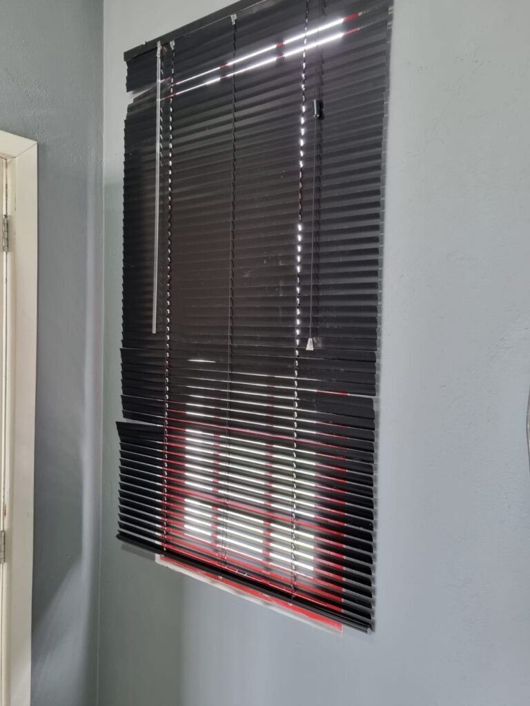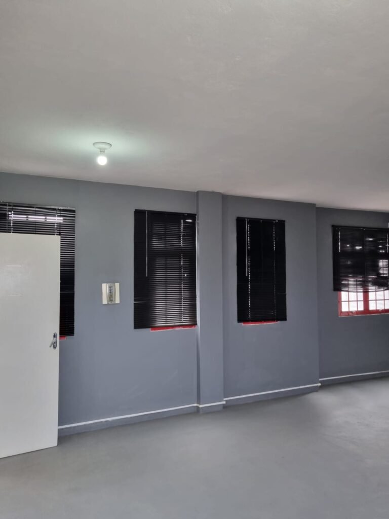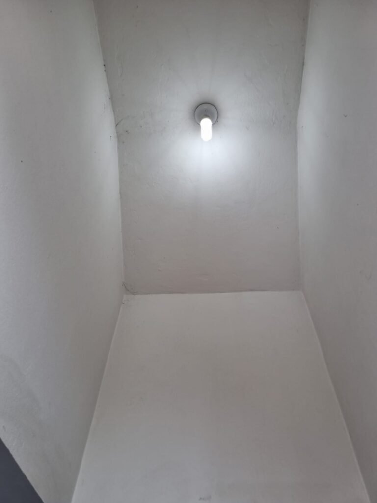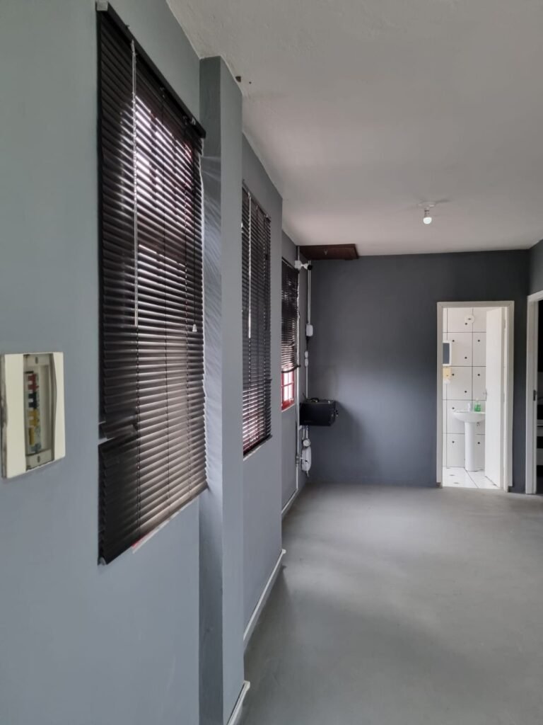 ADM:- Piso concreto desempenado com pintura nova com tinta piso da cor cinza em ordem, paredes com pintura na cor cinza em ordem, teto com pintura na cor branco em ordem, 04 soquetes com 04 lâmpadas LED bulbo em ordem, 04 vitrô basculante com pintura na cor vermelho em ordem, 04 puxadores em ordem, 02 vitrô de correr com pintura na cor vermelho em ordem, travas em ordem, 53 vidros em ordem, porta de madeira com pintura na cor branco em ordem, 02 maçanetas em ordem, fechadura yale sem chave, 05 persianas horizontais em ordem, 11 espelhos de luz em ordem, 02 interruptores em ordem, 18 tomadas em ordem, caixa de disjuntores com 05 disjuntores alumbra sendo (01) C16/1, (02) C52/2, (01) C40/2 e (01) C63/2, 01 sensor de presença, 01 câmera intelbras, 01 central de alarme, 01 DVR MHD2 MOB.