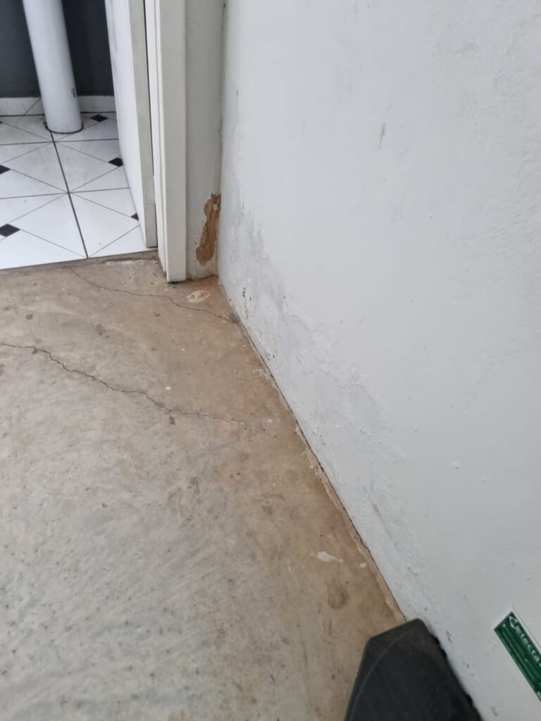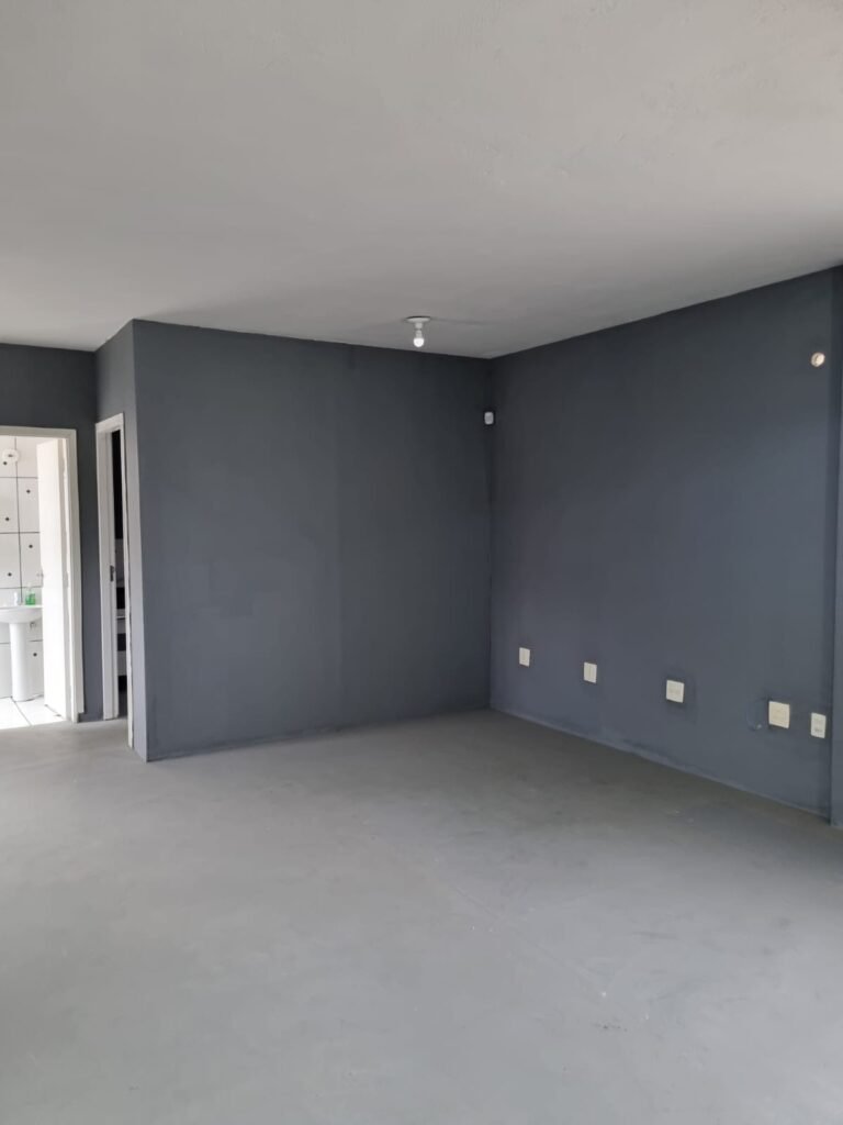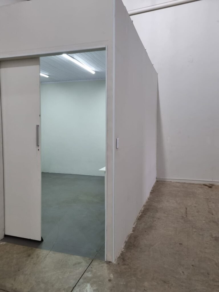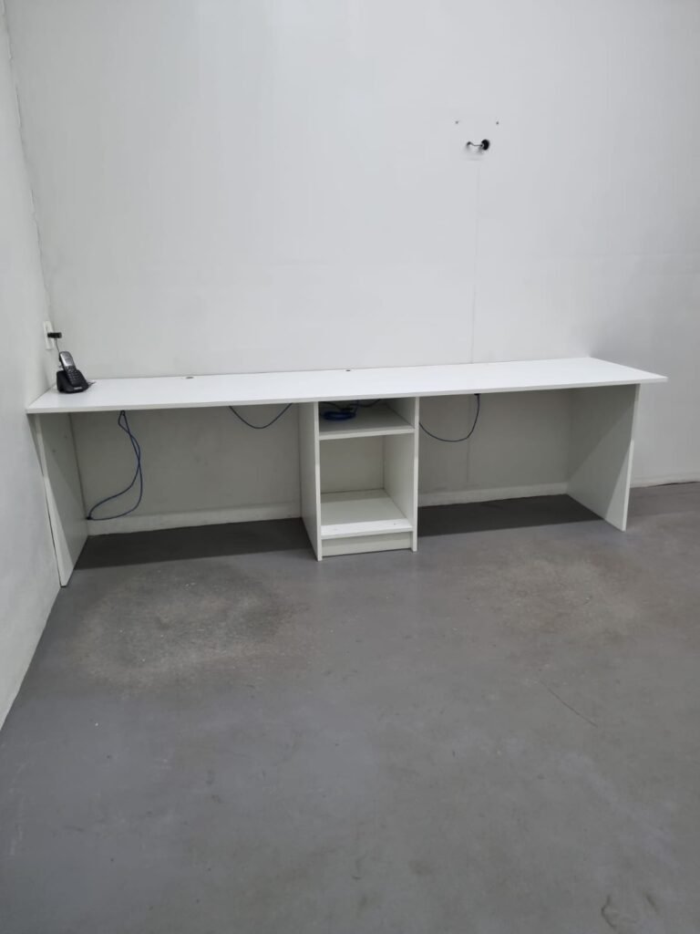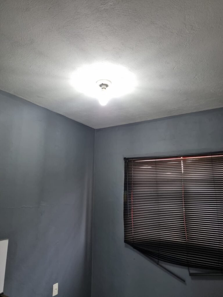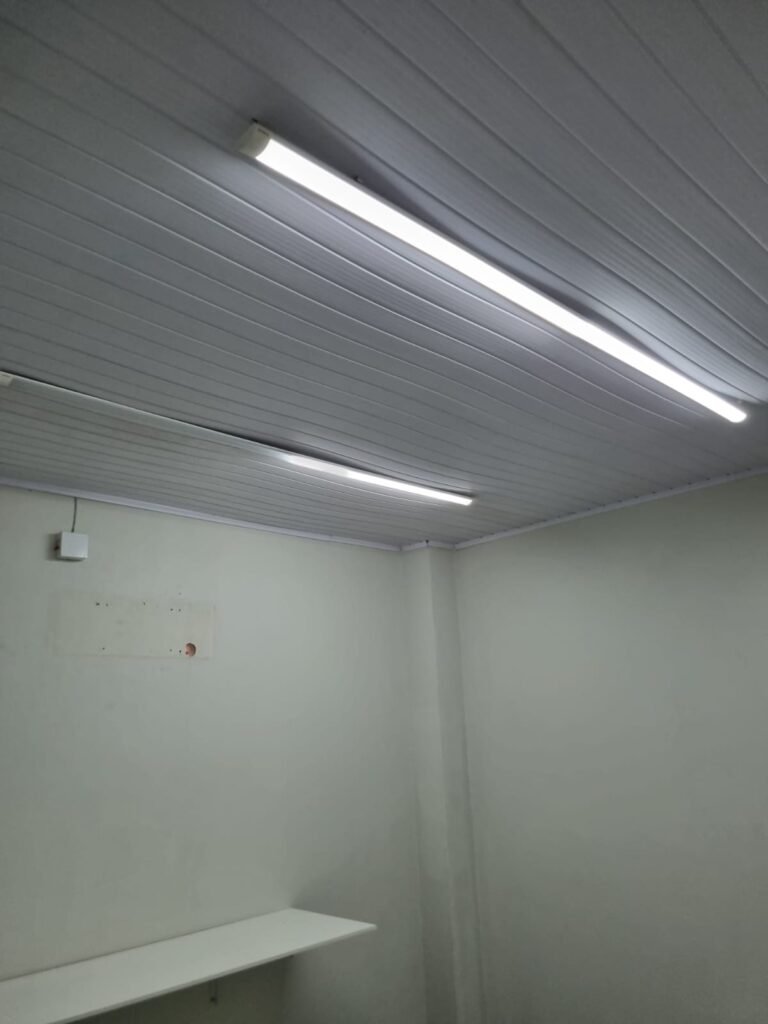 CÔMODO DRYWALL:- Piso concreto usinado com pintura na cor cinza em ordem, paredes com pintura na cor branco gelo em ordem, 03 bancadas em mdf, parede 01 buraco circular para ar condicionado e 06 buracos com bucha, 01 aparelho interfone Intelbras, 02 luminárias led tubular em ordem, porta em mdf em ordem, 01 puxador de correr.