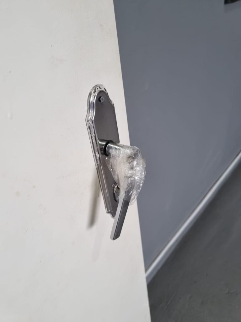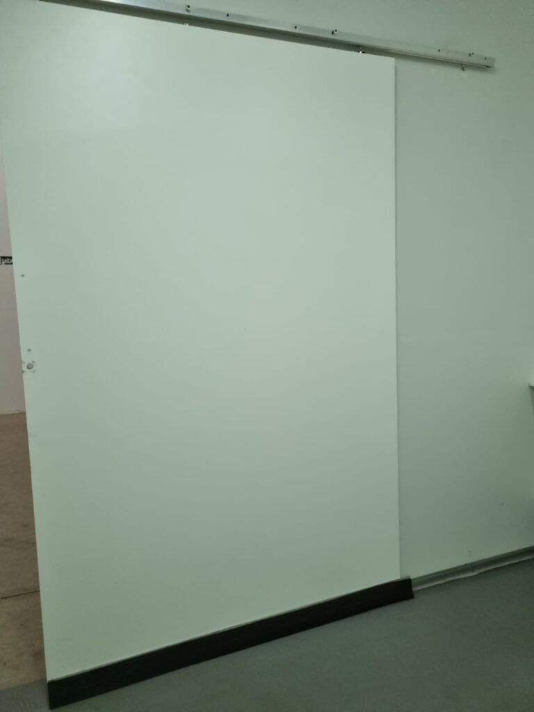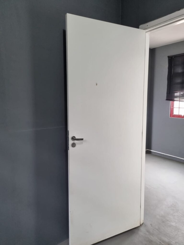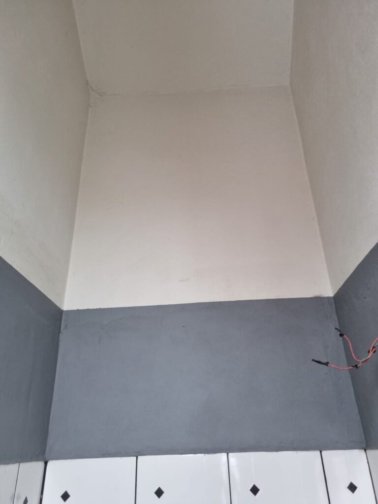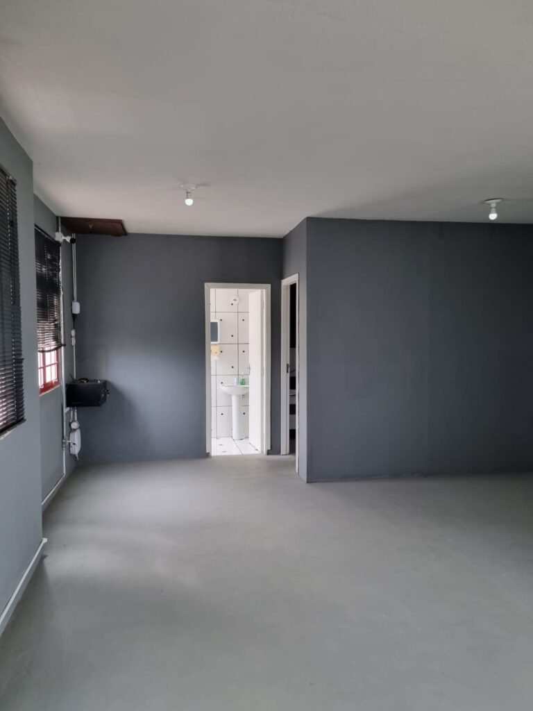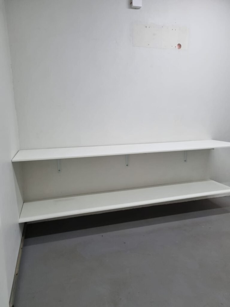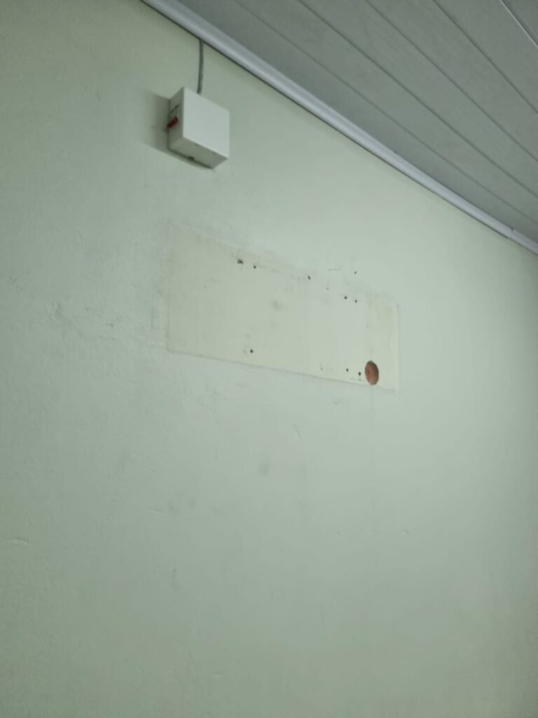 CÔMODO DRYWALL:- Piso concreto usinado com pintura na cor cinza em ordem, paredes com pintura na cor branco gelo em ordem, 03 bancadas em mdf, parede 01 buraco circular para ar condicionado e 06 buracos com bucha, 01 aparelho interfone Intelbras, 02 luminárias led tubular em ordem, porta em mdf em ordem, 01 puxador de correr.