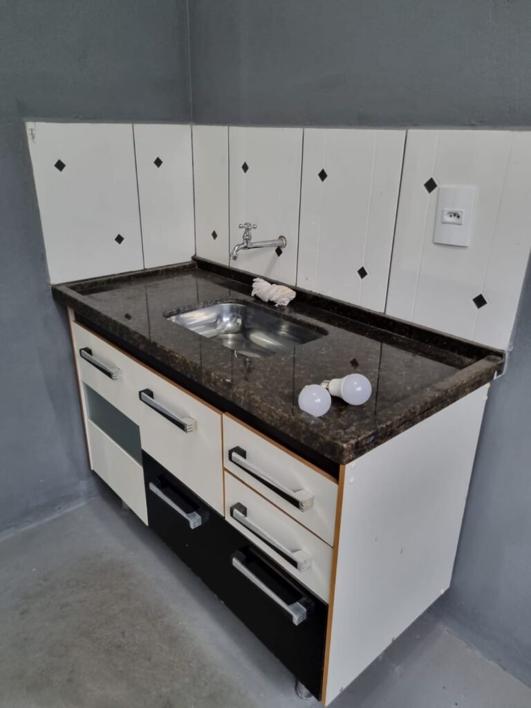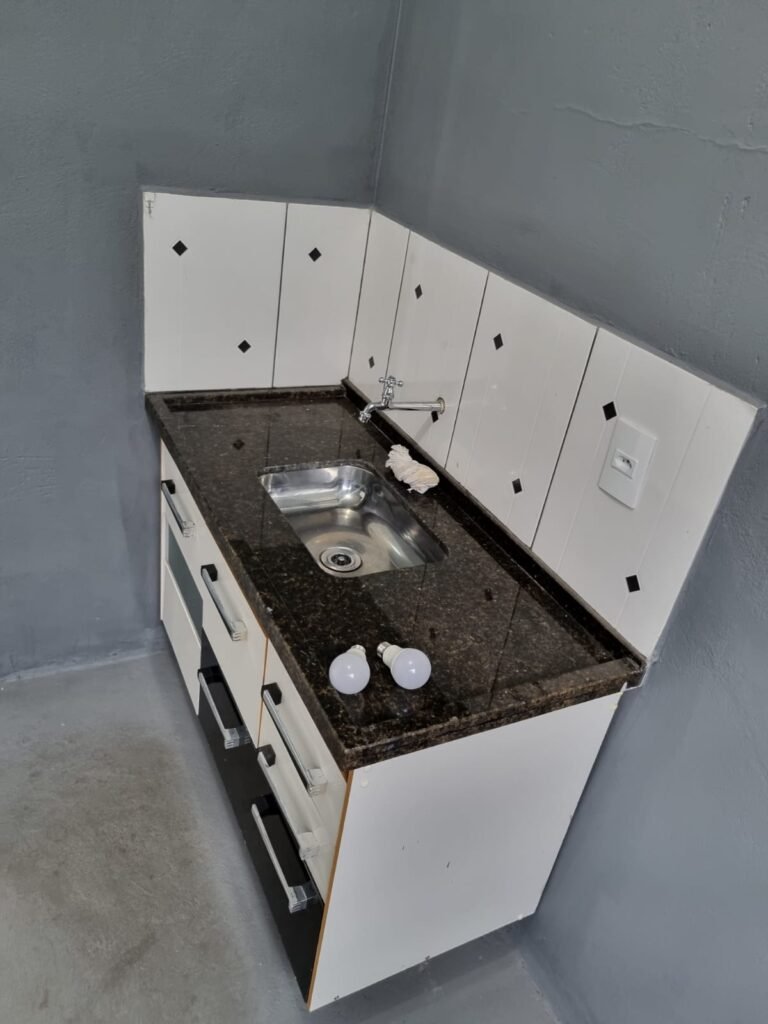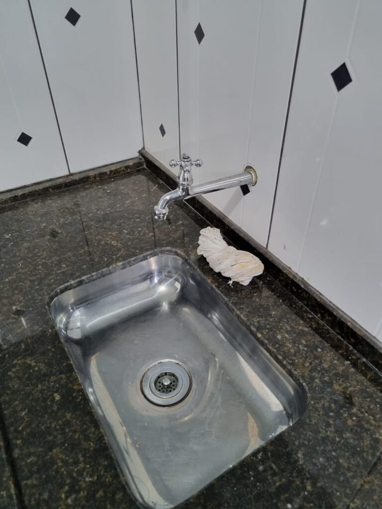 COPA:- Piso concreto desempenado com pintura nova com tinta piso da cor cinza em ordem, paredes com pintura na cor cinza em ordem, teto com pintura na cor branco neve em ordem, 01 soquete com lâmpada fluorescente em ordem, 02 interruptores em ordem, 01 tomada em ordem, 03 espelhos de luz em ordem, porta de madeira em ordem, maçanetas em ordem, fechadura e 02 chaves yale em ordem, vitrô de correr com pintura na cor vermelho em ordem, 18 vidros em ordem, 01 persiana horizontal em ordem, 01 pia de mármore em ordem, cuba inox em ordem, torneira cromada em ordem, 01 sifão sanfonado em ordem, gabinete MDF com formica descolando em algumas partes restante em ordem, 02 portas, 03 gavetas e o5 puxadores em ordem, 04 dobradiças em ordem, 01 prateleira em ordem.