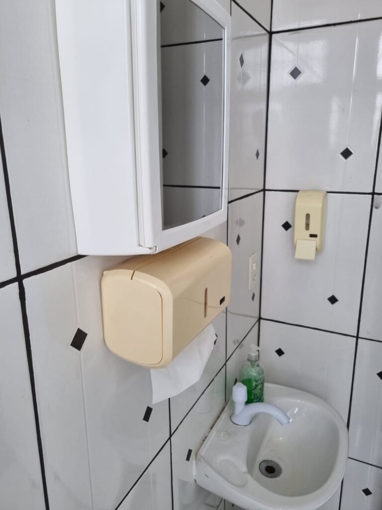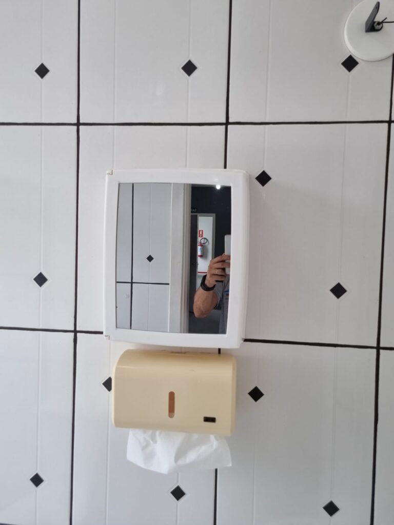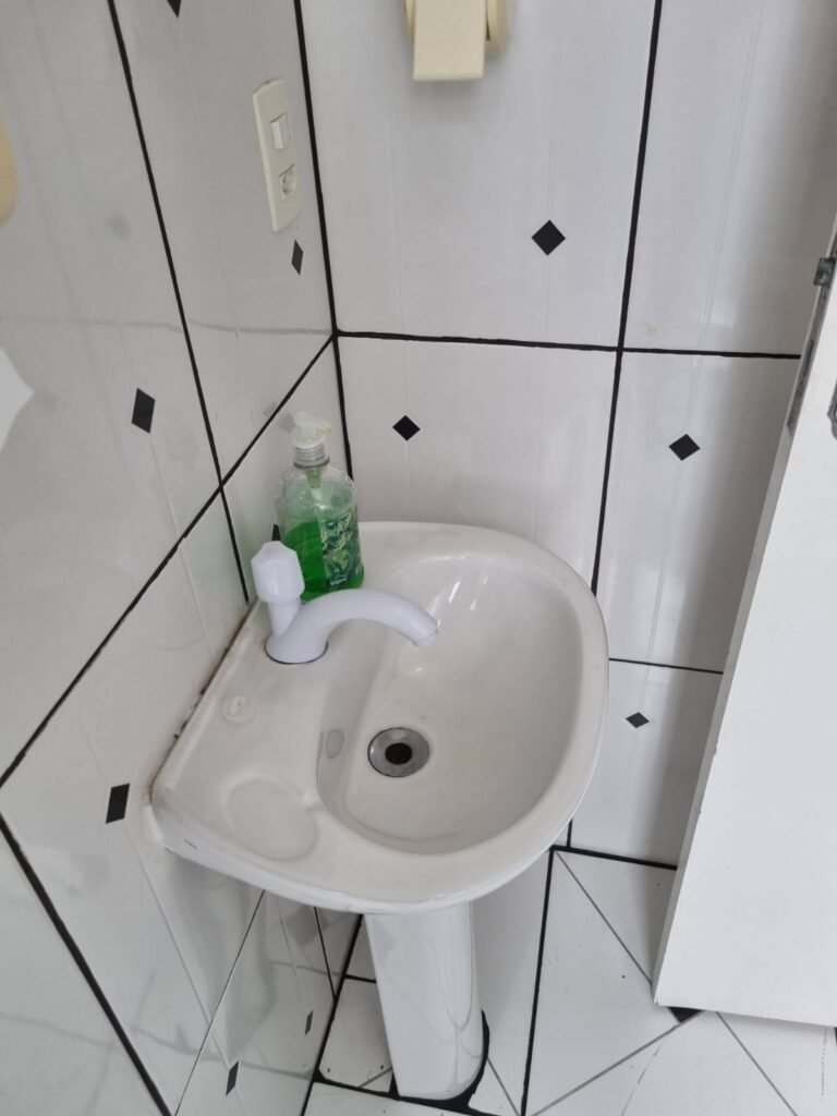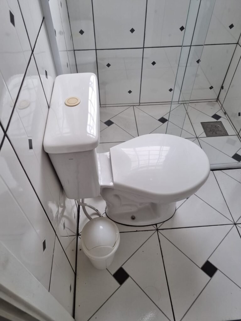 W.C. 2:- Piso frio cerâmico em ordem, azulejo até o teto em ordem, 01 soquete em ordem, 02 interruptores em ordem, , 01 tomada em ordem, 02 espelhos de luz em ordem, 01 spot na cor branco sem lâmpada, 01 ralo com tampa inox e desentupido em ordem, porta de madeira com pintura na cor branco em ordem, 02 maçanetas em ordem fechadura sem chave, 01 vitrô basculante com pintura na cor vermelho em ordem, 10 vidros em ordem, box blindex transparente em ordem, armário de pequeno porte com espelho em ordem, registro com canopla restante em ordem, conjunto lavatório e coluna cerâmica na cor branco em ordem, torneira em ordem, conjunto vaso sanitário e caixa acoplada de descarga cerâmica na cor branca em ordem.
