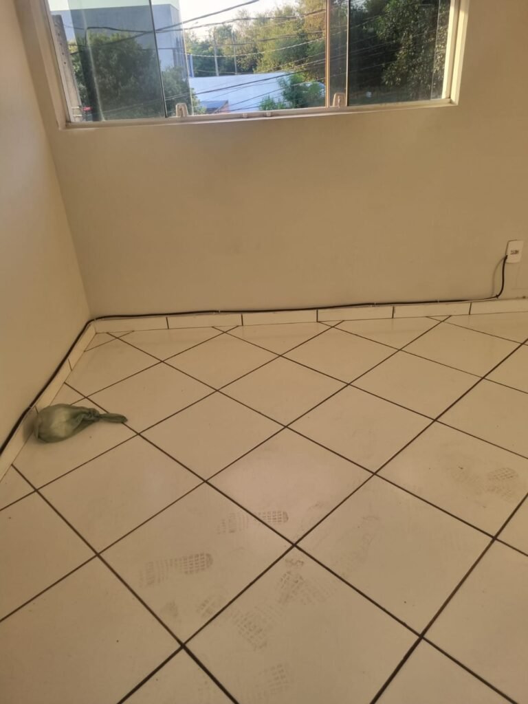 ESCRITÓRIO SUPERIOR-: Tampar buracos com bucha, retirar ar condicionado e tampar buracos, retirar fiação externa, trocar 02 espelhos de luzes que foram cortados, efetuar limpeza e pintura.