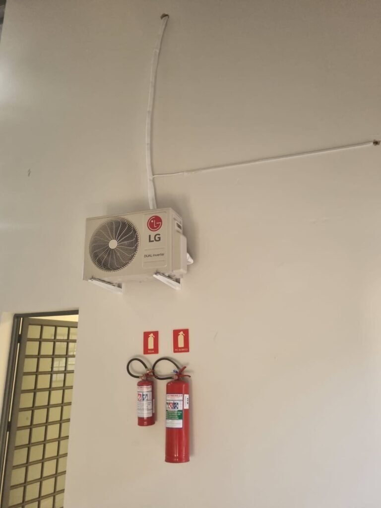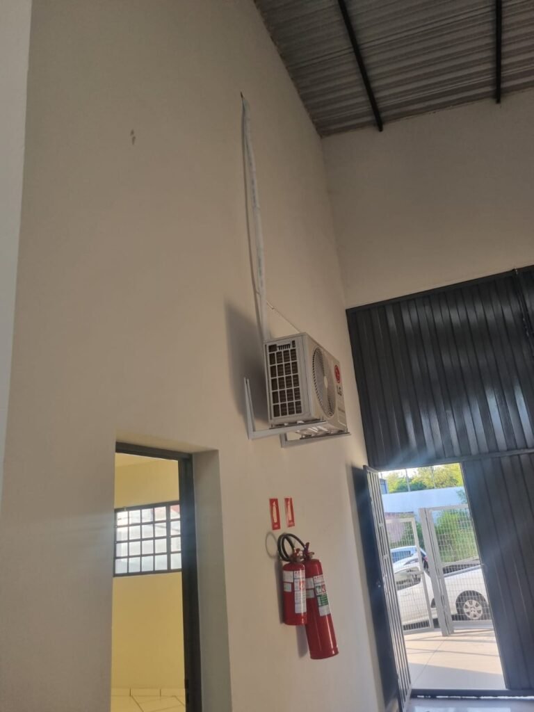 GALPÃO-: Efetuar troca de 02 lâmpadas que estão queimadas, retirar maquina do ar condicionado, tampar os buracos e efetuar a pintura, limpeza geral.