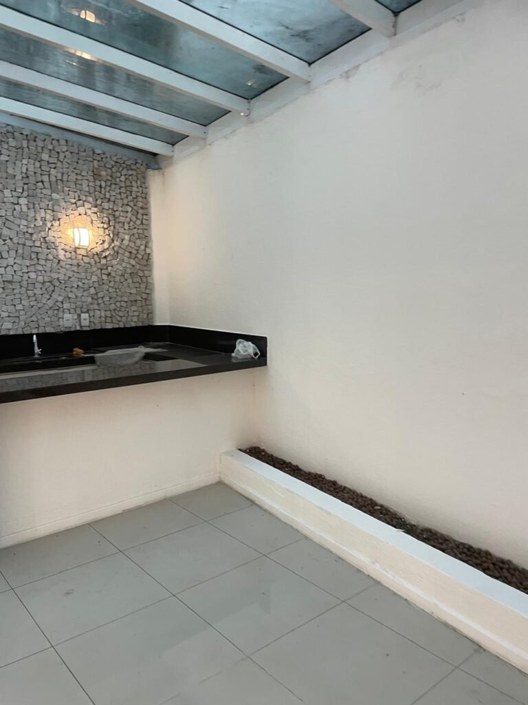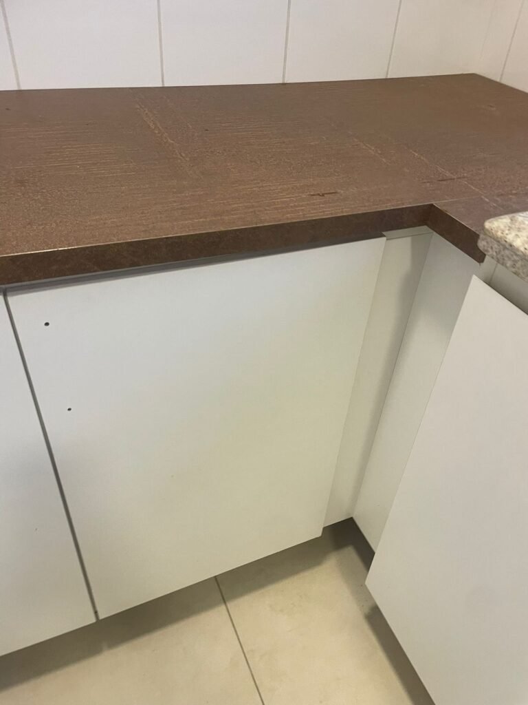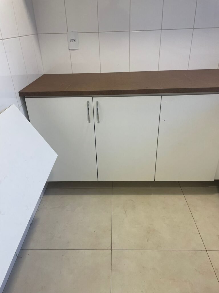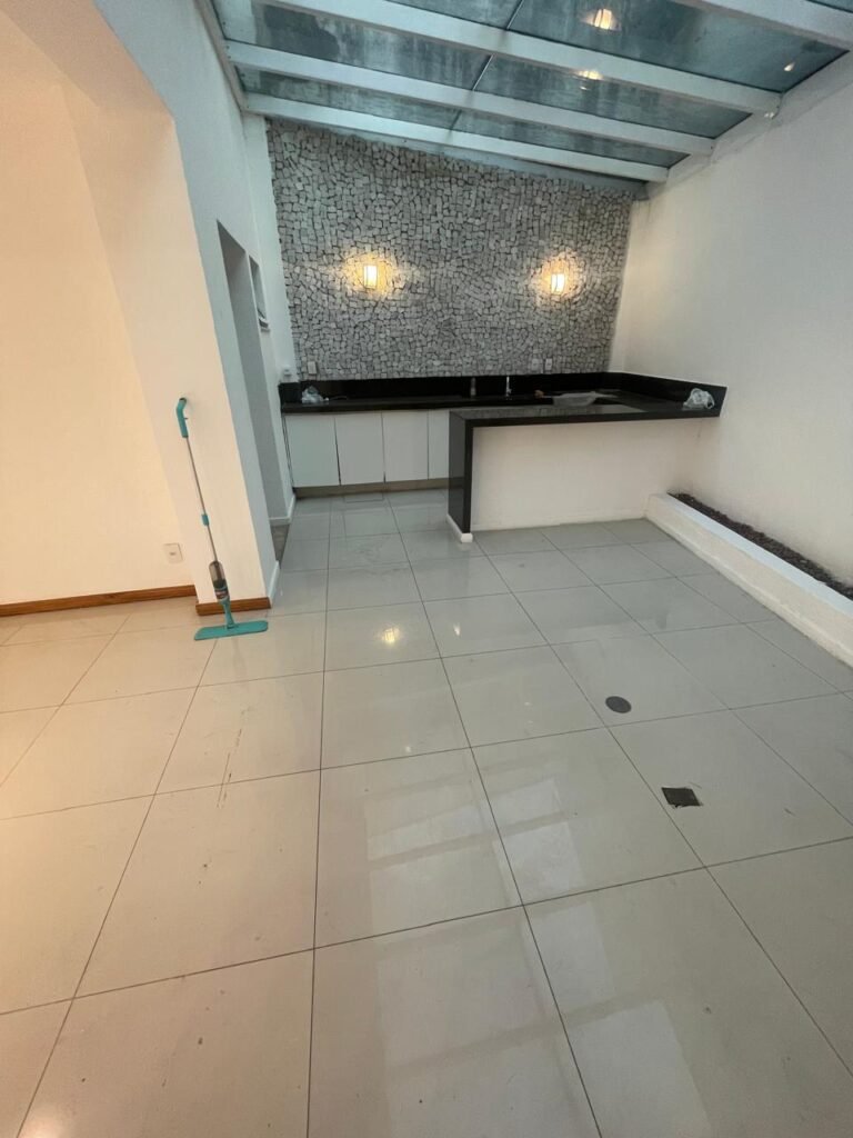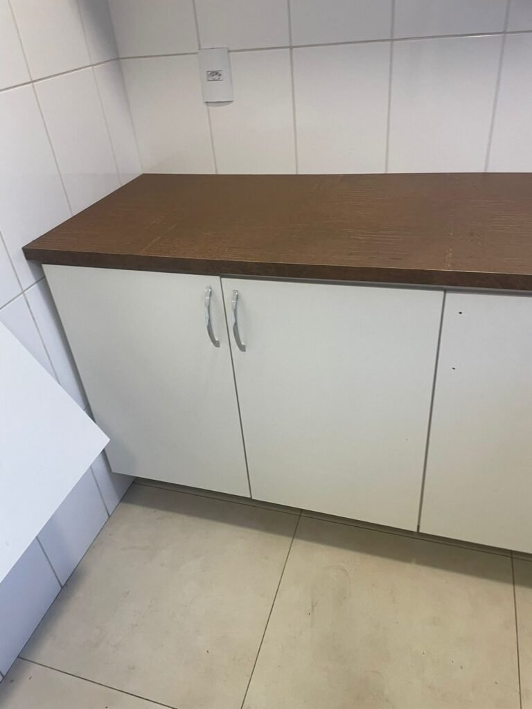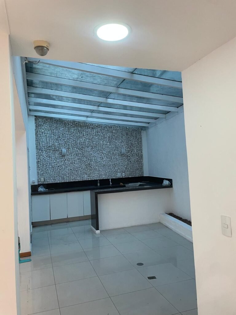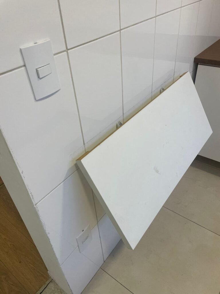 COPA-: 01 porta social de vidro blindex em ordem, com fechadura em ordem, piso revestido de pisos de porcelanato em ordem, paredes revestidas até o teto de azulejos em ordem, 01 bancada dobrável de mdf em ordem, 01 interruptor em ordem, 05 tomadas (01 delas 220v, restante 110v ) e 01 espelho cego, gabinete de mdf em L com 03 portas, 01 porta está sem puxador, móvel com desgastes naturais e restante em ordem, pia com pedra de granito em ordem, buraco para instalação de cooktop, cuba de inox em ordem, gabinete de mdf com 04 portas, todas com puxador embutido em ordem, 03 vitrôs basculantes com esquadrias de alumínio na cor branco em ordem, com 01 fechadura cada em ordem, e 01 folhas de acrílico em ordem, 01 gabinete suspenso de mdf com 06 portas, todas com puxadores em ordem e 02 delas com pistões pneumáticos, teto com forro de gesso em ordem e com pintura na cor branco neve em ordem, luminárias embutidas com leds em ordem.