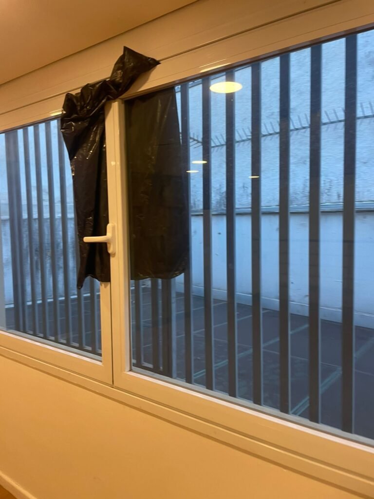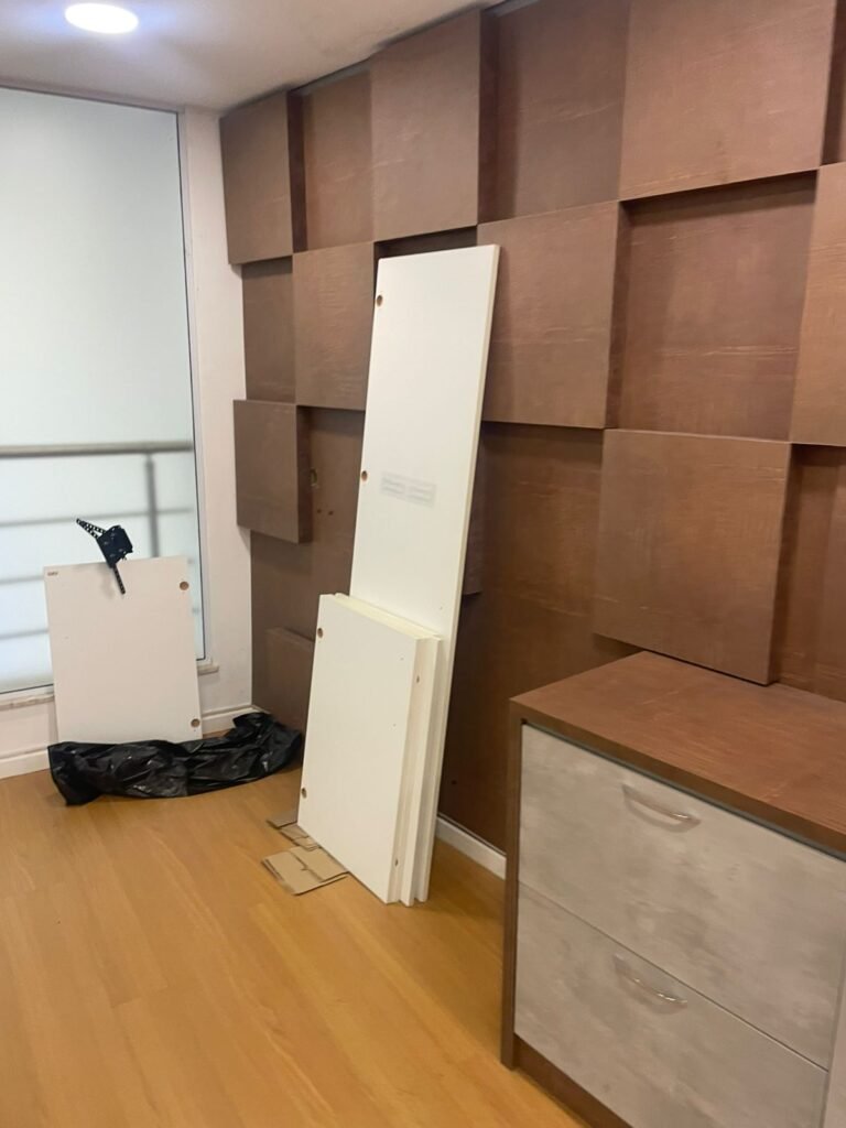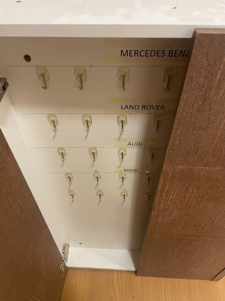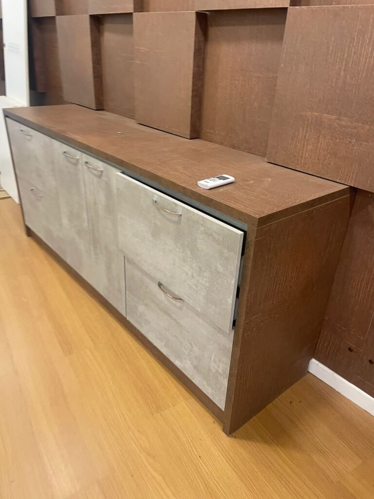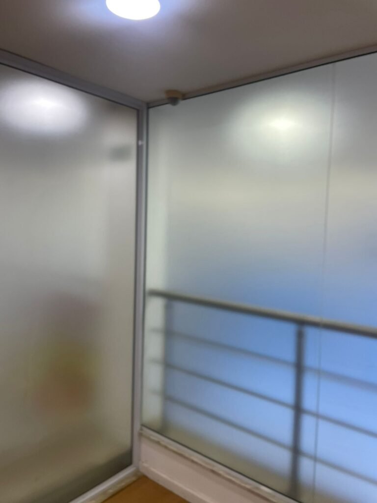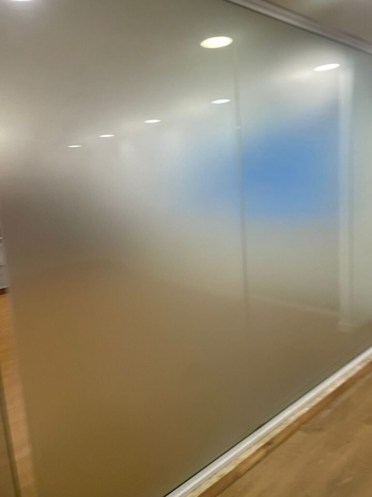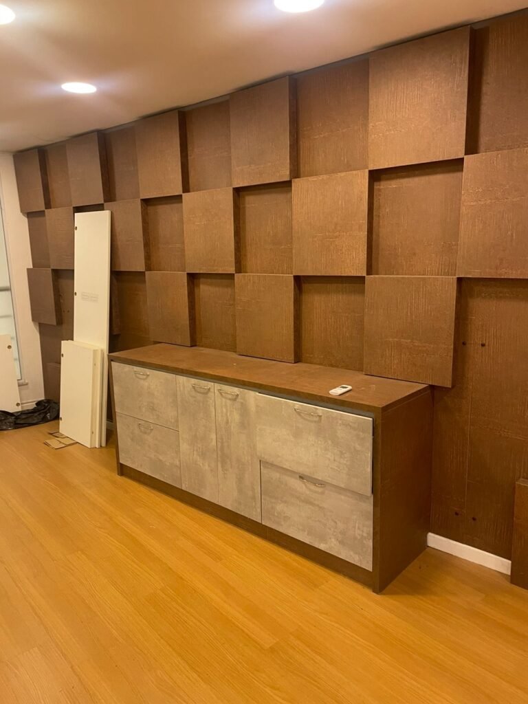 ESCRITÓRIO-: 01 Porta social de vidro temperado em ordem, com 01 fechadura em ordem e com chave, fechadura eletrônica marca Fingerprint não testadas, 08 vidro blindex com insulfilme jateado em ordem, piso revestido em laminado de madeira em ordem, rodapés revestidos de madeira com pintura na cor branco com desgastes naturais e restante em ordem, paredes com pintura na cor branco neve com manchas e desgastes naturais, 01 janela basculante com esquadrias de alumínio na cor branco, com 01 fechadura em ordem, com 02 folhas de vidro blindex em ordem, grade de proteção de ferro em ordem com 01 fechadura com cadeado em ordem, parede com revestimento em MDF em ordem, 01 gabinete de MDF com 04 gavetas em ordem e 02 portas, ambos com puxadores em ordem, 01 porta chaves de Mdf em ordem, 02 interruptores, 02 tomadas, 04 espelho cegos, 01 câmera não testada, 10 luminárias embutidas todas com Led em ordem, 02 trocador de ar não testados, 01 entrada para alçapão.