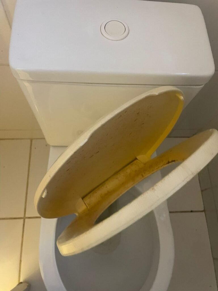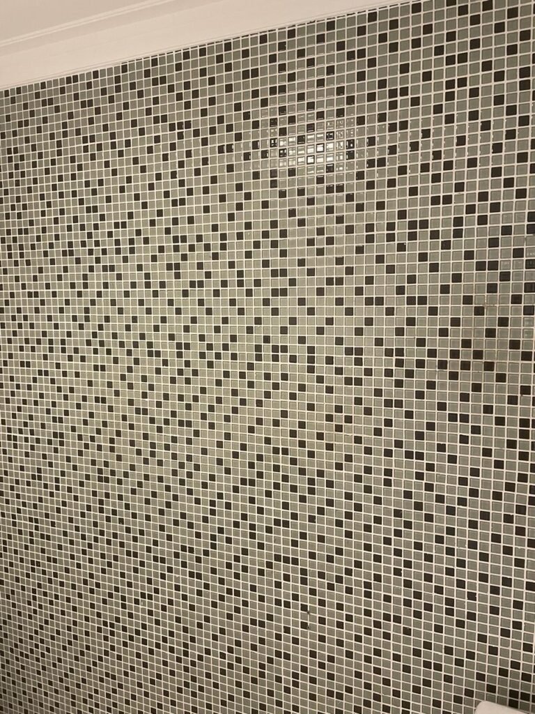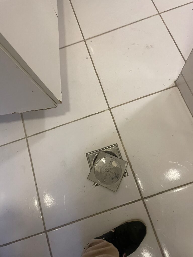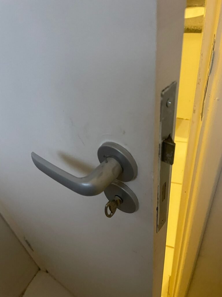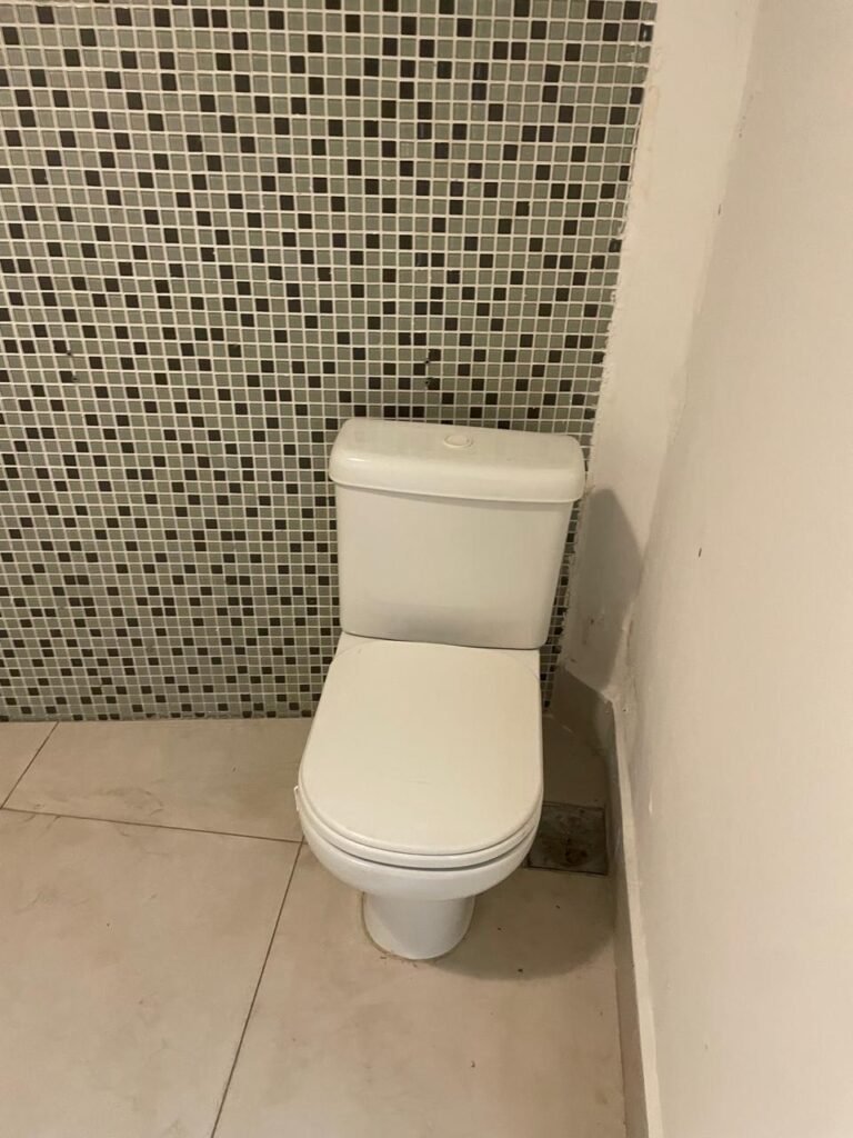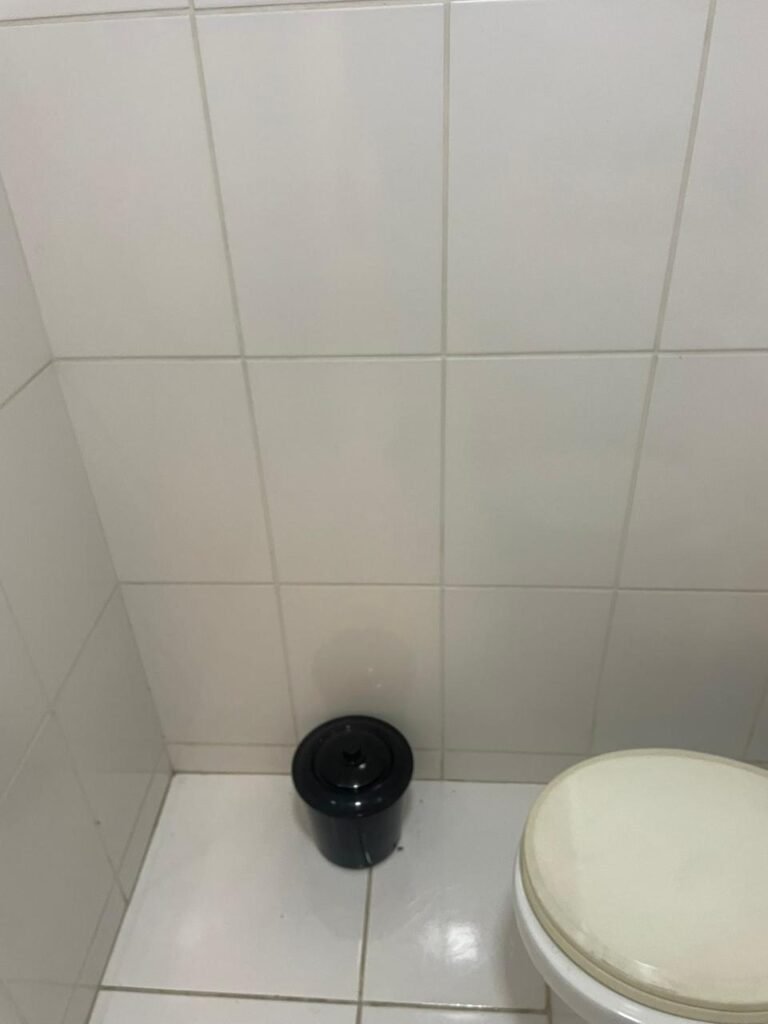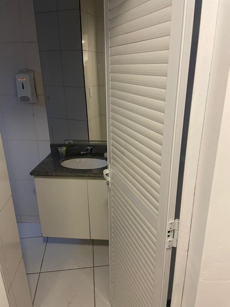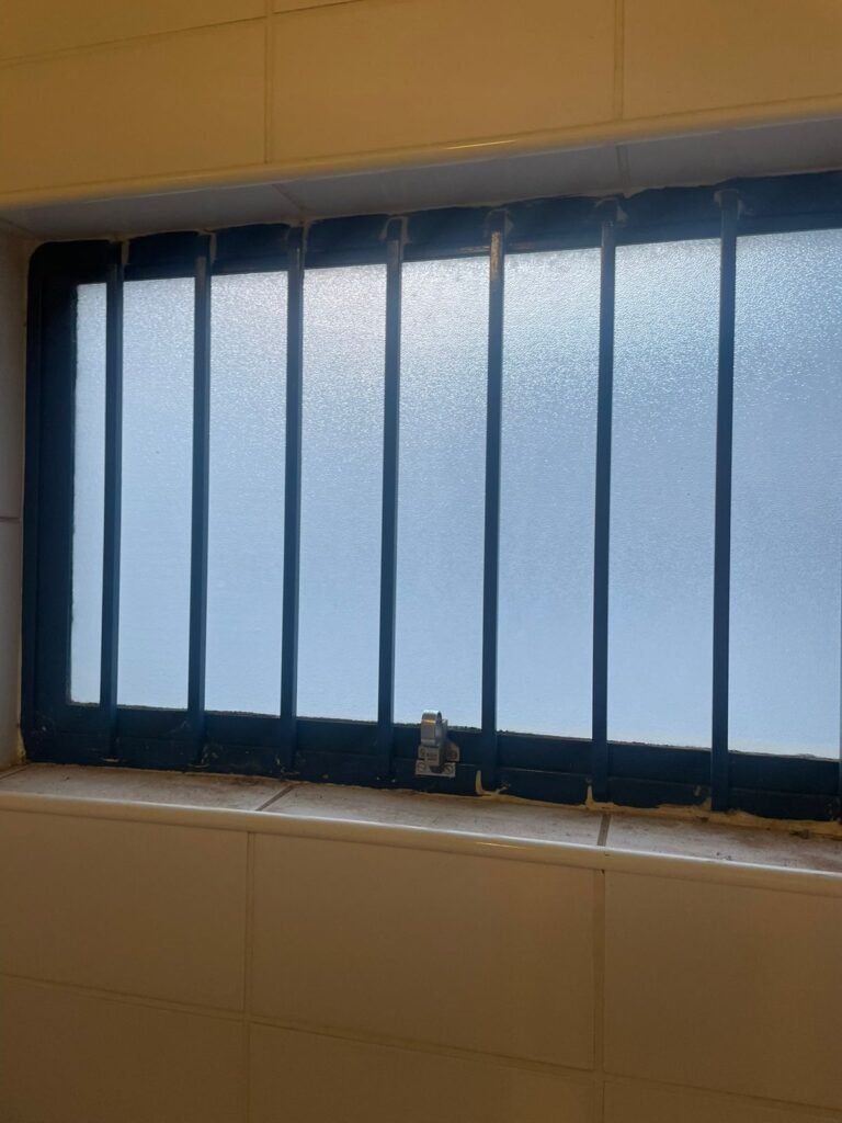 WC 01-: 01 Porta de alumínio cor branco marca Lidinese, com maçaneta danificada, fechadura e chave em ordem, pisos de Porcelanato em ordem, 01 ralo de inox em ordem, 02 paredes revestidas de pastilha de vidro em ordem, restante das paredes com pintura na cor branco neve com manchas de infiltrações e restante em ordem, conjunto sanitário de cerâmica com desgastes naturais, tampa e acento em ordem, e descarga em ordem, pia em granito cor branco em ordem, Cuba de cerâmica marca Lorenzetti com desgastes naturais e restante em ordem, 01 torneira de inox não testada, 01 espelho de reflexo em ordem, 01 suporte de papel em ordem, 02 interruptores sendo que 01 deles está danificado, 01 tomada em ordem, 01 espelho cego, 01 canopla do chuveiro em inox em ordem, teto com gola de gesso e pintura na cor branco neve em ordem, 01 luminária de sobrepor com Led em ordem, 01 vitrô basculante com esquadrias de alumínio na cor branco em ordem e com 01 fechadura em ordem e 01folha de vidro acrílico em ordem.