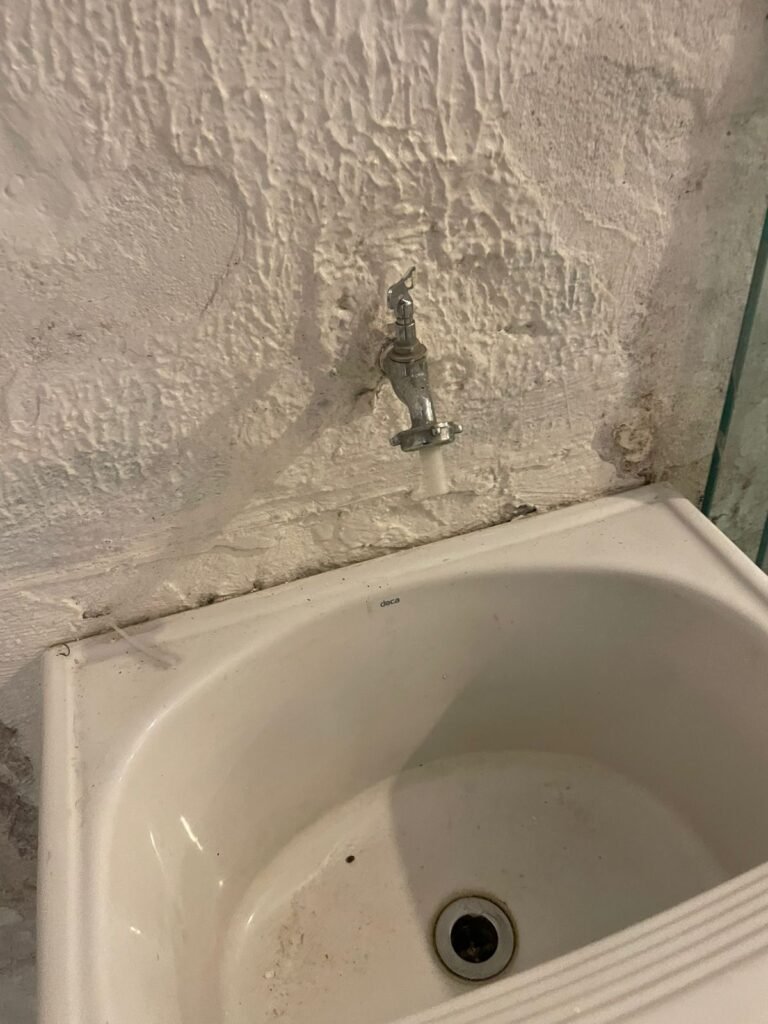 DESPENSA-: 01 Porta de alumínio na cor branco, com venezianas em ordem, com 01 folha de acrílico em ordem, com maçanetas em ordem e com fechadura marca Papaiz em ordem, 01 vitrô basculante com esquadrias de alumínio cor branco, com 01 fechadura em ordem e 01 folha de acrílico em ordem, pisos revestidos de pisos cerâmicos com desgastes naturais, pigmentos de ferrugem e partes danificadas, 01 ralo em inox em ordem, paredes com pintura na cor branco com manchas de infiltrações, desgastes naturais e restante em ordem, 01 motor Albacete APP2-M não testado, 01 tanque com coluna de cerâmica cor branco em ordem, 01 torneira de jardim em inox não testada, 01 interruptor em ordem 01 tomada em ordem, teto com forro de pvc com desgastes naturais e restante em ordem, 02 bocais com 01 lâmpada Led em ordem em cada.