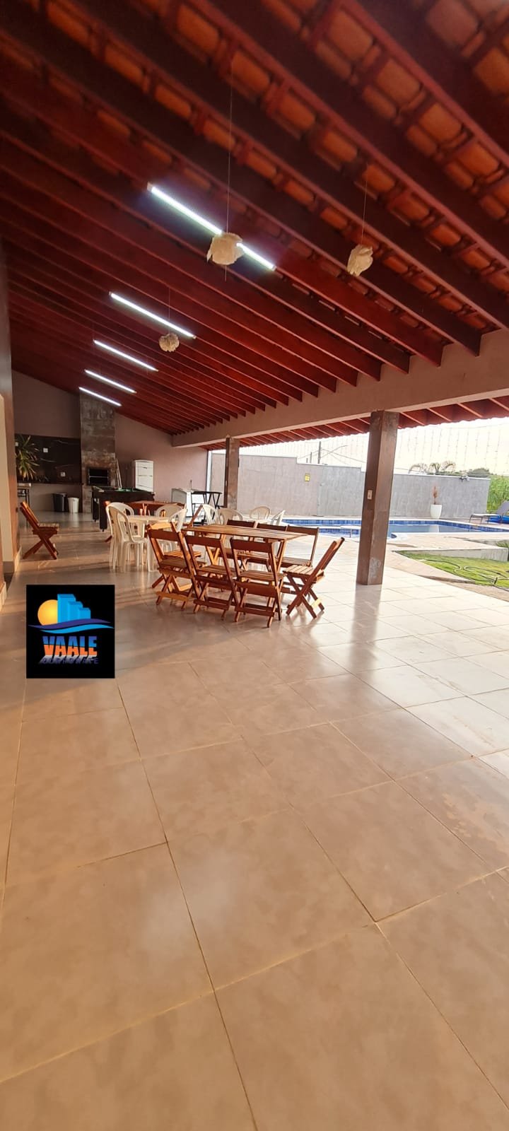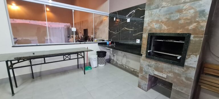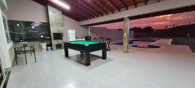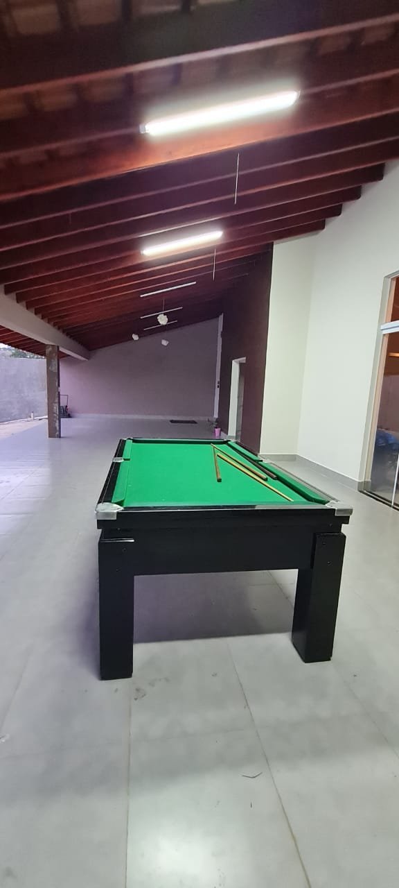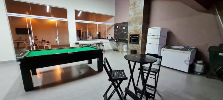 Área:-Piso porcelanato em ordem, dois pilares revestidos de piso porcelanato em ordem, paredes com a pintura na cor algodão egípcio marca Suvinil recém-pintado em ordem, uma parede com a pintura tinta lousa na cor talismã marca Suvinil recém-pintado em ordem, paredes com grafiato com a pintura na cor talismã marca Suvinil recém-pintado em ordem, 01 churrasqueira revestida de piso porcelanato em ordem,com o acabamento da churrasqueira em 45 graus de granito verde Ubatuba em ordem, uma pia de granitoverde Ubatuba com frontão em ordem, uma área seca com frontão de granito verde Ubatuba em ordem, umsifão desentupido em ordem, uma válvula em ordem, uma torneira de pia de bica móvel em ordem, umacuba de inox Tramontina em perfeito estado, meia parede acima da pia com piso porcelanato em ordem e orestante da meia parede com a pintura na cor algodão egípcio recém- pintado em ordem , uma pingadeiraem granito verde Ubatuba em ordem, uma janela de alumínio escovado com a pintura na cor brancocontendo com 07 vidros temperados sendo dois de correr com fechadura e chaves em ordem, uma soleiraem granito verde Ubatuba em ordem, uma porta de correr em alumínio escovado com a pintura na corbranco, contendo 07 vidros temperados, sendo dois de correr com puxadores com chave em ordem, 04espelhos com dois módulos um de energia e outro de luz em ordem, 01 espelho duplo com três módulossendo um 200 v, outro de luz que acende a lâmpada da churrasqueira, um de energia em ordem, 01 espelhoduplo fechado em ordem, 01 espelho simples fechado em ordem, 01 espelho com modulo energia 220v emordem 01 lâmpada em ordem, uma caixa Djuntores com duas tampas 07 Djuntores Steck, sendo 01 SD C201P, 01 SD C25 1P, 03 SD C40 2P, 01 SD C25 2P, 01 SD C63 2P, 06 luminárias linear smart tubular led 18 w 60cm branco frio em ordem, 40 metros de cascata de lâmpadas de led branco na fachada em ordem, umamesa de sinuca contendo bolas tacos em ordem, 06 tapetes passadeiras novas.