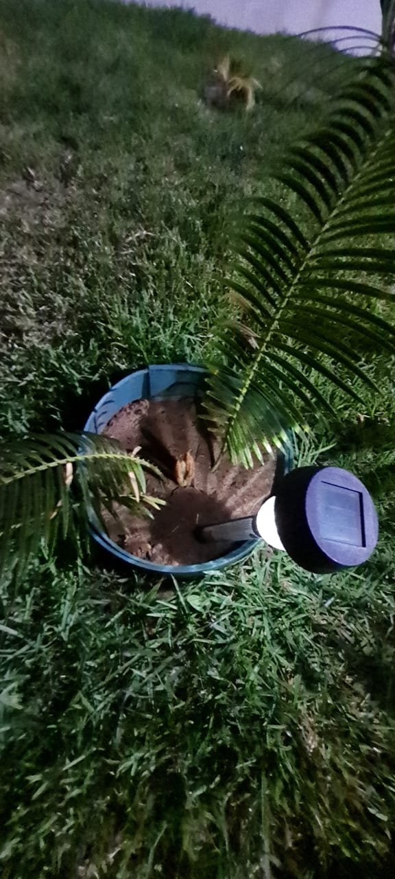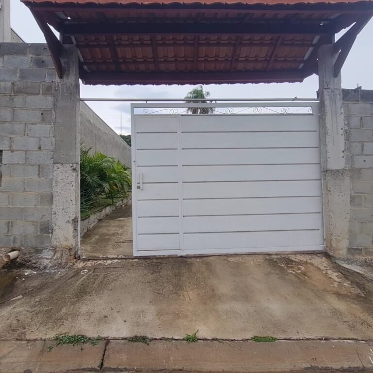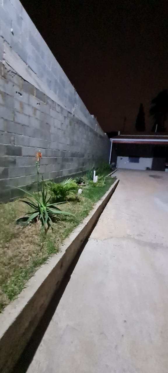 Fachada:- Portão de Ferro de correr com portão social em ordem, com a pintir na cor branco em ordem, com chave trinco e cadeados em ordem, muros blocos em ordem, rampa deconcreto usinado desempenado em ordem, jardim com grama e plantas em ordem, um poste de luz com um refletor fotocélula em ordem, 03 djuntores steck em ordem.