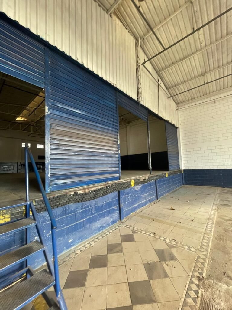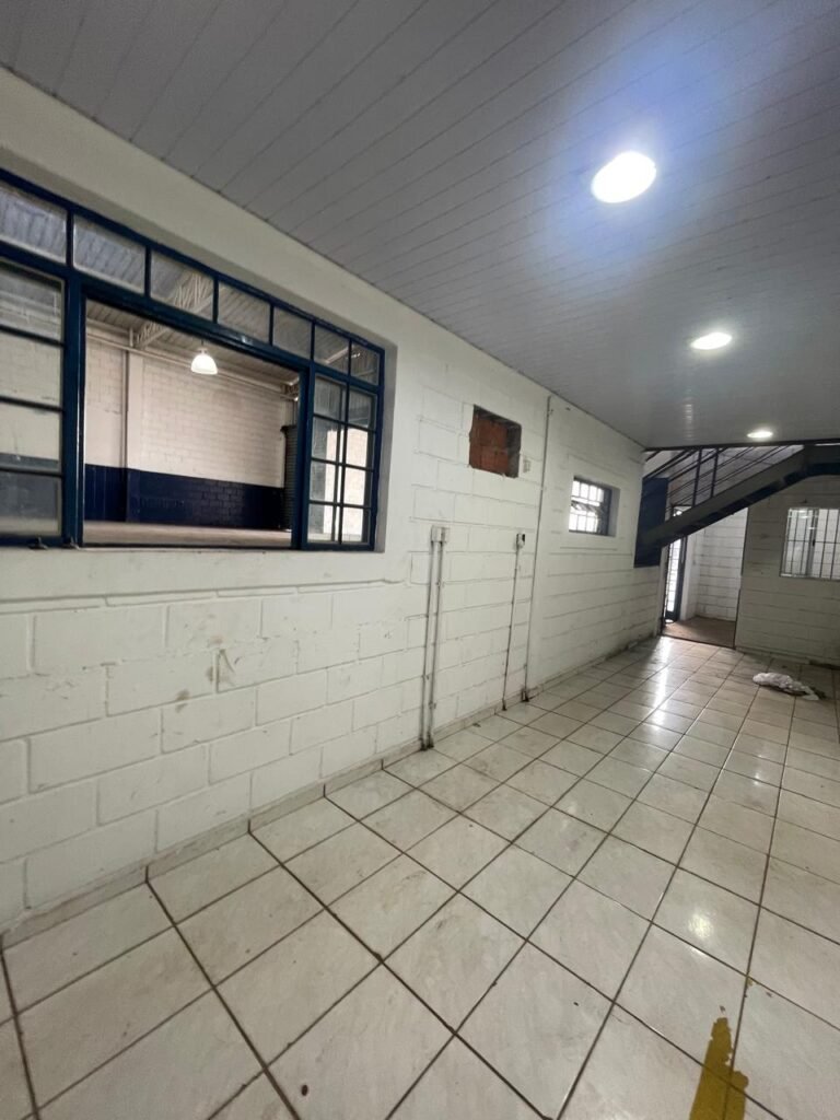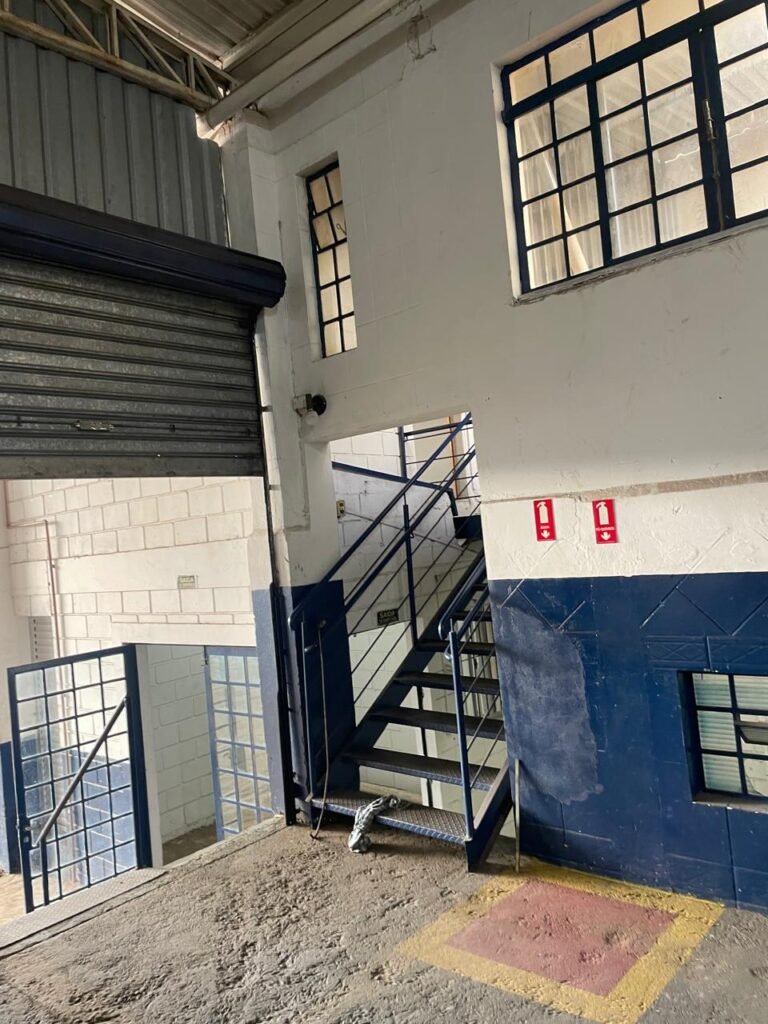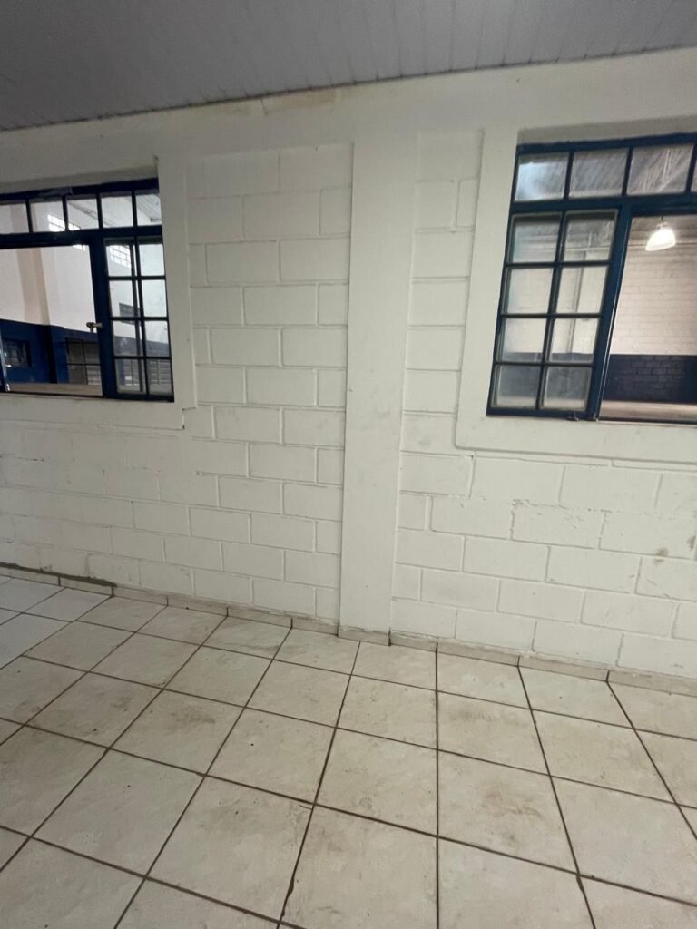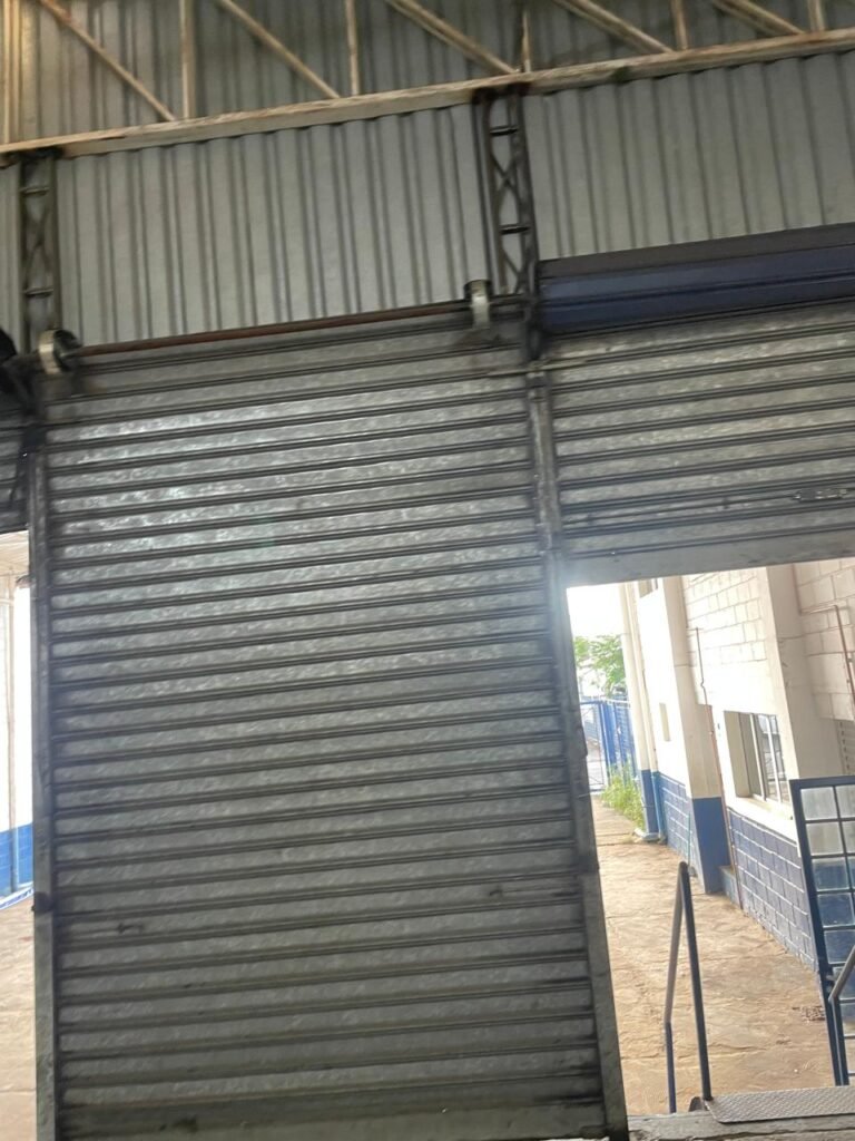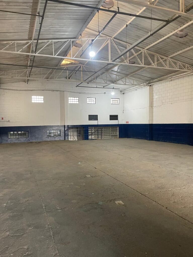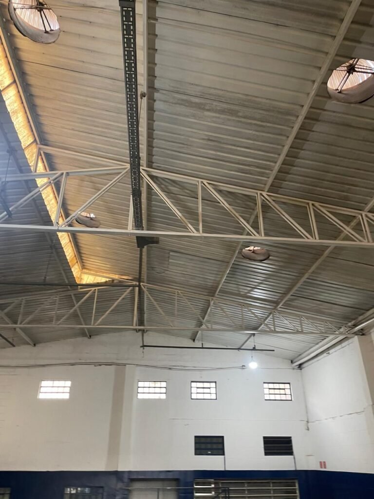 GALPÃO:- piso concreto desempenado com desgaste natural restante em ordem, paredes parte com azulejo e restante blocos aparentes ambos com pintura sendo barrado na cor azul e restante na cor branco neve em ordem, 08 vitrôs em ordem, telhado com estrutura de ferro com pintura na cor branco com desgaste e sujeira restante em ordem, 06 trocadores de ar em ordem, 02 lustres em ordem, 02 lâmpadas mistas 400 watts, 09 vitrô de ferro com pintura na cor azul, 217 vidros lisos transparentes sendo que 02 vidros estão quebrados restante em ordem, 05 portas de aço de enrolar em ordem, molas em ordem, 01 fechadura com 02 chaves tetra com travas tipo ferrolho em ordem, guarda-corpo de ferro com pintura na cor azul em ordem, quadro de disjuntores, 06 disjuntores sendo Siemens 55×12 03 tomadas em ordem, 02 interruptores em ordem, escada de ferro em chapa xadrez com corrimão e guarda corpo com pintura na cor azul em ordem.