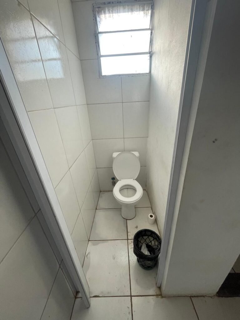 WC:- Piso frio cerâmico em ordem, pintura na cor branco neve em ordem, pia lavatório com torneira em ordem, vaso sanitário e caixa acoplada em ordem, forro de PVC em ordem, lâmpada em ordem, porta sem chave e com maçaneta em ordem, vidros em ordem, 01 instalação para chuveiro, 01 vitrô basculante com 03 vidros em ordem, interruptor em ordem, sifão em ordem, 02 registros em ordem.