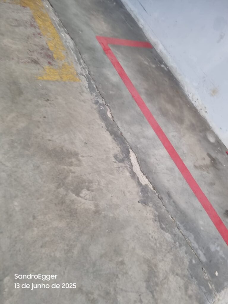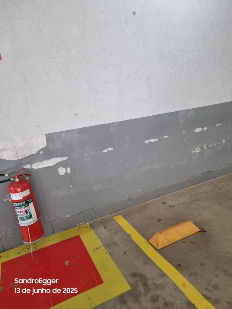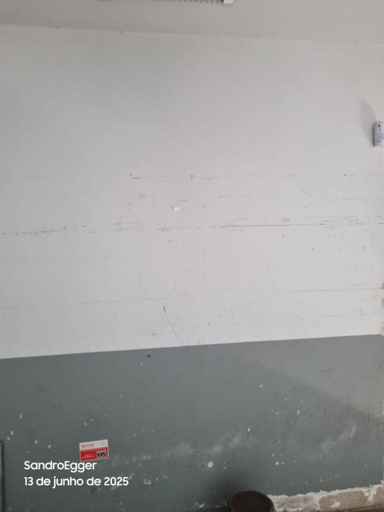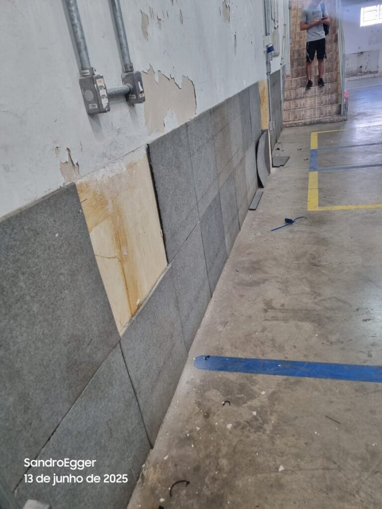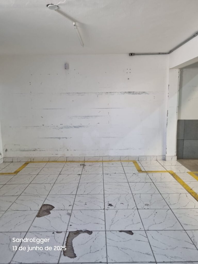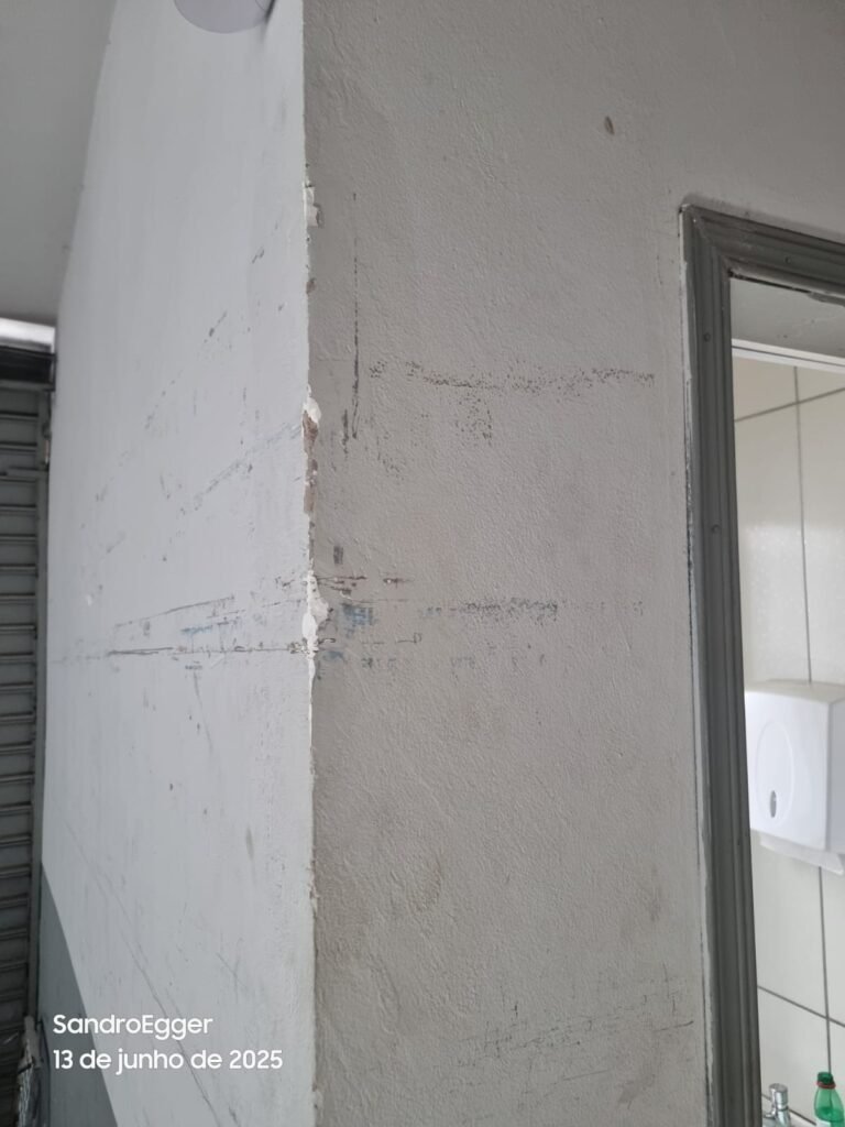 * Realizar pintura das paredes, retirar faixas de demarcação do piso, realizar troca dos pisos cerâmicos quebrados, realizar reparo das colunas que estão com reboco quebrado devido as batidas e realizar limpeza;