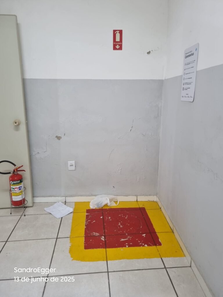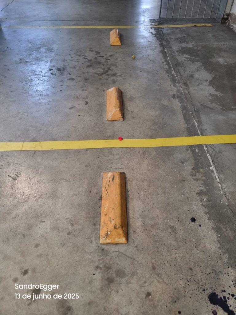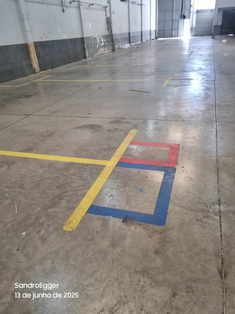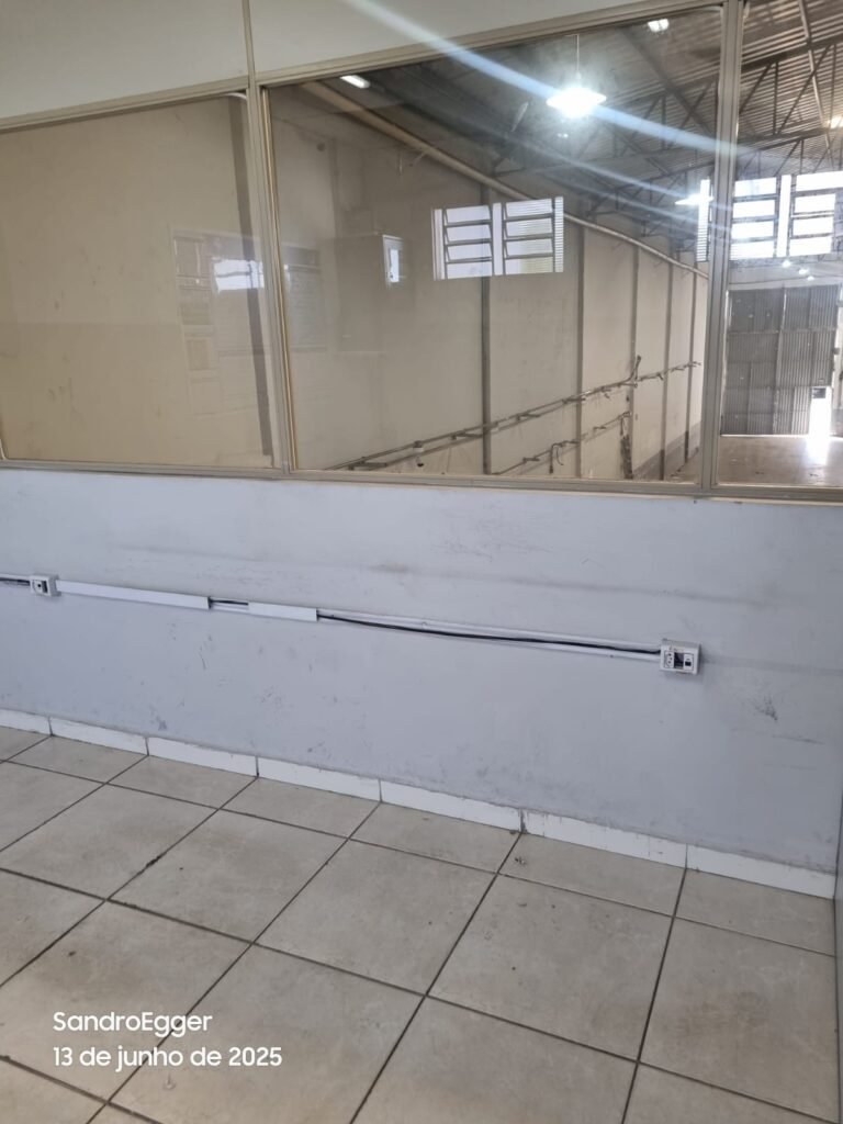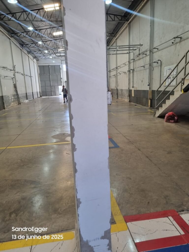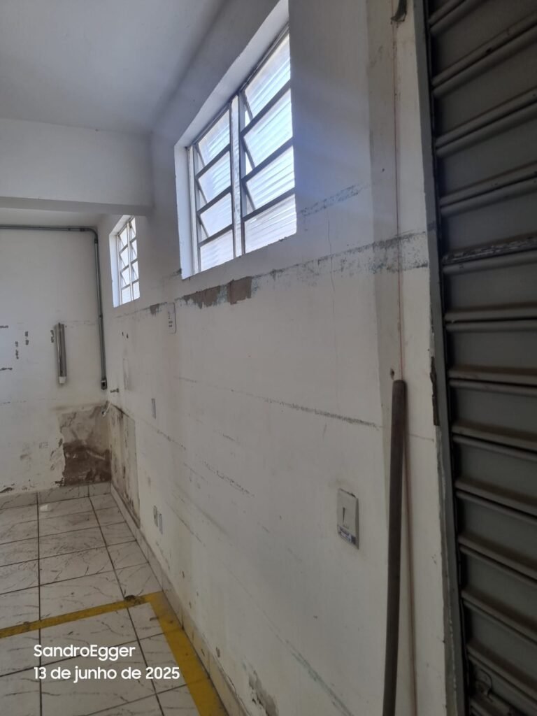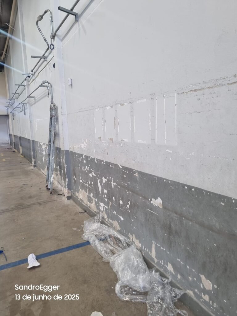 * Realizar pintura das paredes, retirar faixas de demarcação do piso, realizar troca dos pisos cerâmicos quebrados, realizar reparo das colunas que estão com reboco quebrado devido as batidas e realizar limpeza;