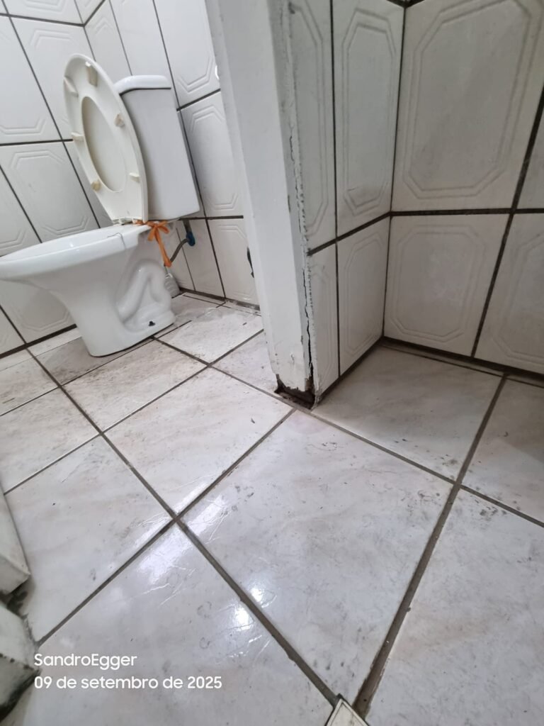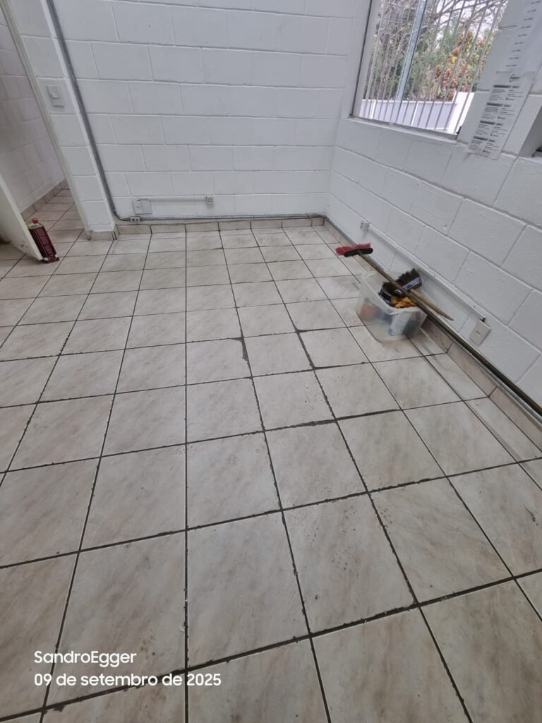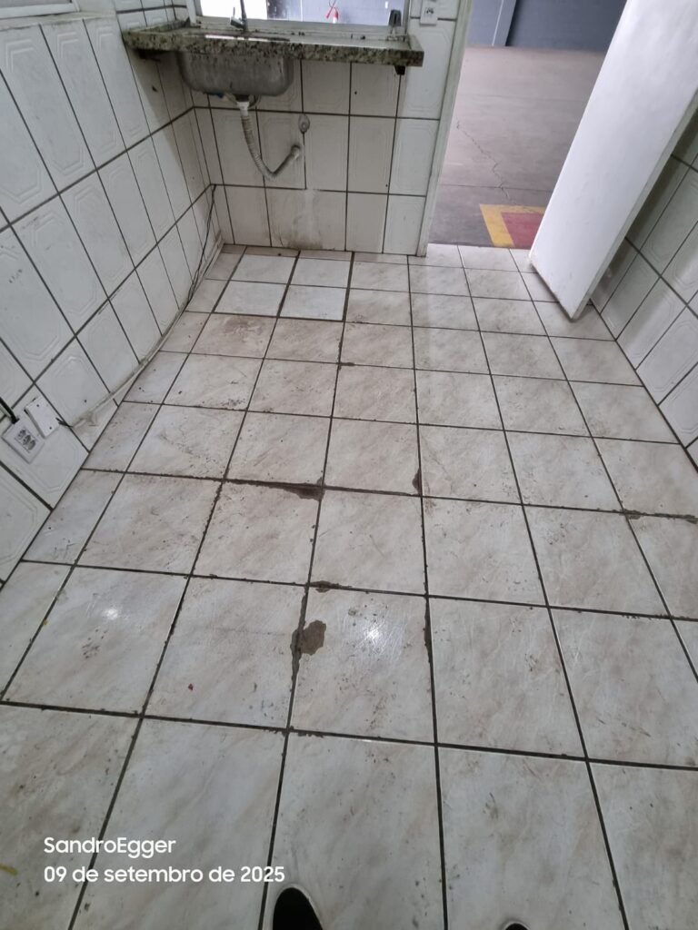 • Piso frio cerâmico com desgaste e manchas