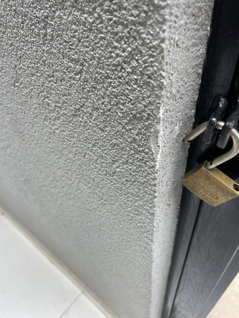 Conforme a CLÁUSULA QUINTA do contrato de locação: O(S) LOCATÁRIO(S) declara(m) expressamente haver vistoriado o imóvel, tendo verificado que se encontra na mais perfeita ordem e condições de uso com pintura interna e externa em ordem, com os aparelhos sanitários, instalações elétricas e hidráulicas em ordem, como também, ter encontrado nestas condições, os vidros, pias, louças, torneiras, e tudo o que mais estiver mencionado no laudo de vistoria anexo, sendo de sua inteira responsabilidade todas as despesas com eventuais encargos de manutenção, reparação e limpeza, obrigando-se a restitui-lo nestas condições e, principalmente, com a pintura nova, na cor original, finda ou rescindida a locação. Fica estipulado, ainda, que quaisquer estragos em paredes por pregos, manchas de móveis ou quadros, implica na pintura completa do cômodo, não se