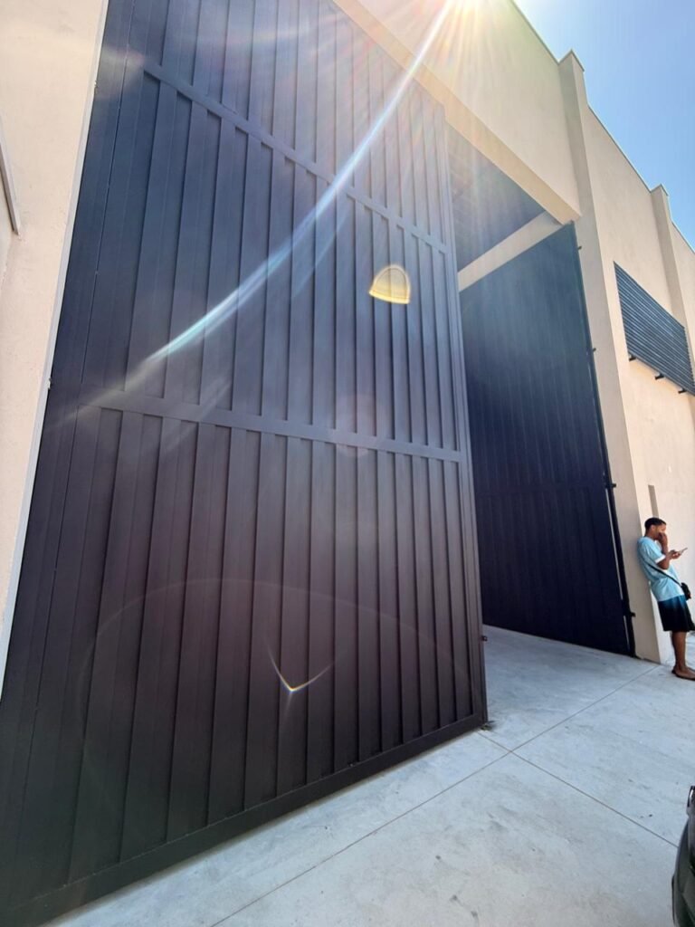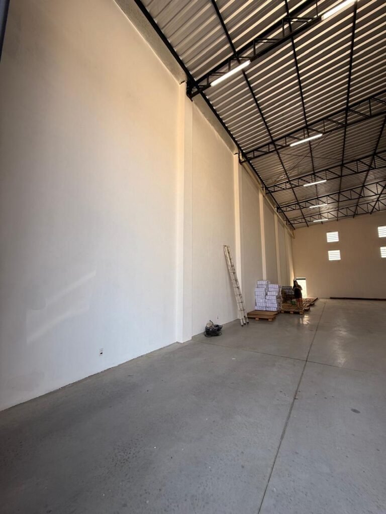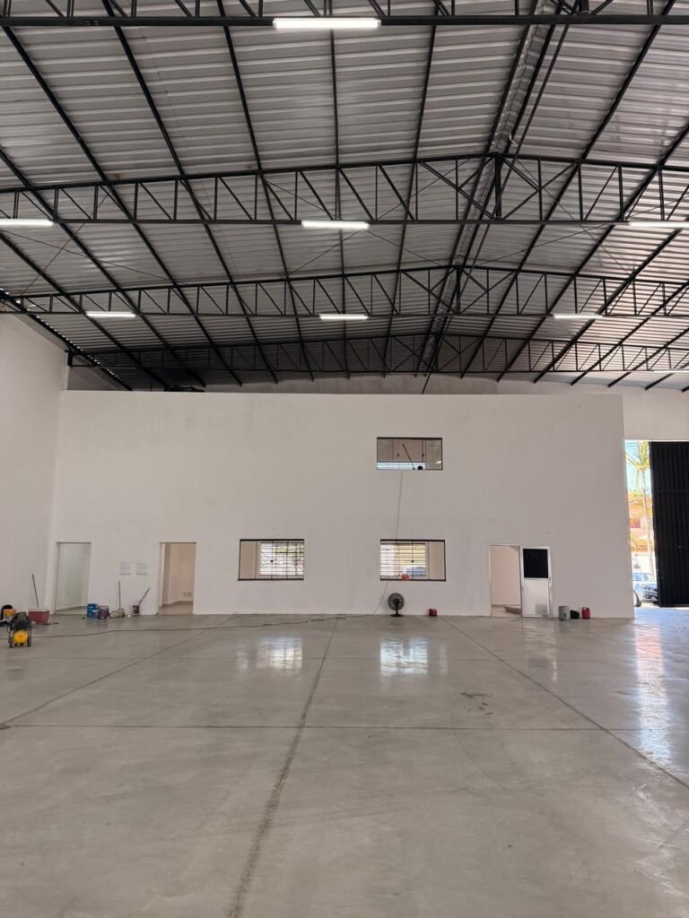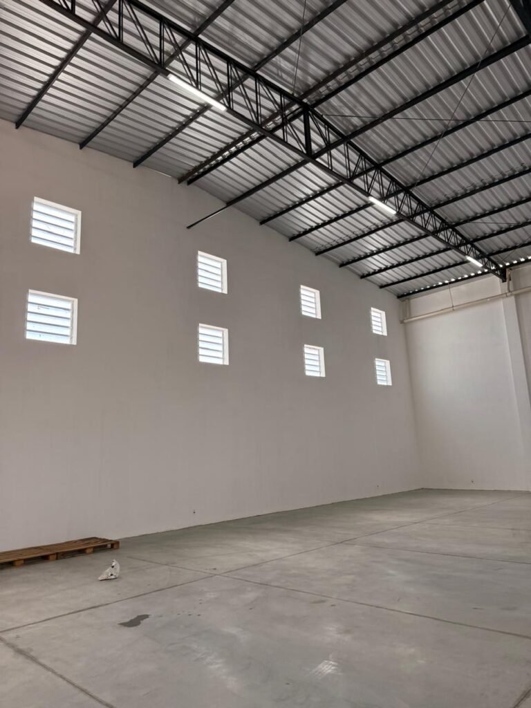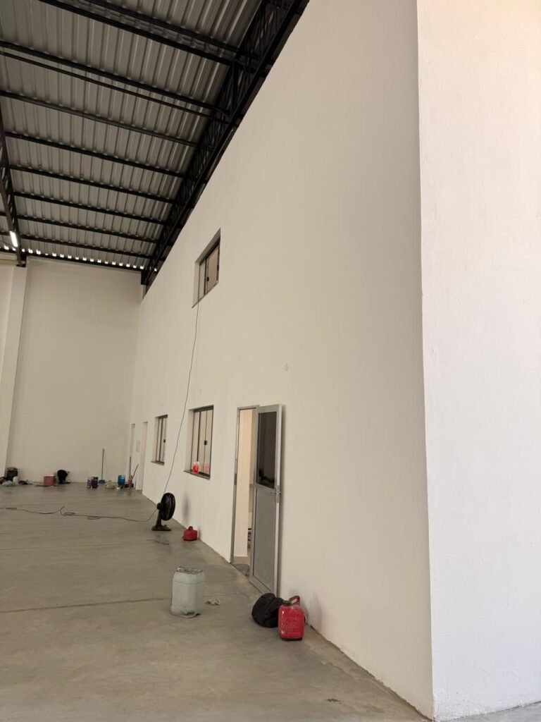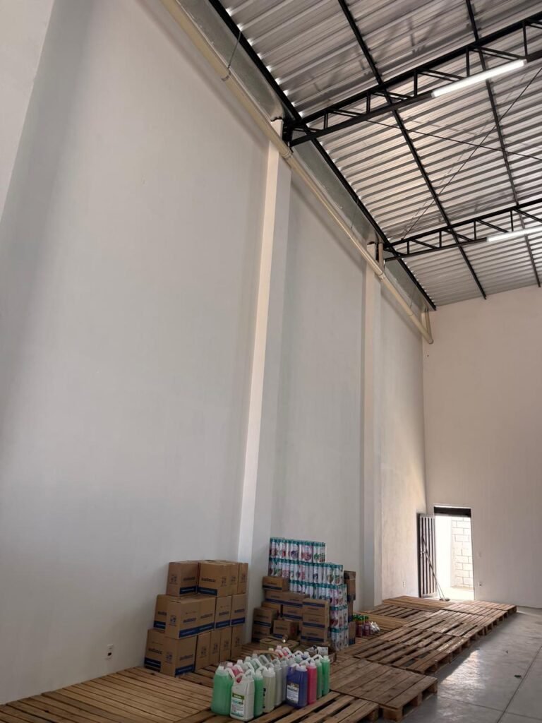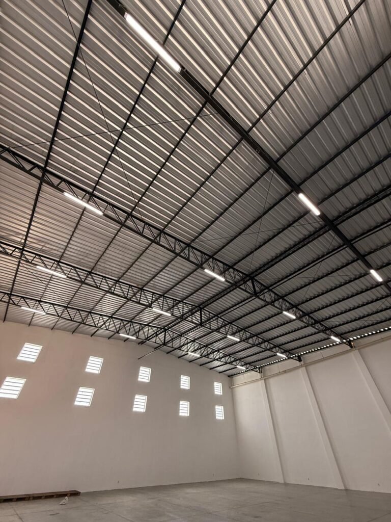 GALPÃO-: 01 portão de metalon com 02 folhas, com pintura nova na cor preto em ordem, com 02 fechaduras ferrolho em ordem, piso de concreto usinado novo e em ordem, paredes do galpão da parte interna com tinta acrílica na cor branco fosco nova e em ordem, 19 espelhos de energia, dentre eles: 01 espelho com 01 interruptor, 14 espelhos com 02 tomadas (110/220), 01 espelho com 01 tomada 220, e 04 espelhos cegos. 02 quadros de inspeção de plástico na cor branco, com 04 tampas, novos e em ordem, contendo disjuntores marca Steck novos e em ordem, sendo eles: 01 SD 80A 3P, 01 SDR 80A, 06 SD C32 2P e 03 SD C25 em ordem. 10 vitrôs basculantes com esquadrias de alumínio, com fechadura e 05 folhas de vidro fosco em cada e ambos estão em ordem, estrutura do telhado de ferro com pintura nova na cor preto em ordem, 19 luminárias retangulares com LED em ordem.