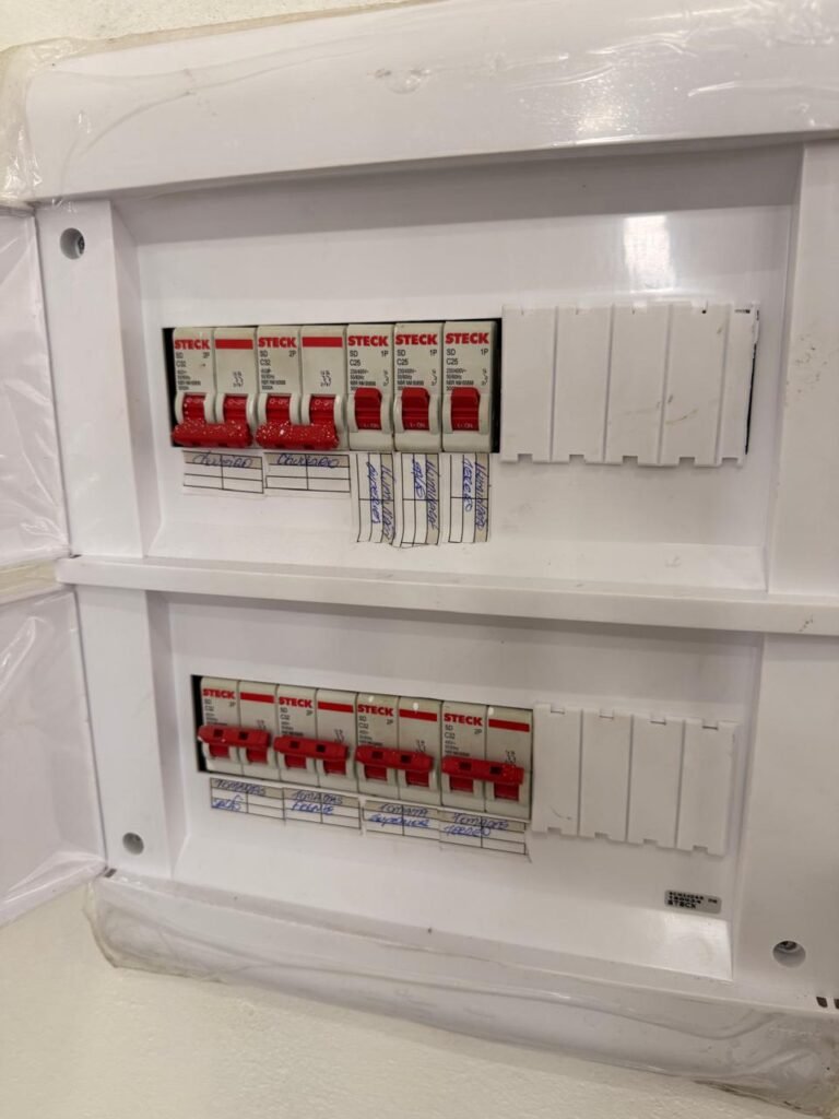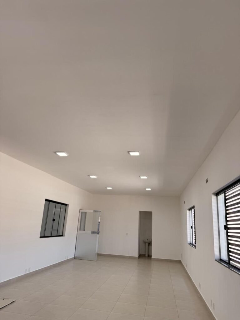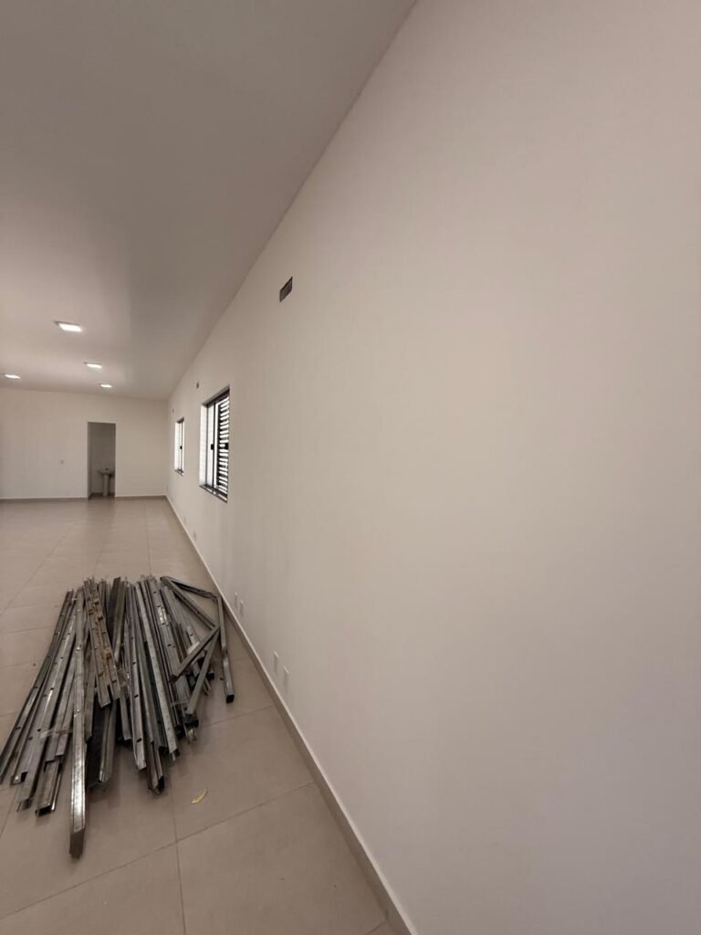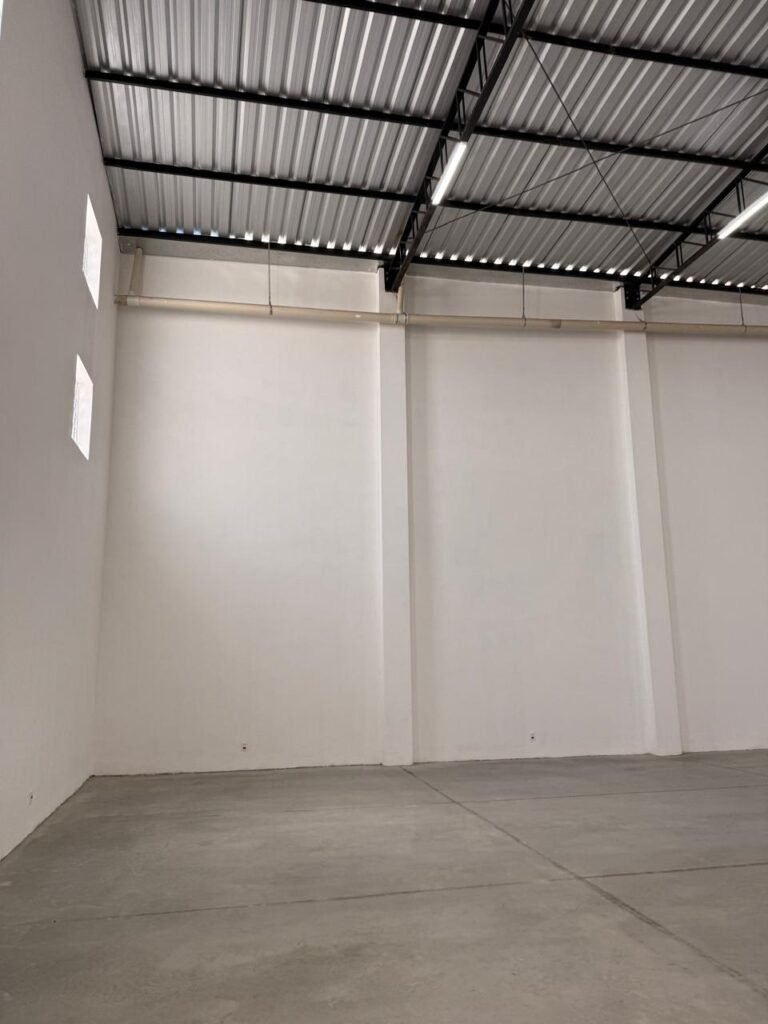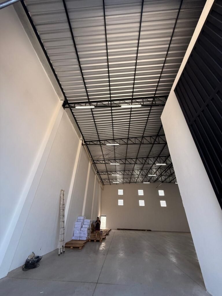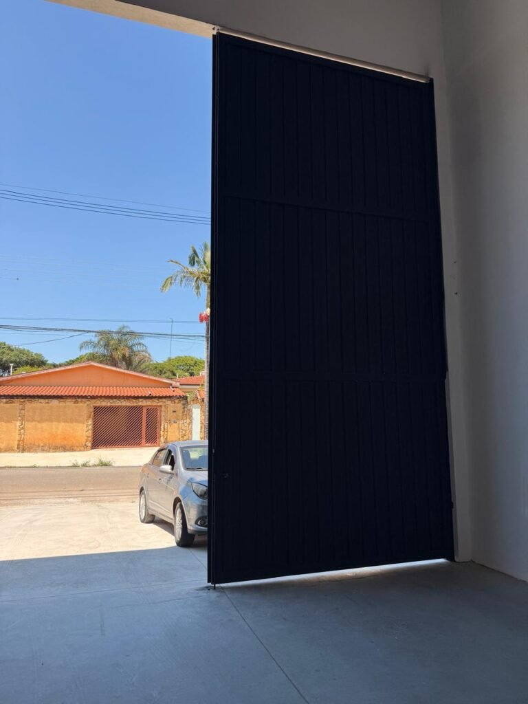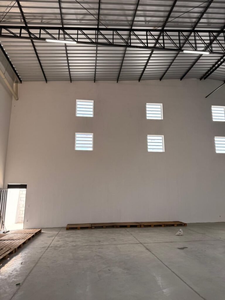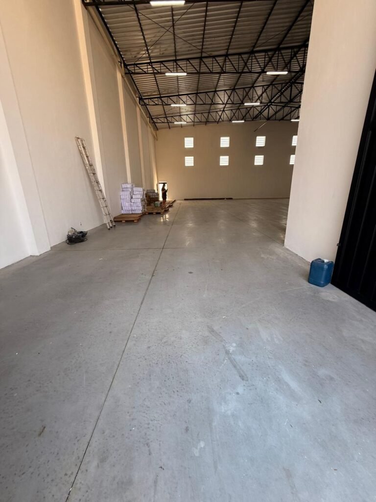 GALPÃO-: 01 portão de metalon com 02 folhas, com pintura nova na cor preto em ordem, com 02 fechaduras ferrolho em ordem, piso de concreto usinado novo e em ordem, paredes do galpão da parte interna com tinta acrílica na cor branco fosco nova e em ordem, 19 espelhos de energia, dentre eles: 01 espelho com 01 interruptor, 14 espelhos com 02 tomadas (110/220), 01 espelho com 01 tomada 220, e 04 espelhos cegos. 02 quadros de inspeção de plástico na cor branco, com 04 tampas, novos e em ordem, contendo disjuntores marca Steck novos e em ordem, sendo eles: 01 SD 80A 3P, 01 SDR 80A, 06 SD C32 2P e 03 SD C25 em ordem. 10 vitrôs basculantes com esquadrias de alumínio, com fechadura e 05 folhas de vidro fosco em cada e ambos estão em ordem, estrutura do telhado de ferro com pintura nova na cor preto em ordem, 19 luminárias retangulares com LED em ordem.