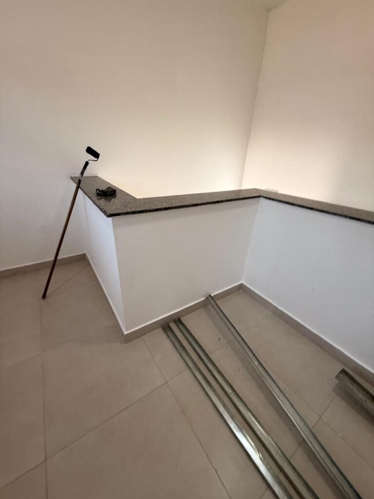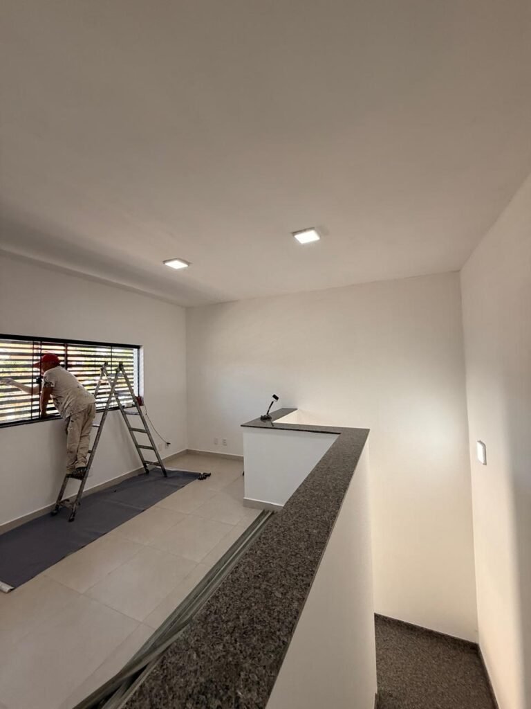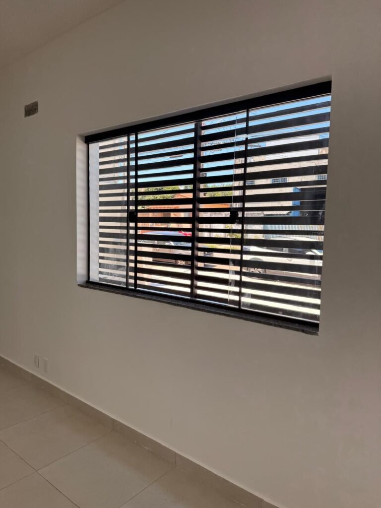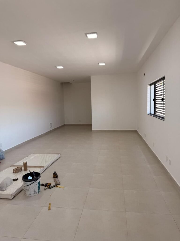 RECEPÇÃO-: 01 porta social de metalon nova, com pintura nova na cor preto em ordem ( marca Anjo ), maçanetas e fechaduras em inox marca Stam em ordem e com chaves, 03 soleiras de granito cinza ocre em ordem, piso e rodapé revestido de pisos de porcelanato novos e em ordem, paredes e teto com tinta acrílica na cor branco fosco nova e em ordem, 26 espelhos de energia em ordem, sendo eles: 02 espelhos com 03 interruptores, 01 espelho com 06 interruptores, 11 espelhos com 02 tomadas, 09 espelhos cegos, 03 pontos para instalação de ar condicionado, 03 tampas de inspeções de plástico na cor branco em ordem, 04 janelas deslizantes contendo 01 soleira de granito cinza ocre em cada, 04 folhas de vidro liso temperado transparente e 01 fechadura em cada, 02 portas sociais com esquadrias de alumínio em ordem, com 01 folha de vidro liso temperado transparente em ordem (01 delas com Insulfilm), maçaneta ( 01 porta com maçaneta soltando ) fechadura em inox marca Pado, 01 conjunto lavatório de cerâmica na cor branco, encardido com sujeira, torneira em inox marca Águia com desgastes naturais e restante em ordem, fizeram uma torneira de jardim de inox em ordem.
