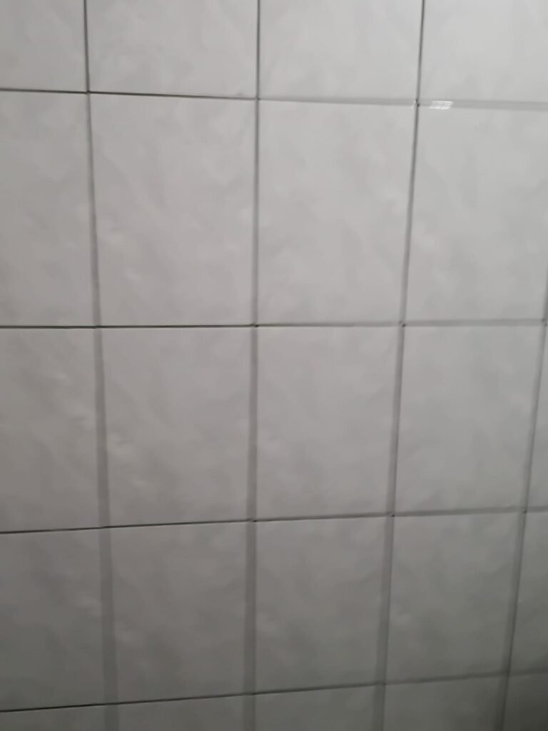 WC MASCULINO:- 01 porta vai e vem de alumínio com 02 partes em ordem, 01 porta de inox com fechadura em ordem, parede revestida de frio cerâmico ½ branco em ordem e restante marmorizado azul com preto em ordem e faixa de divisória dos revestimentos branco com desenho beges em ordem, 01 ralo inox não testado, 01 conjunto sanitário cerâmico na cor cinza em ordem, 01 ascendo de privada na cor branco com tampa em ordem, 01 descarga embutida em ordem, 01 pia com coluna na cor cinza em ordem, 01 torneira em ordem, 01 lâmpada em ordem, 01 espelho com 01 interruptor em ordem, 01 vitrô basculante em ordem.